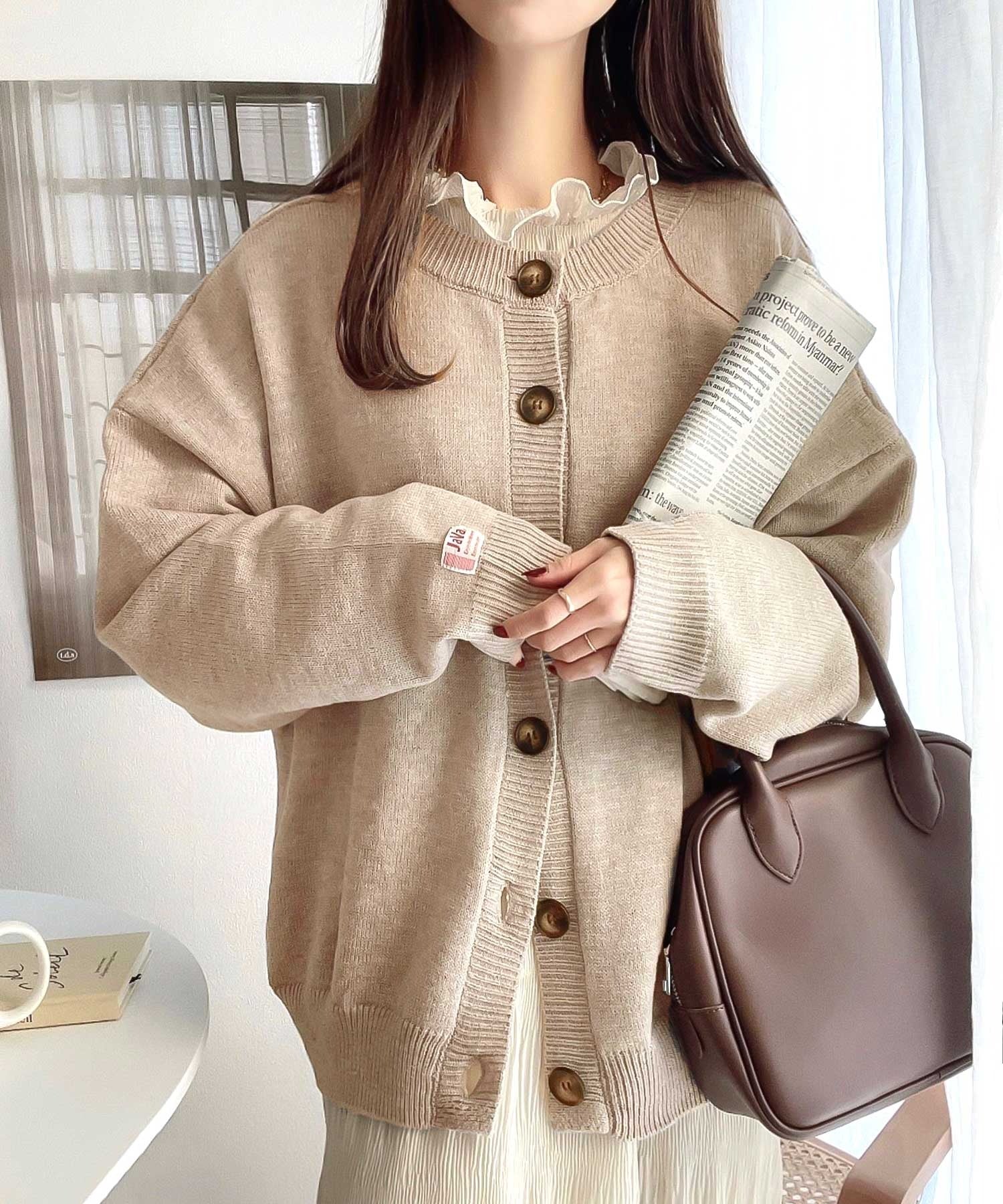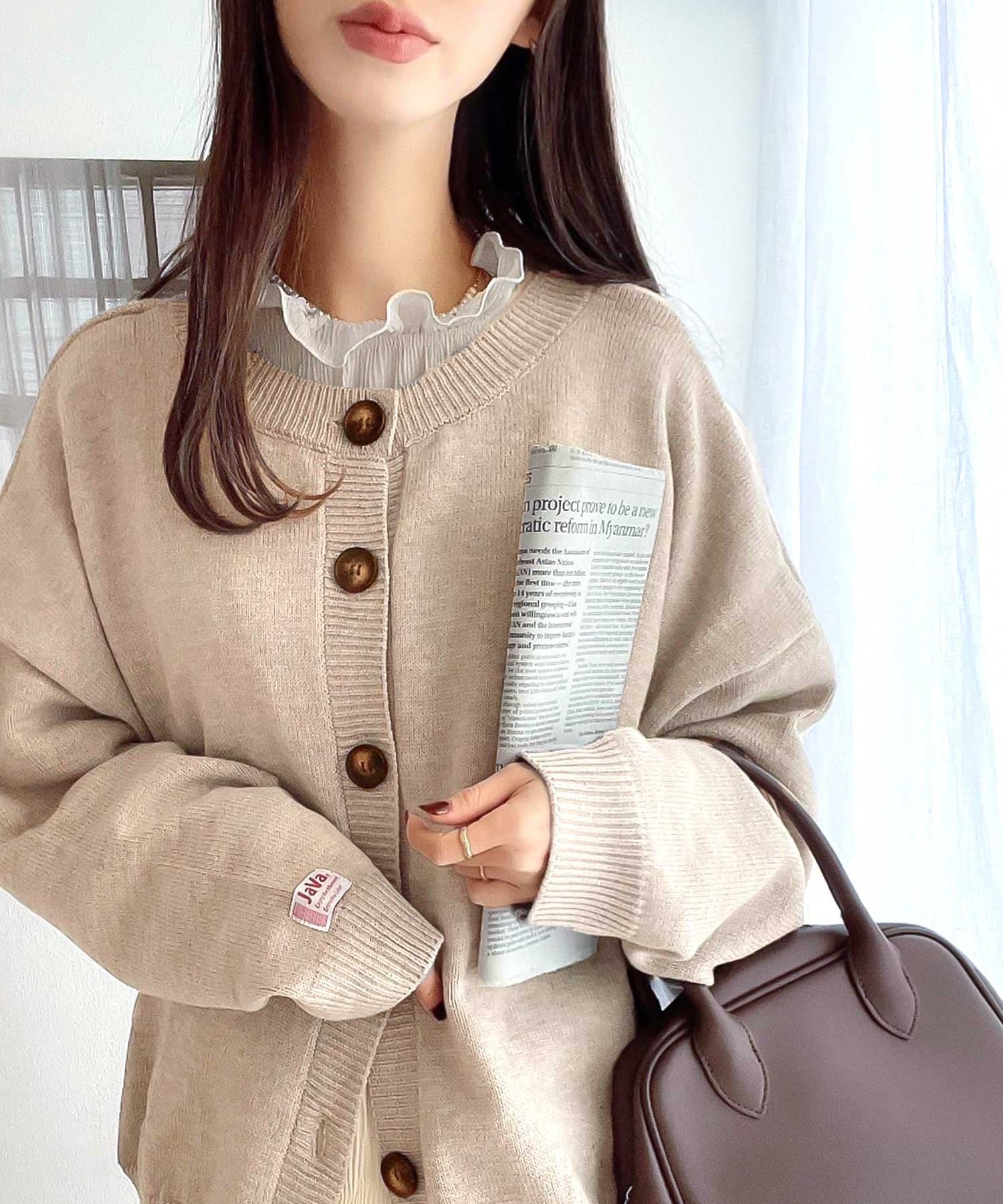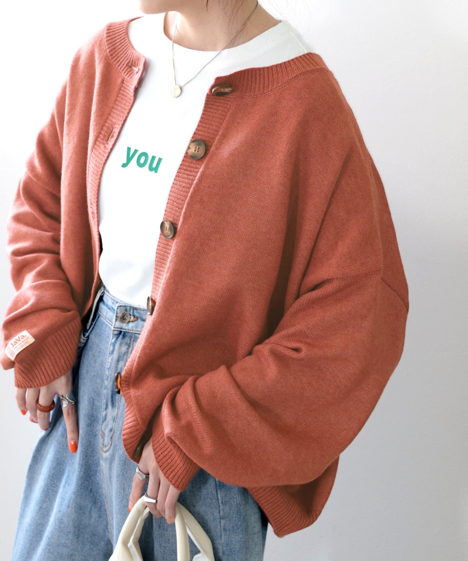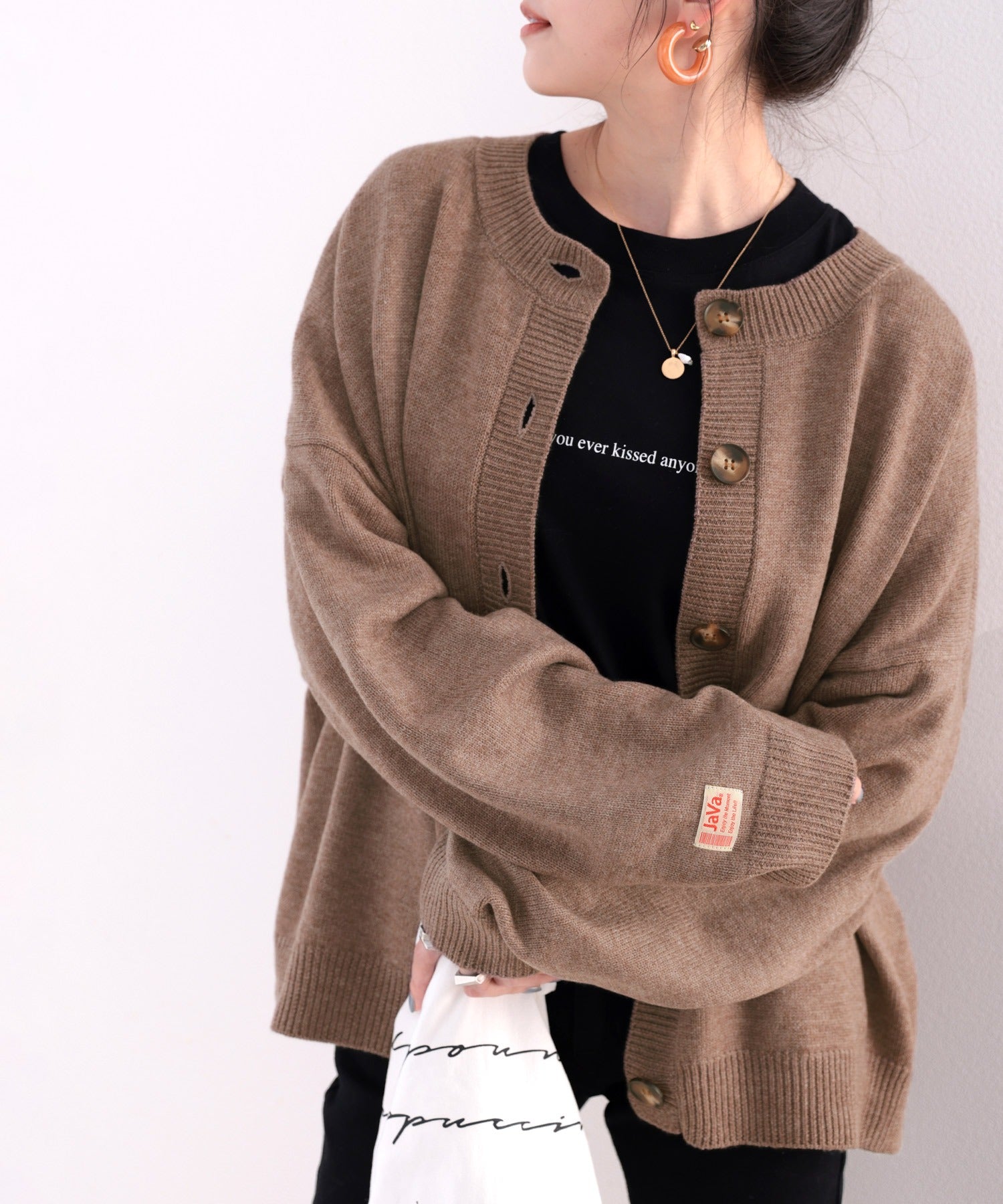 袖のJaVaタグがさり気ない、お洒落なボタンデザインの2WAYカーディガン。