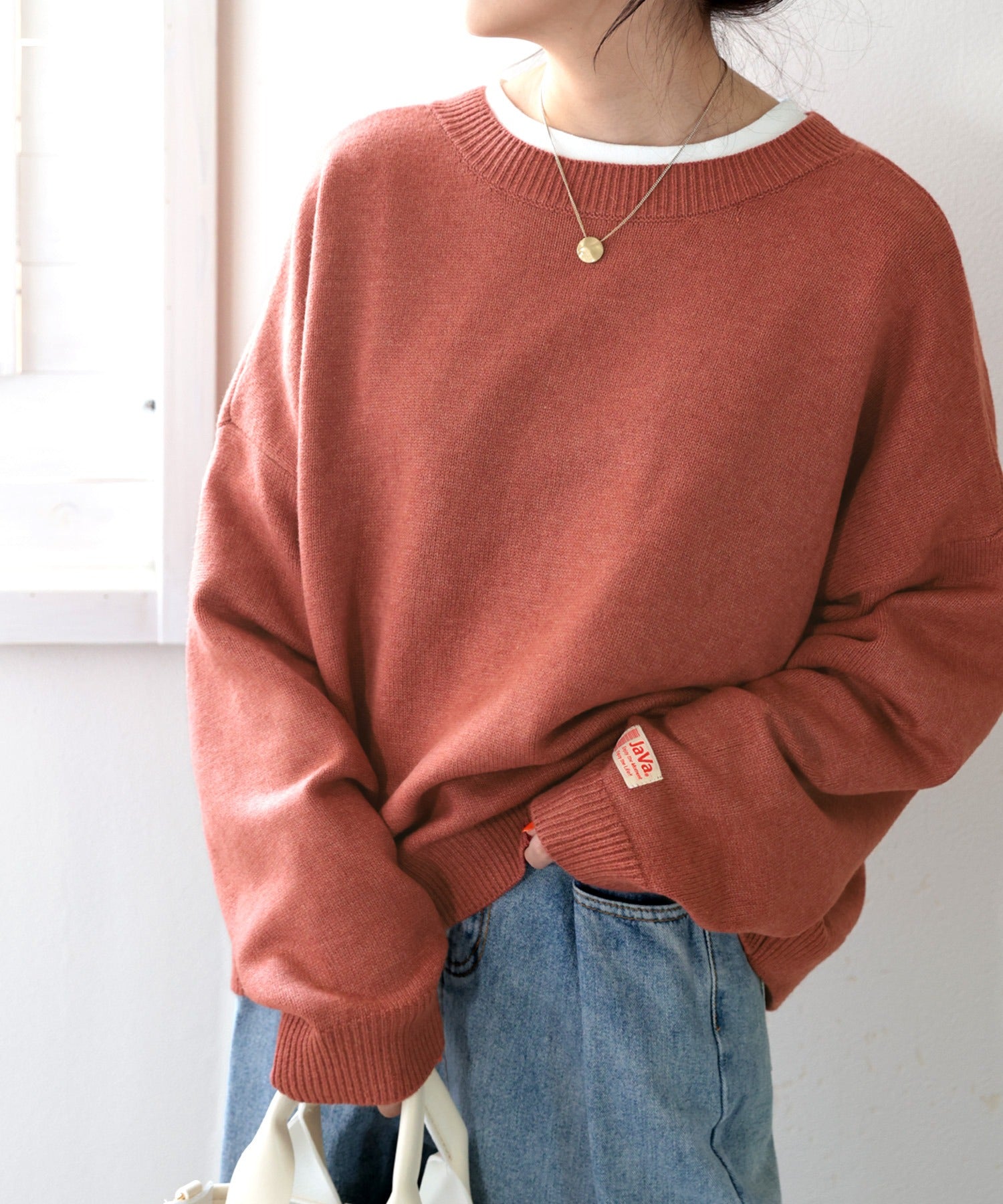 ふんわり柔らい肌触りで、さらりとしたきれいめニット素材。