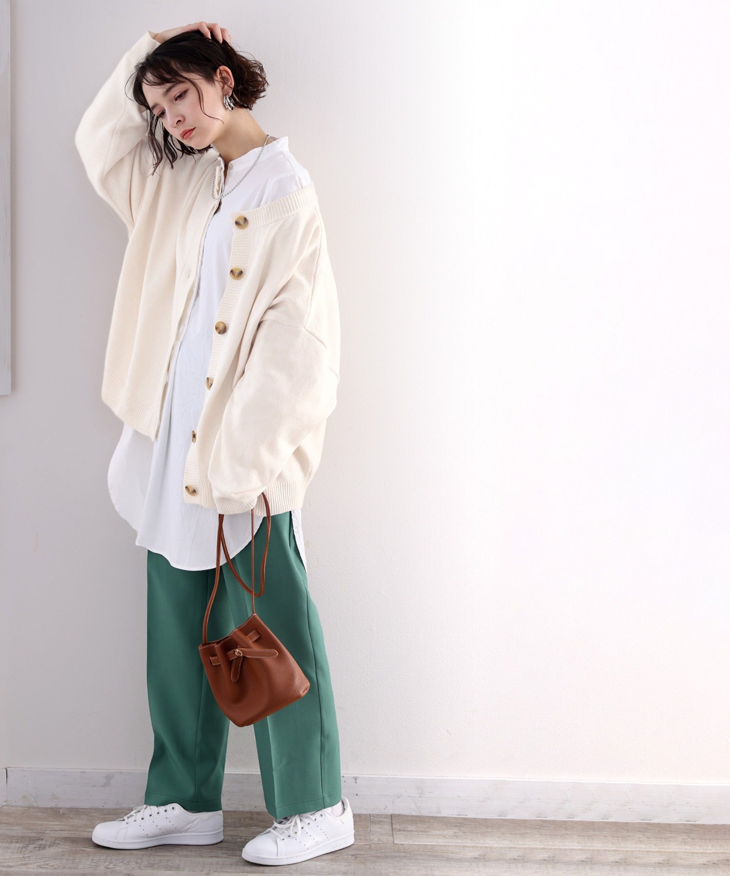 ワイドパンツやロングスカートを合わせるだけで大人のワンツースタイルに仕上がります。