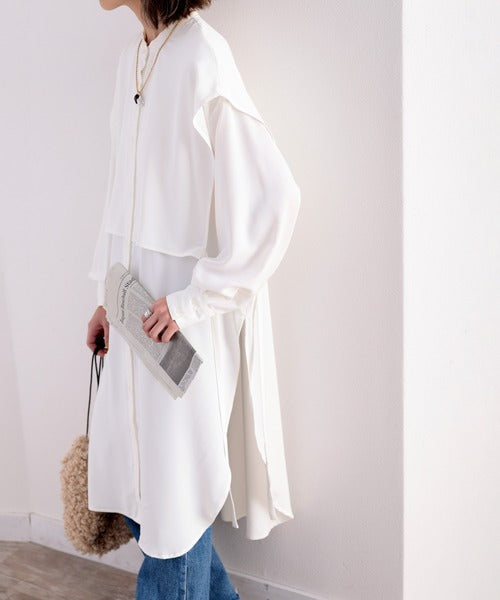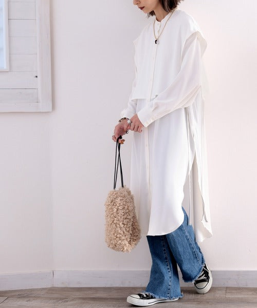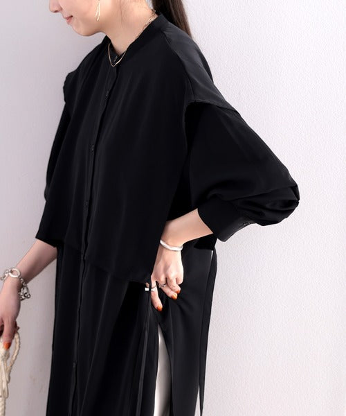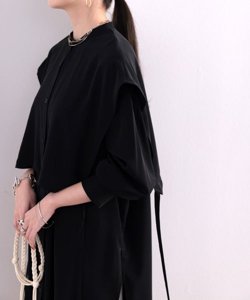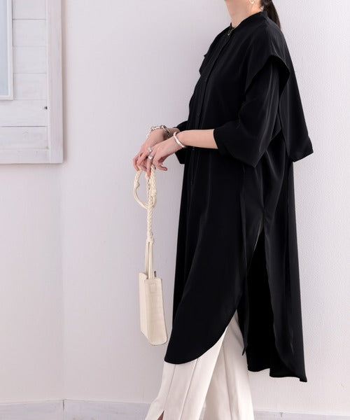 こなれ感。バンドカラーデザインシャツワンピース ce0420044