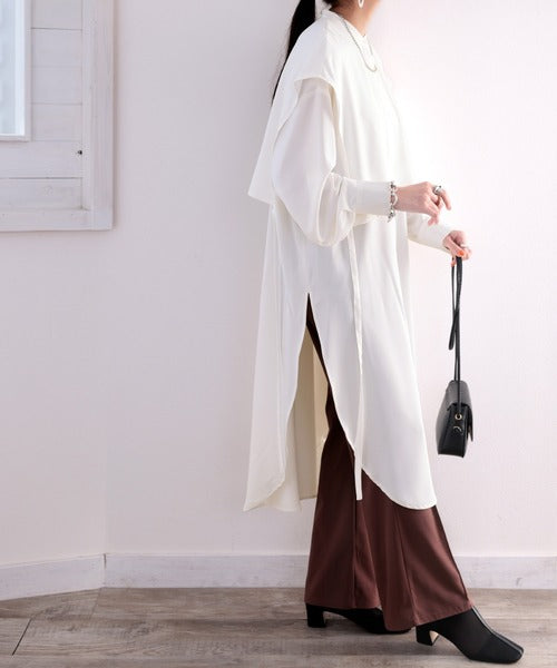 深めのサイドスリットで抜け感もあり、パンツやスカートと合わせて着ていただけます。