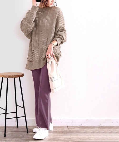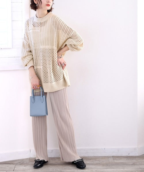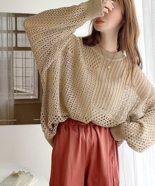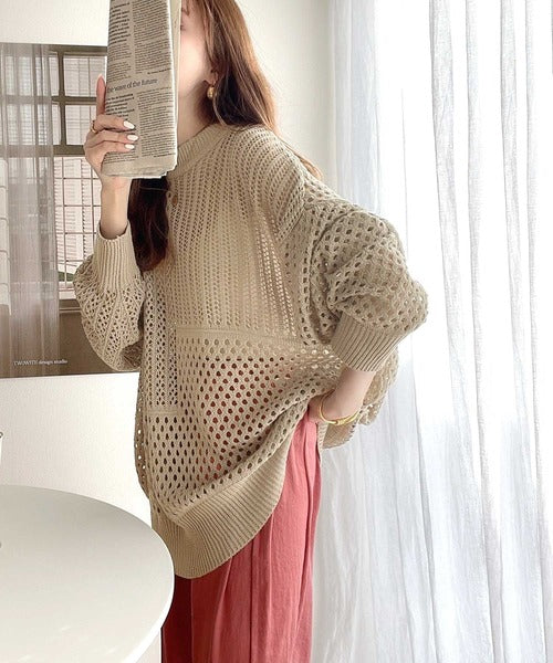 透かし編みが様々な表情を作り出し、1枚でお洒落コーデが完成します。