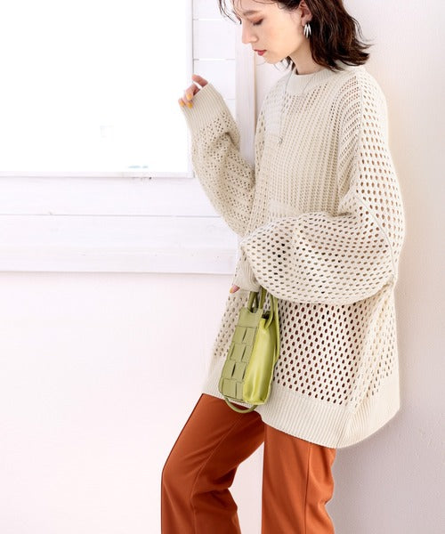 柔らかな風合いの透かし編みが、レディライクな華奢感をだしてくれる実力派ニット。
