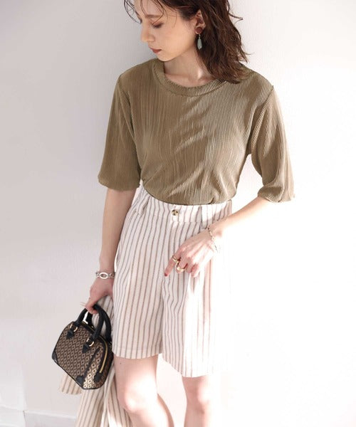 プリーツLOVER。メロープリーツ5分袖トップス ce0420067