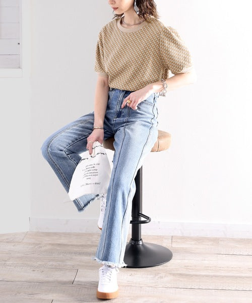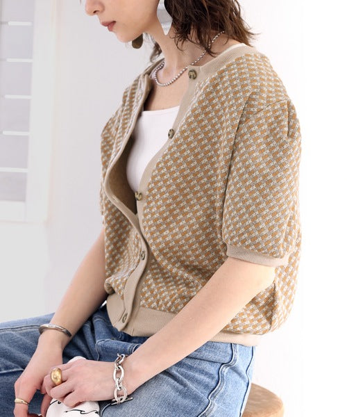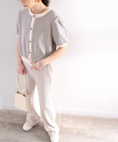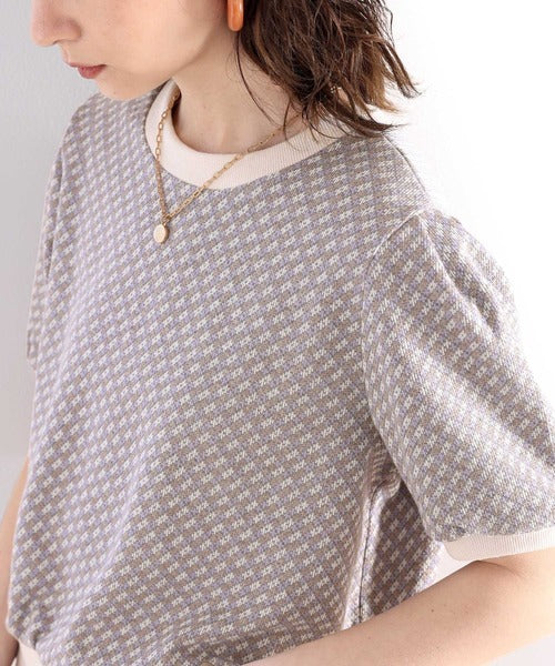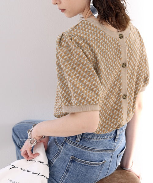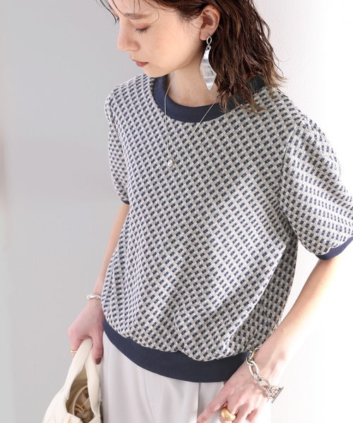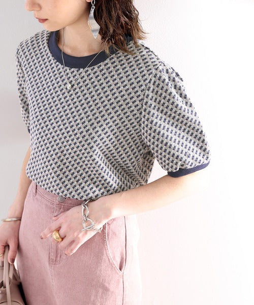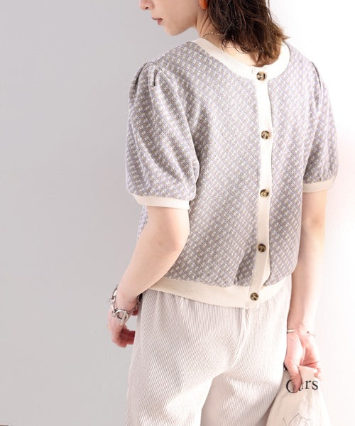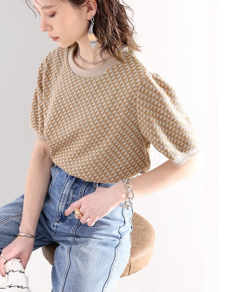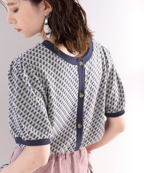 レトロな配色ジャガードに程よいぽわん袖が相まって、