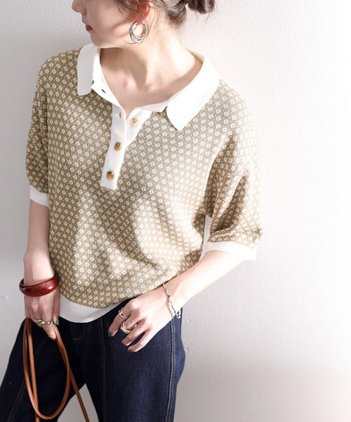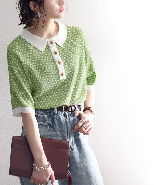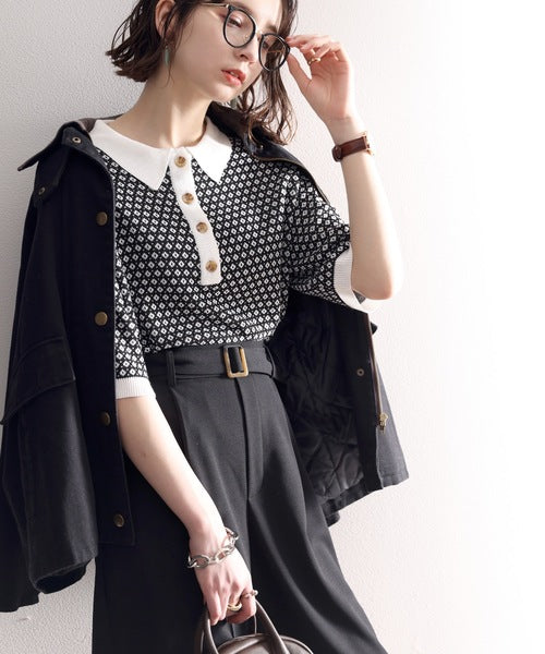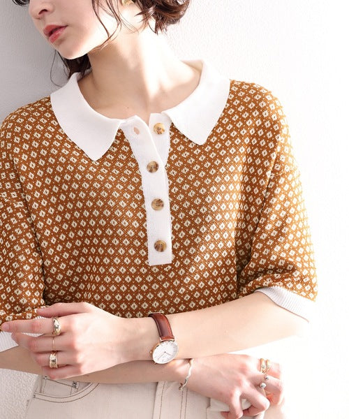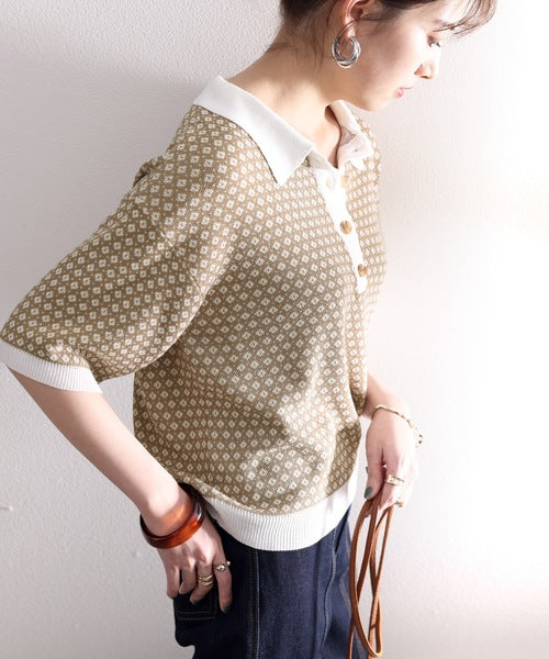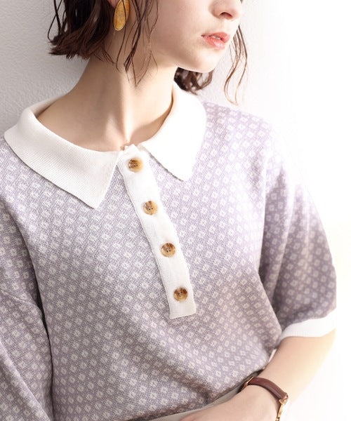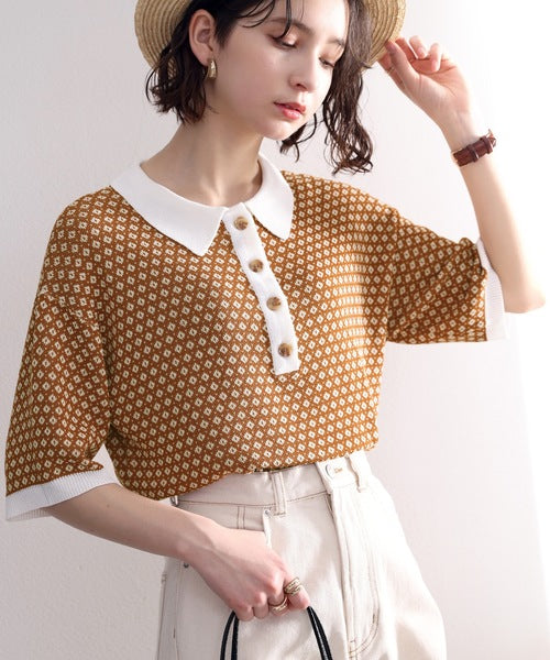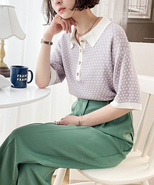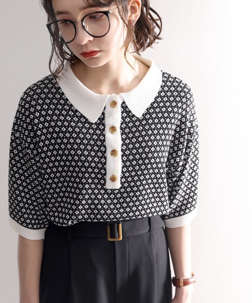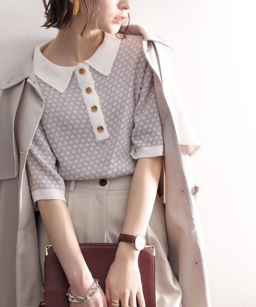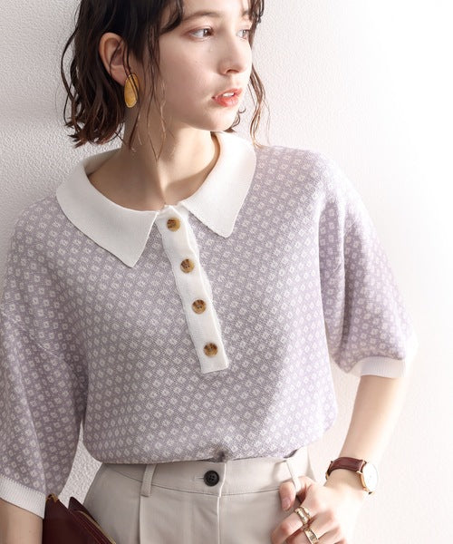 夏の愛されTop's。衿付きジャガードニット ce0420087