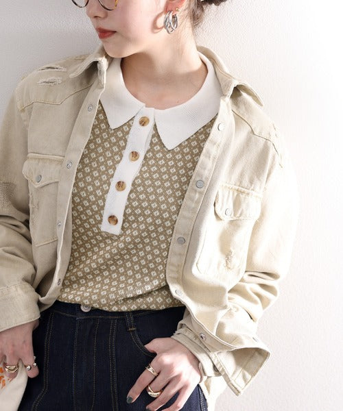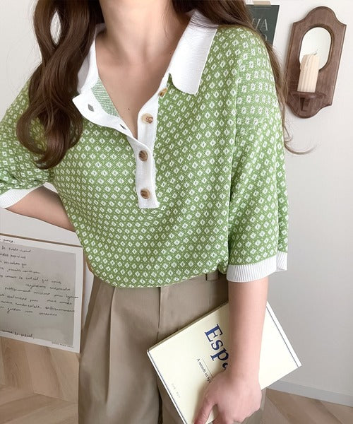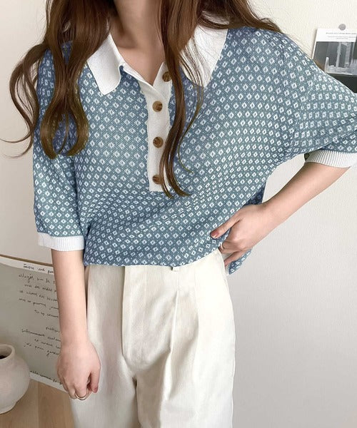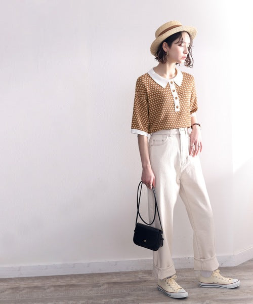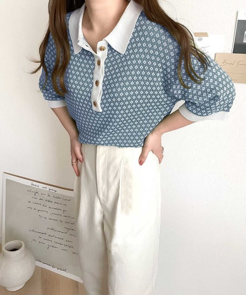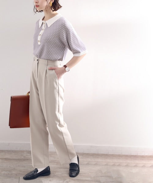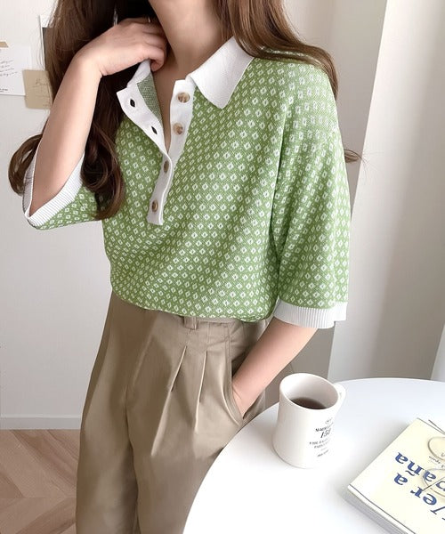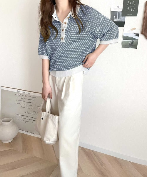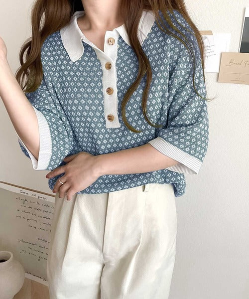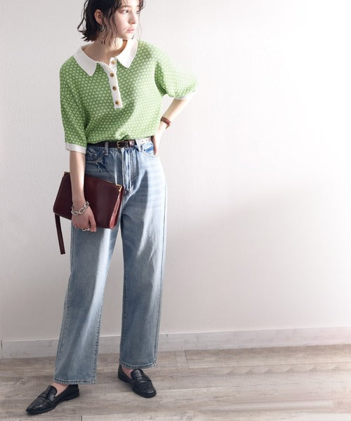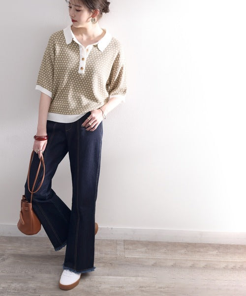 夏の愛されTop's。衿付きジャガードニット ce0420087