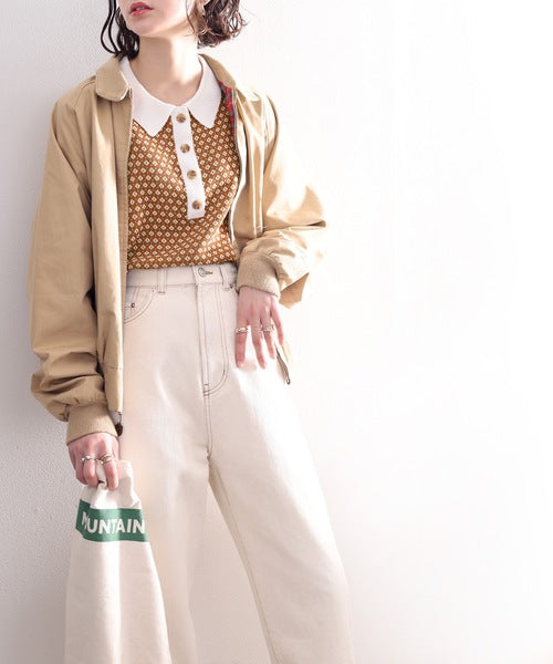 レトロな雰囲気漂うジャガード柄衿付きニット。