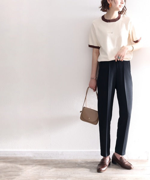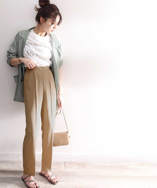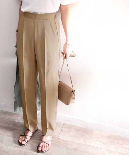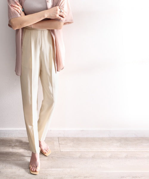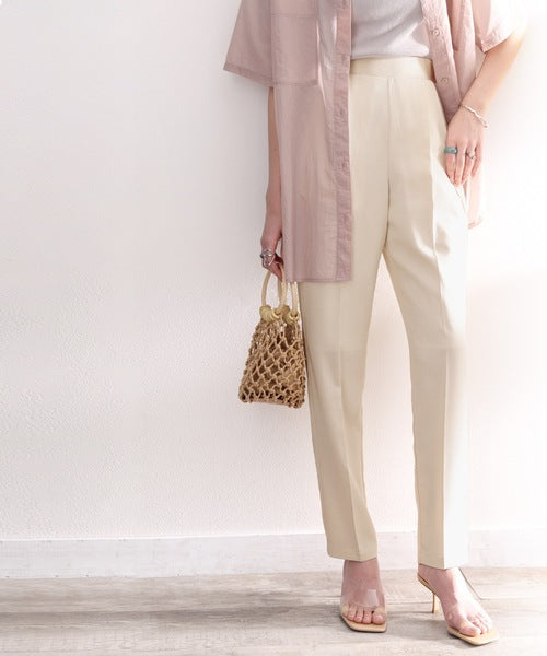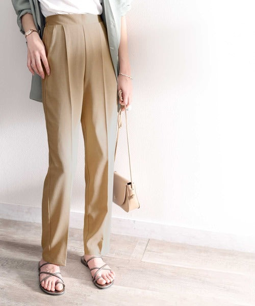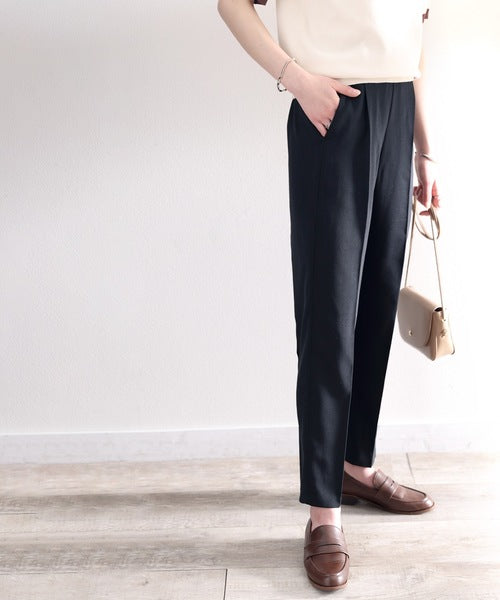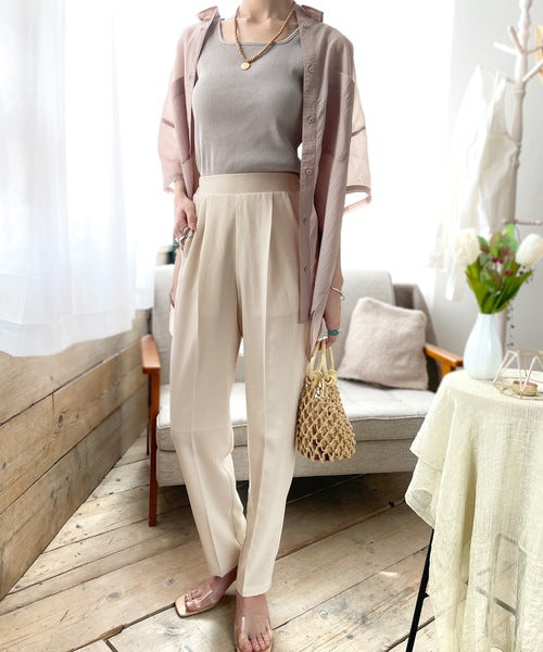 表面感が特徴のコットンリネンライク生地で仕立てたテーパードパンツ。