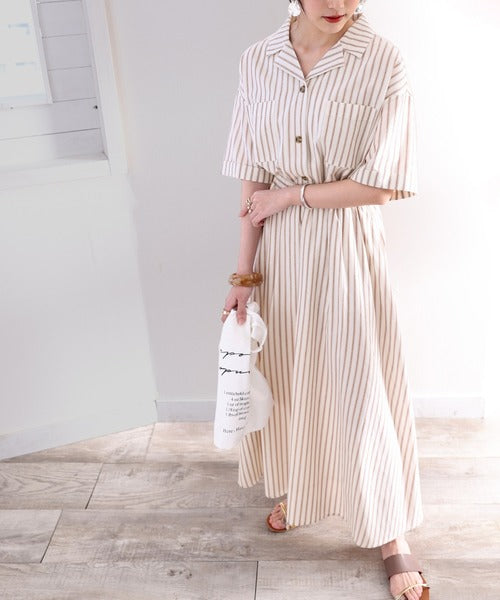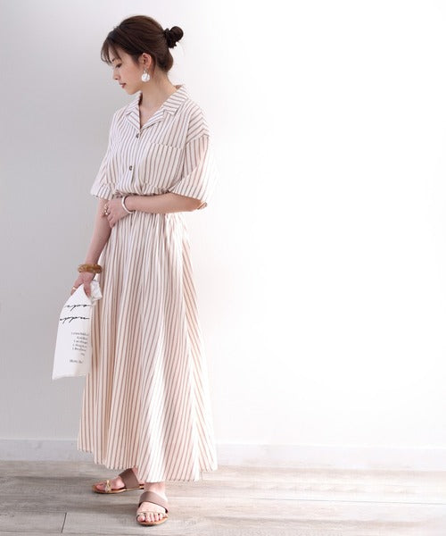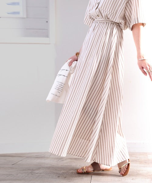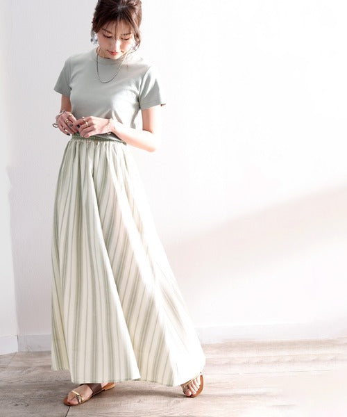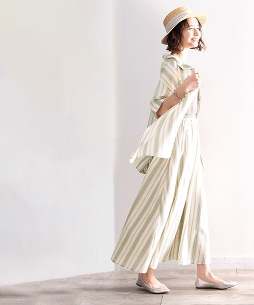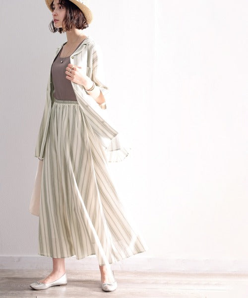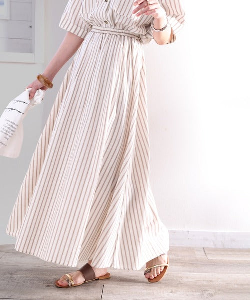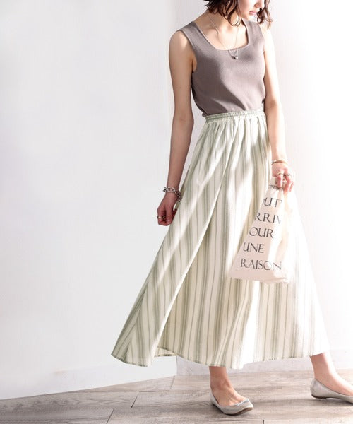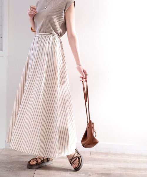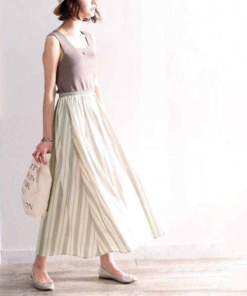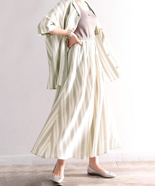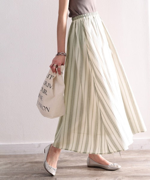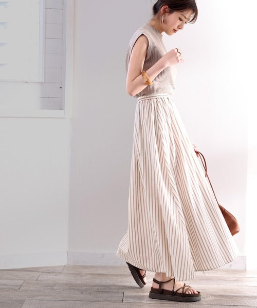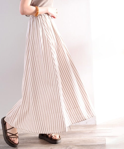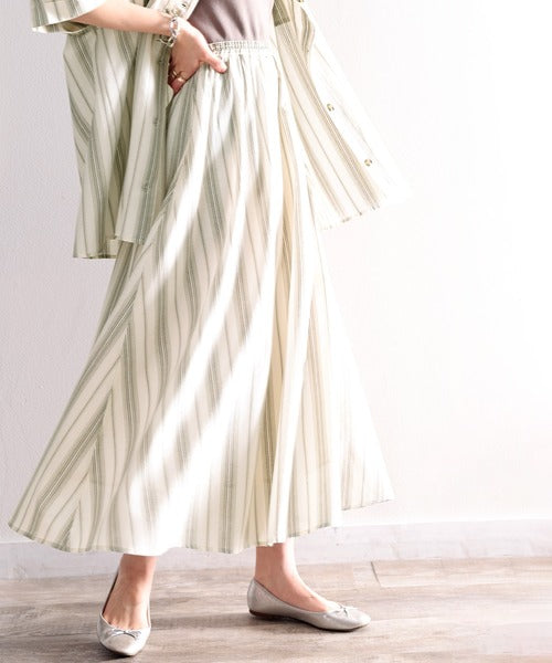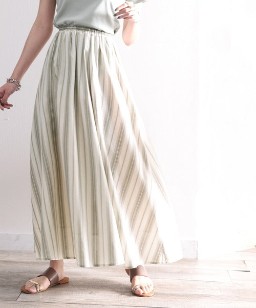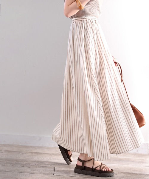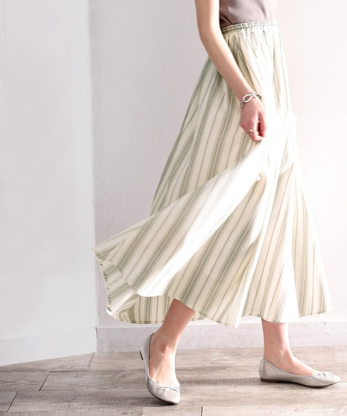 春の風舞う。ストライプ柄コットンリネンライクフレアスカート ce0420102