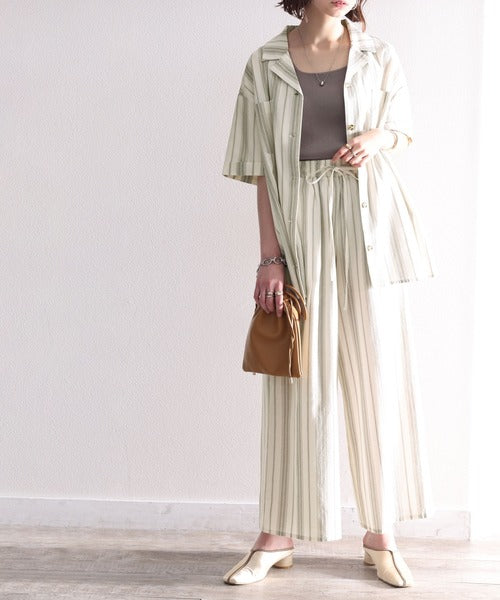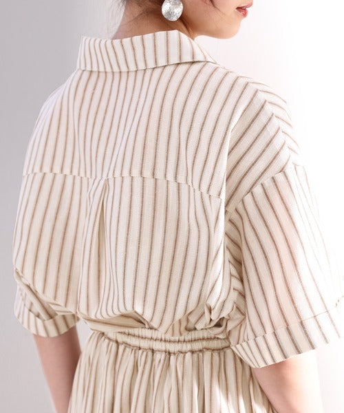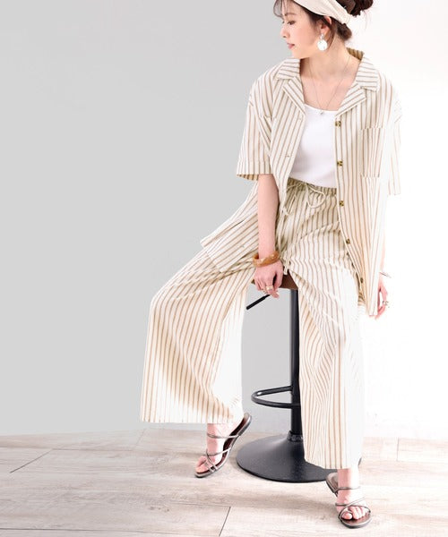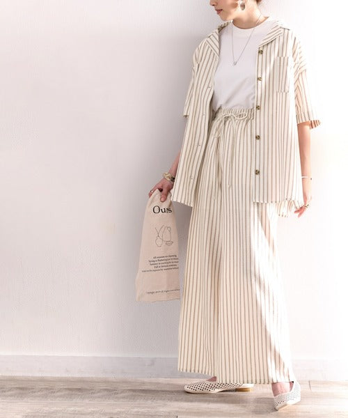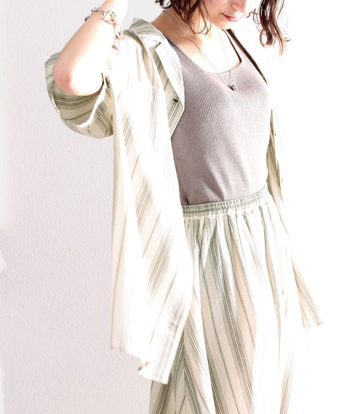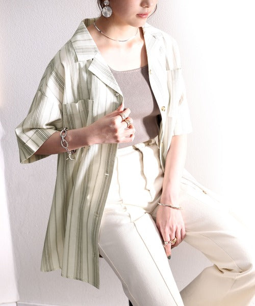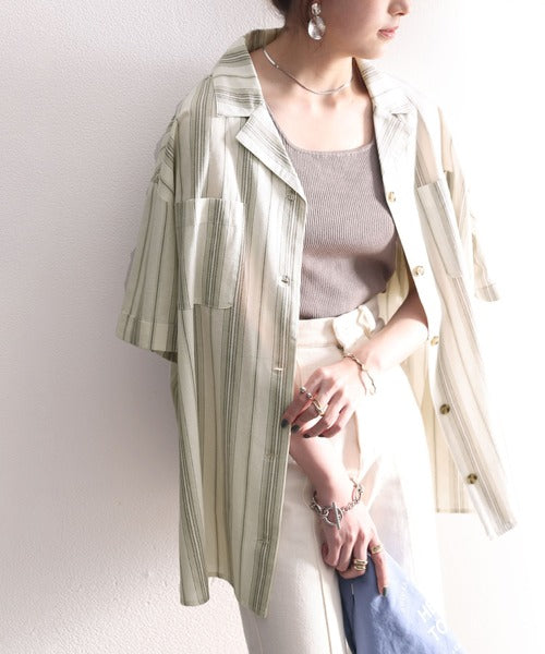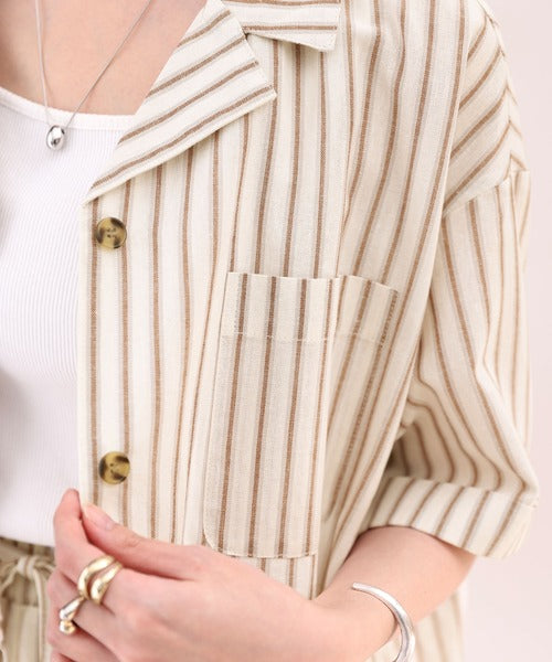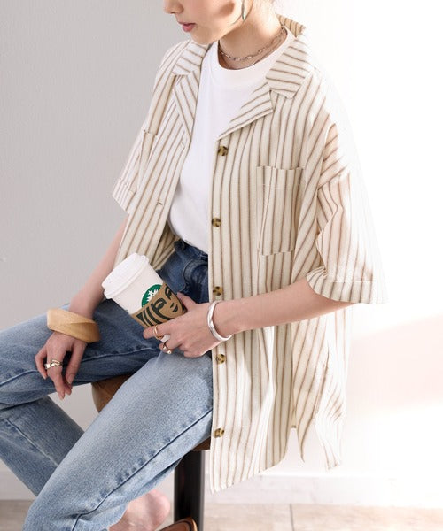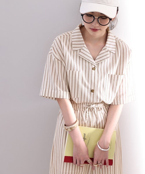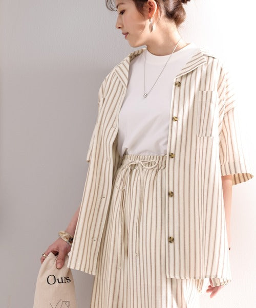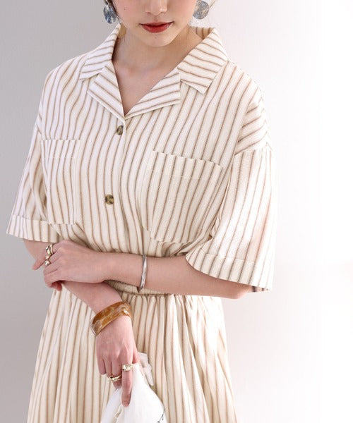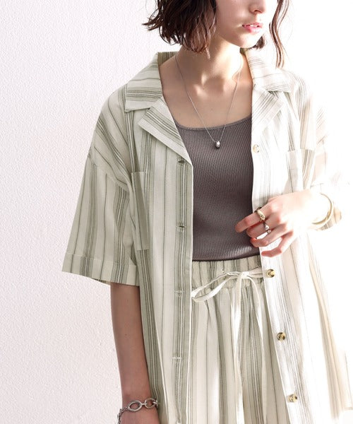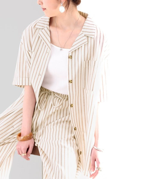 自然な風合いをまとう。ストライプ柄コットンリネンライク開襟シャツ ce0420103