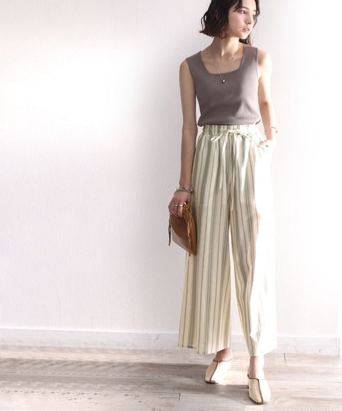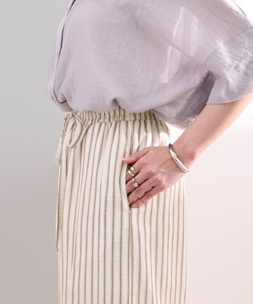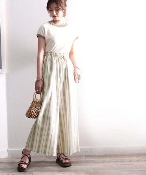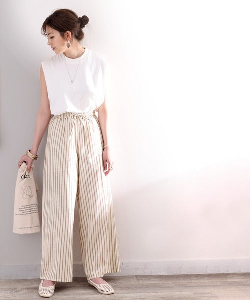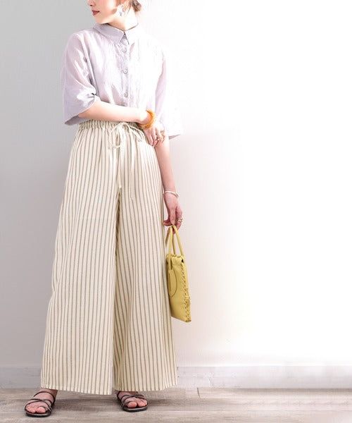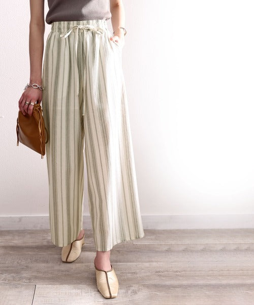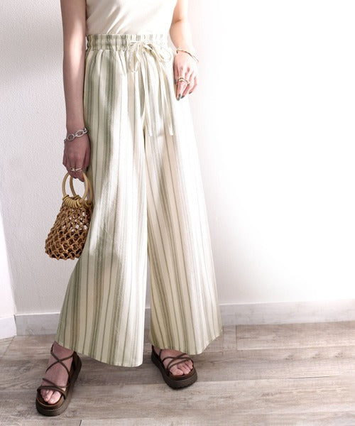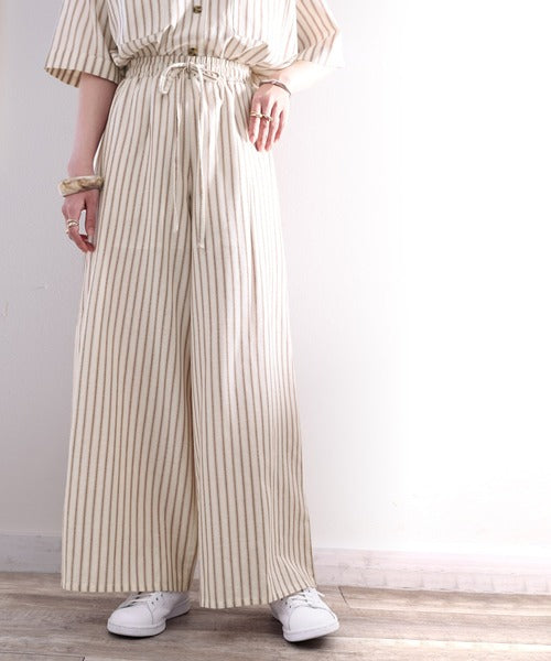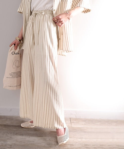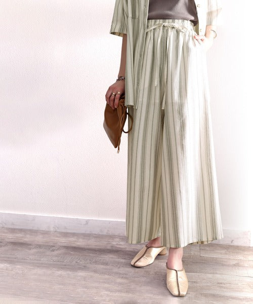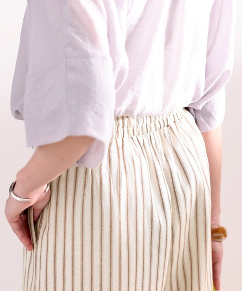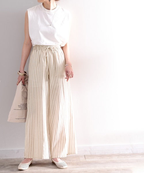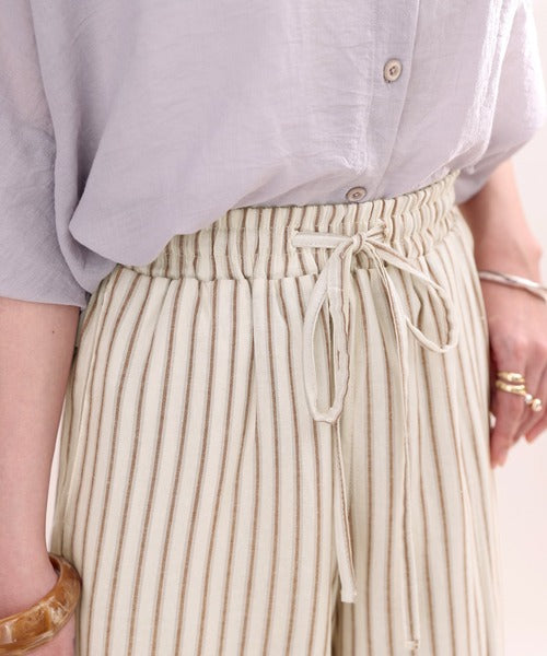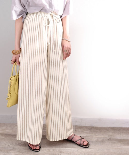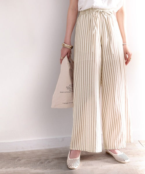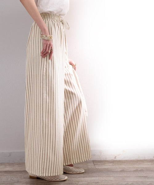 さらっと足さばき良好。ストライプ柄コットンリネンライクフレアパンツ ce0420104