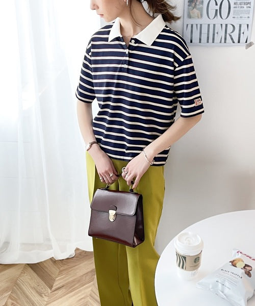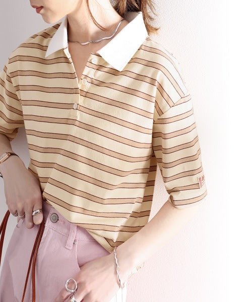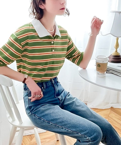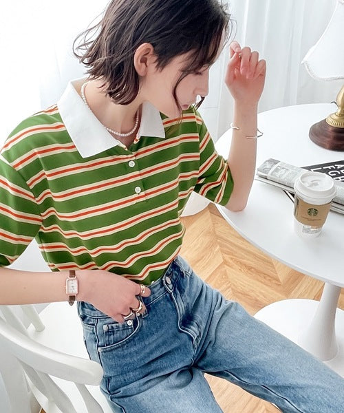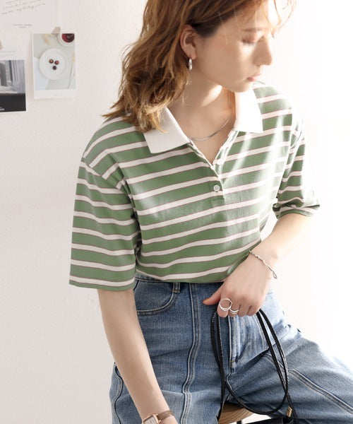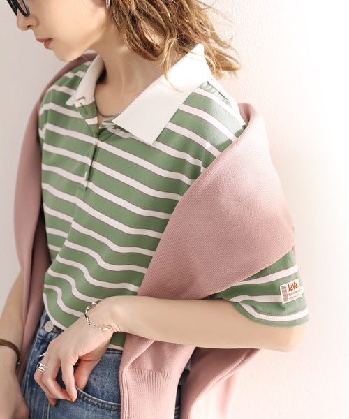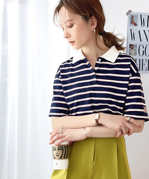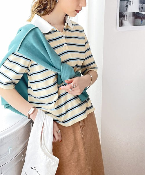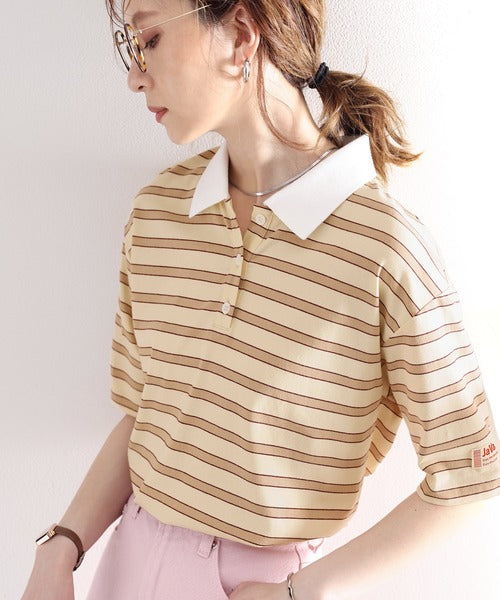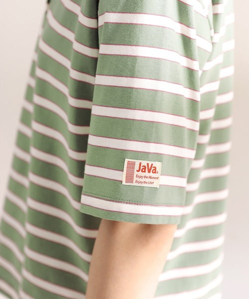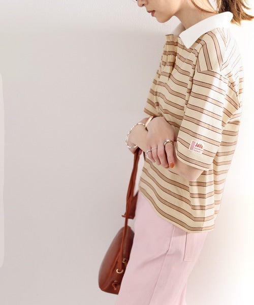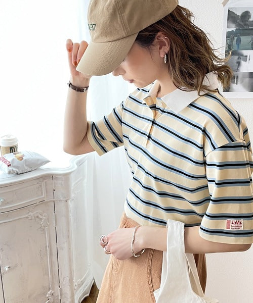 《JaVa ジャバコラボ》愛されレトロボーダー。マルチボーダー衿付き半袖Tee ce0420111