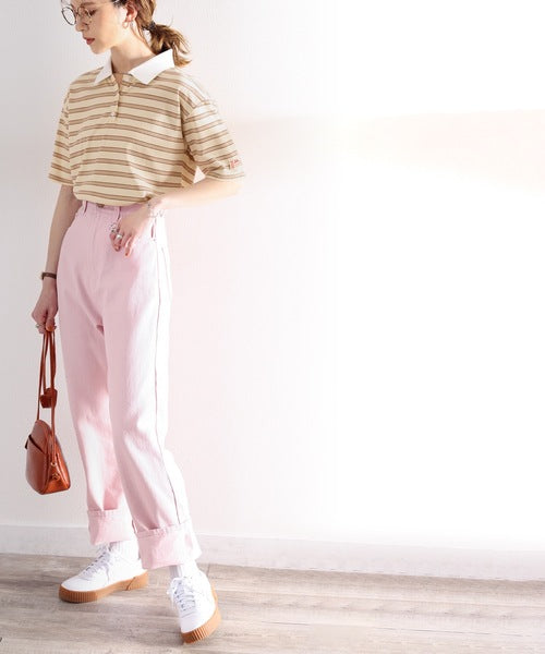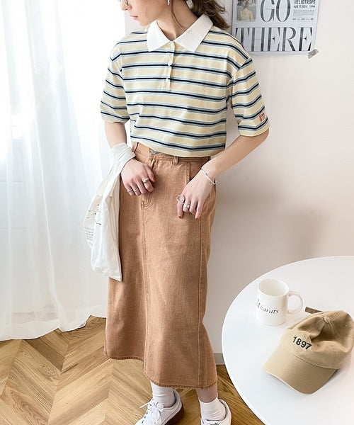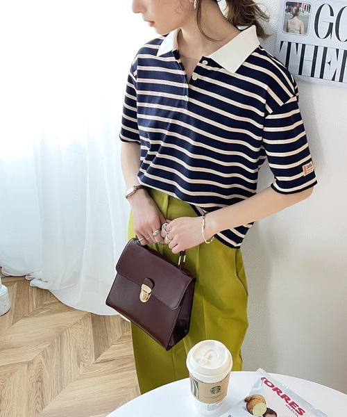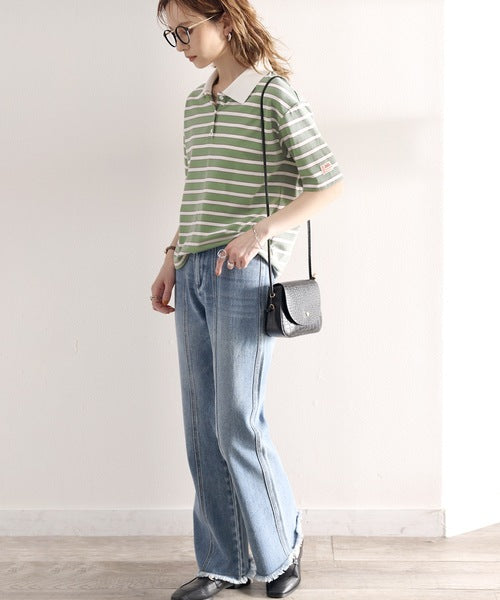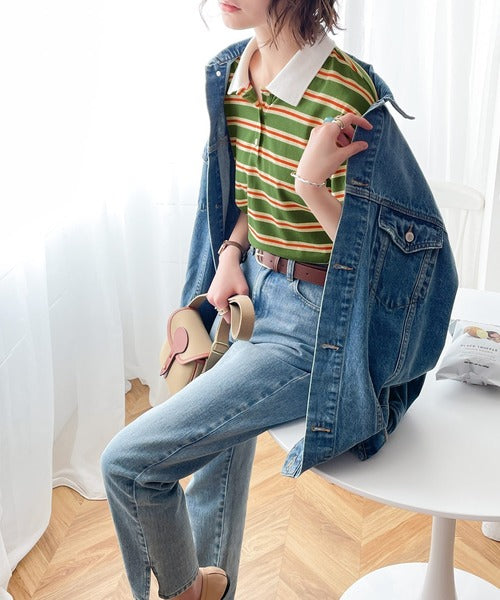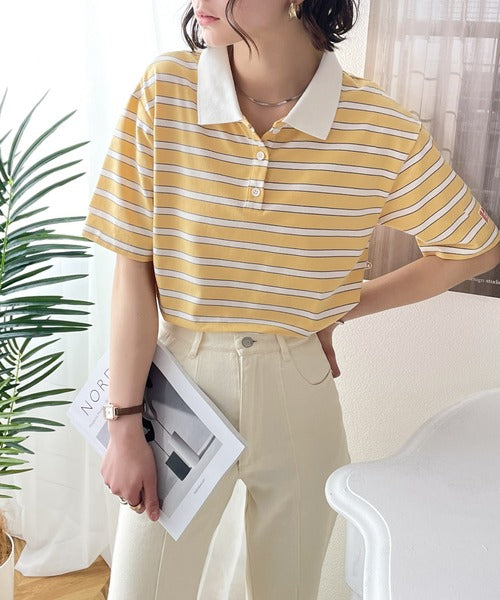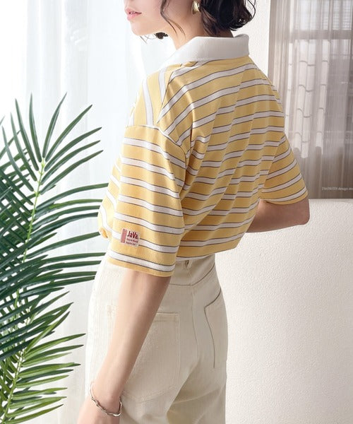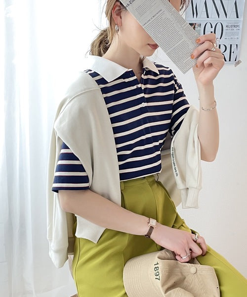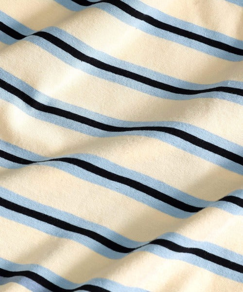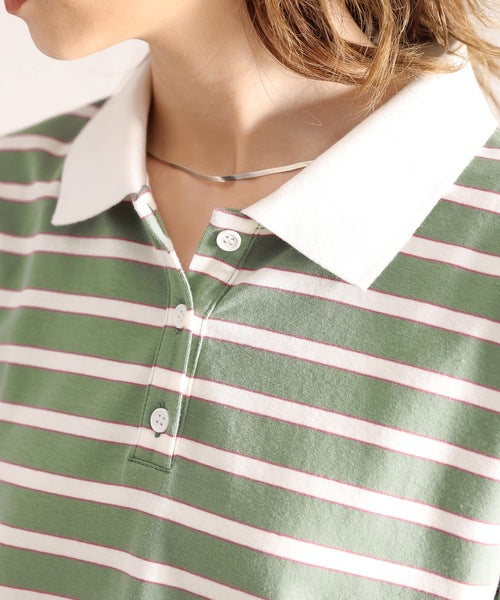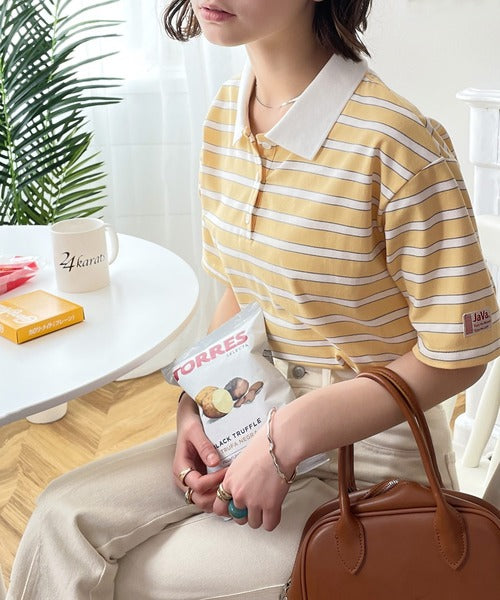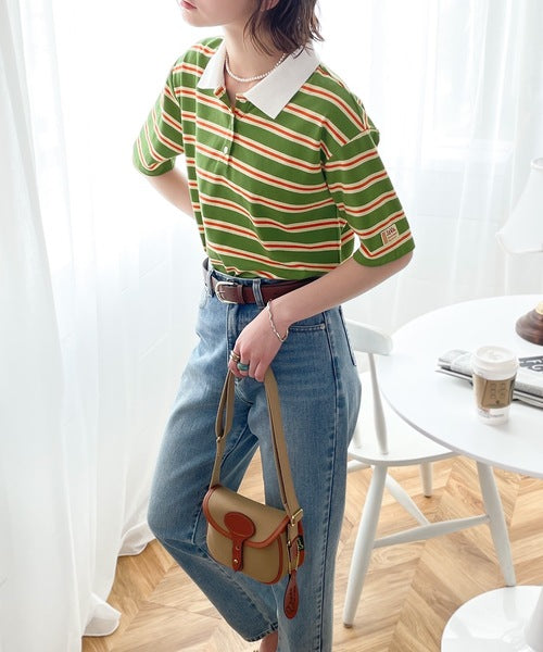 《JaVa ジャバコラボ》愛されレトロボーダー。マルチボーダー衿付き半袖Tee ce0420111