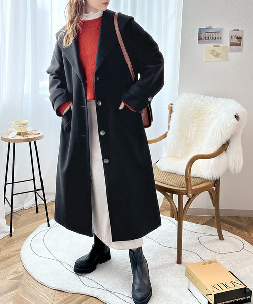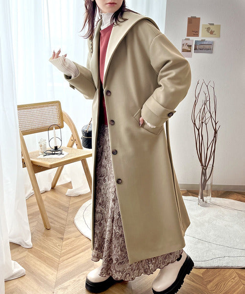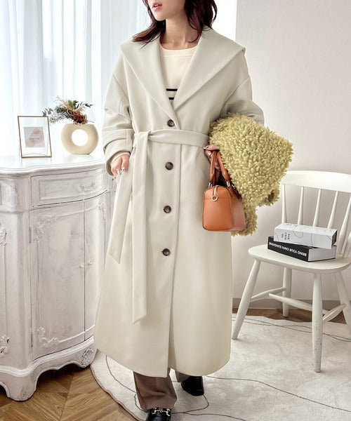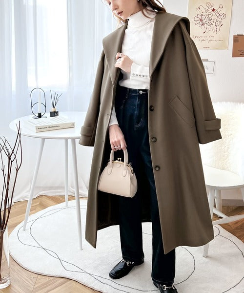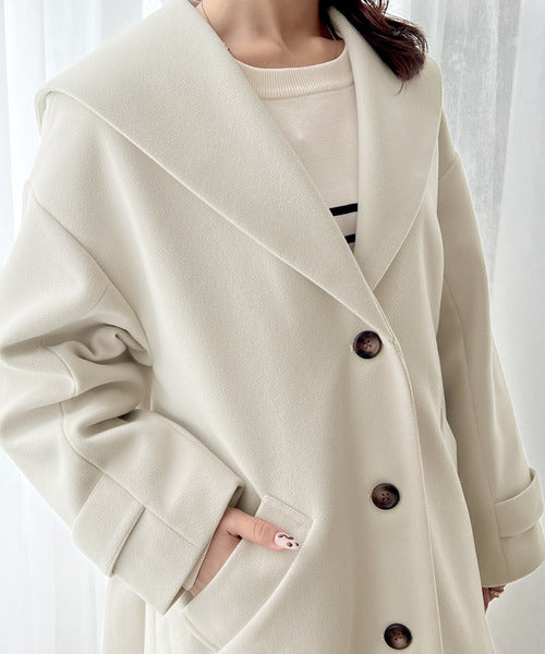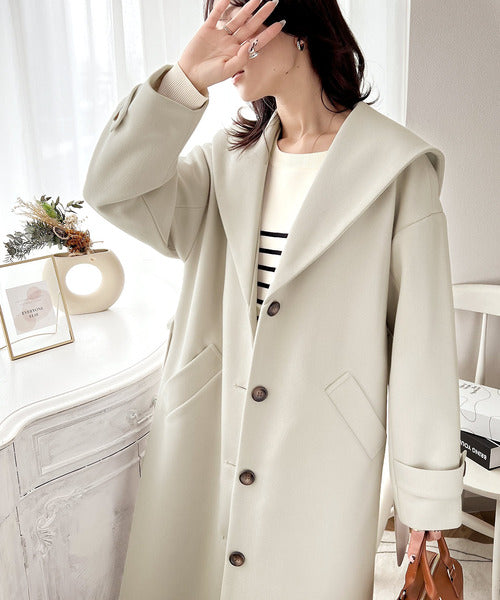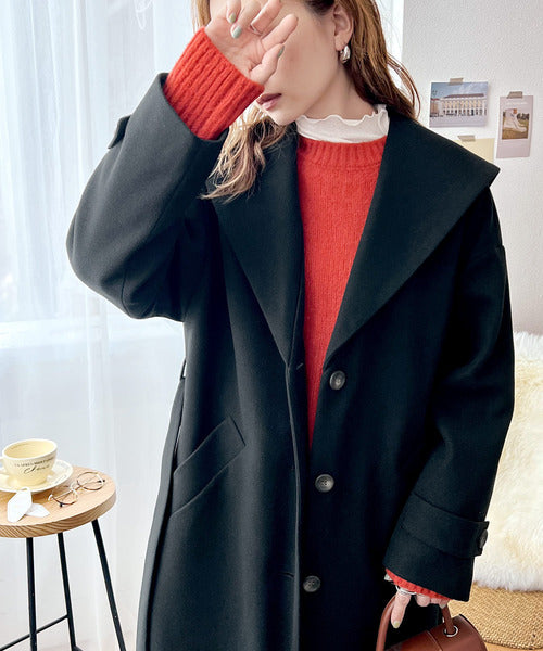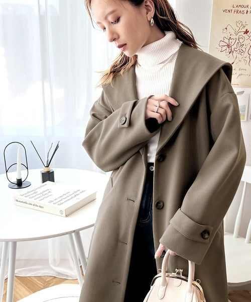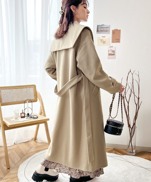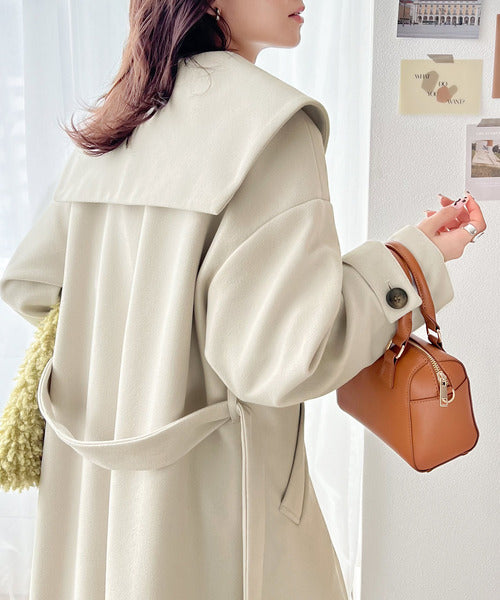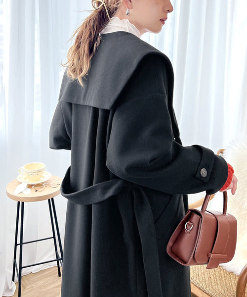 女性らしいビッグセーラーカラーが大人可愛いオーバーロングコート。