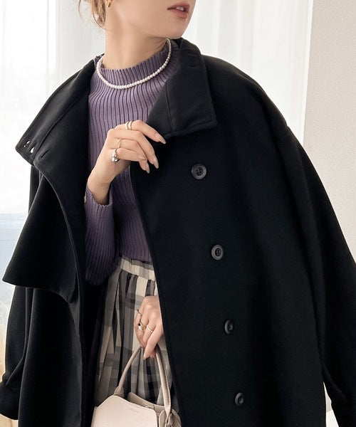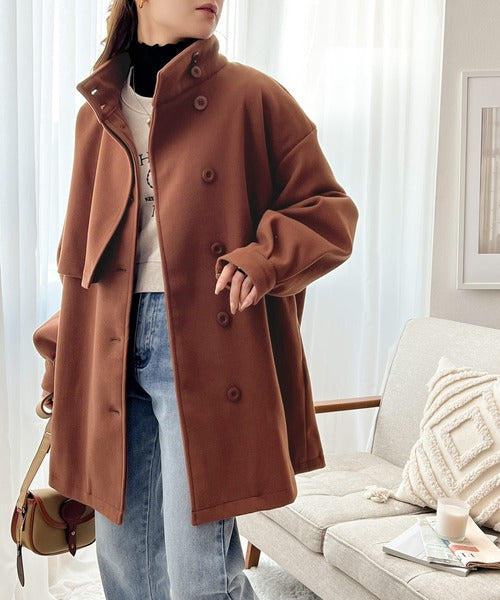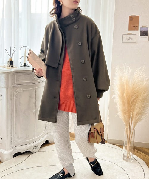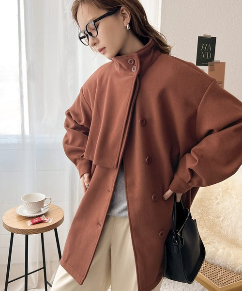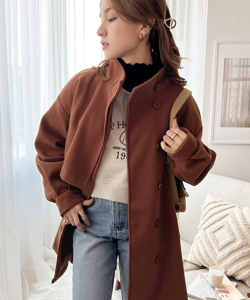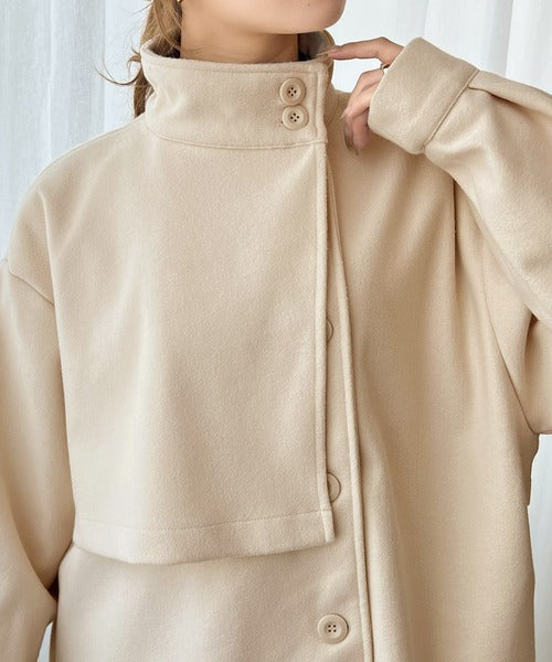 絶妙なあざと感。ライトフェイクウールスタンドネックコート ce0420121