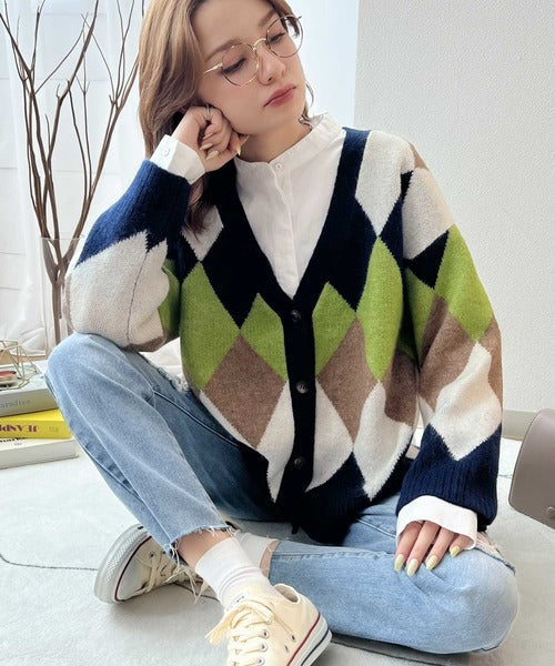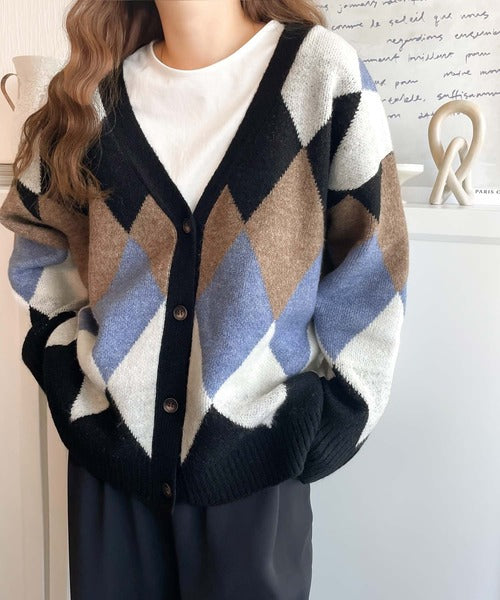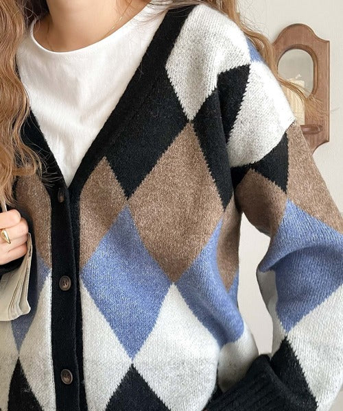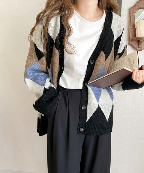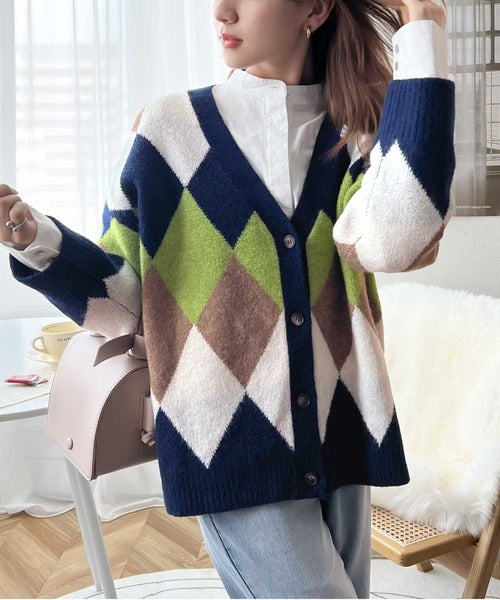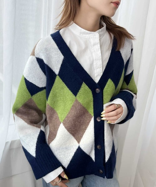 愛され女性の決定版。マルチアーガイル柄ニットカーディガン ce0420141