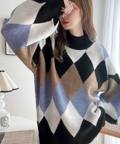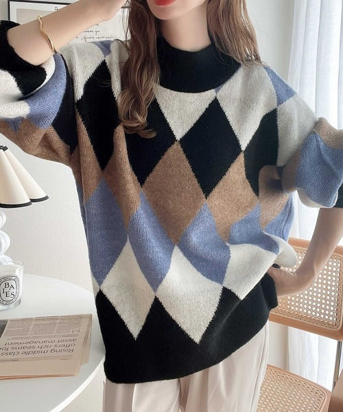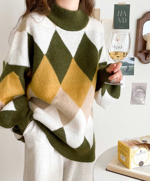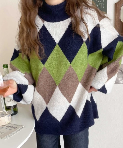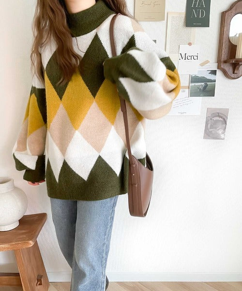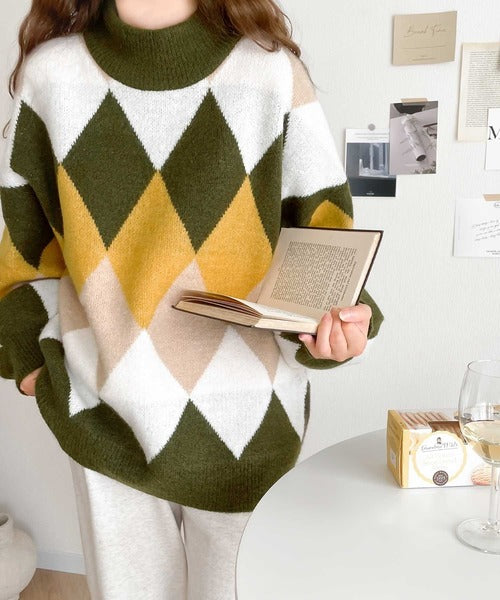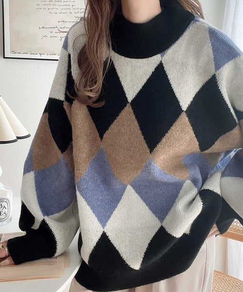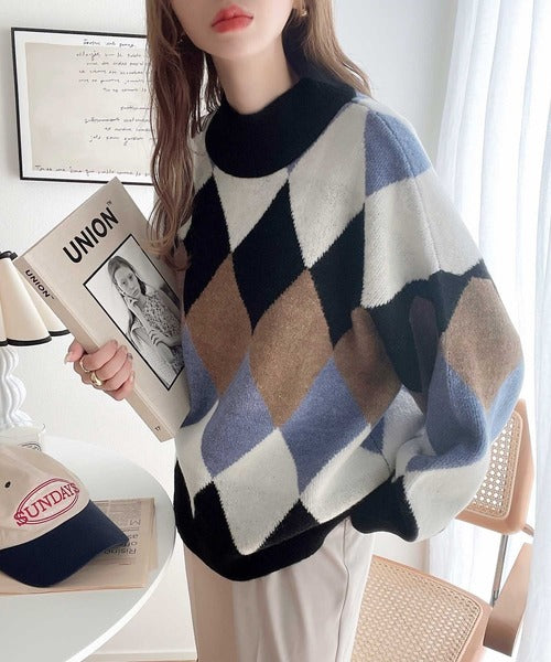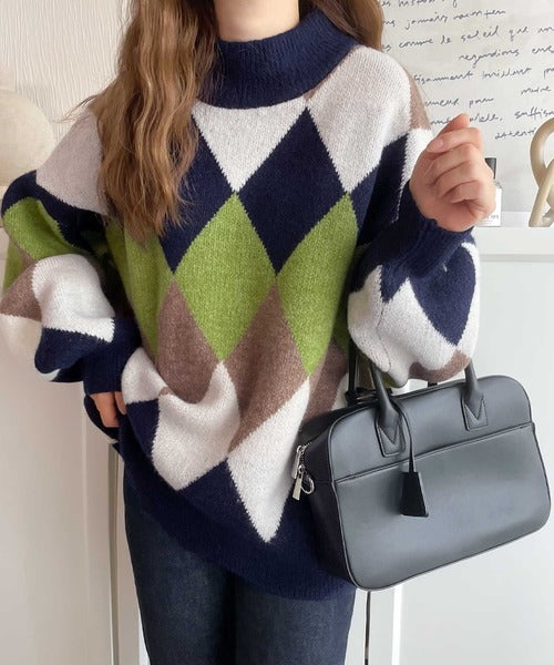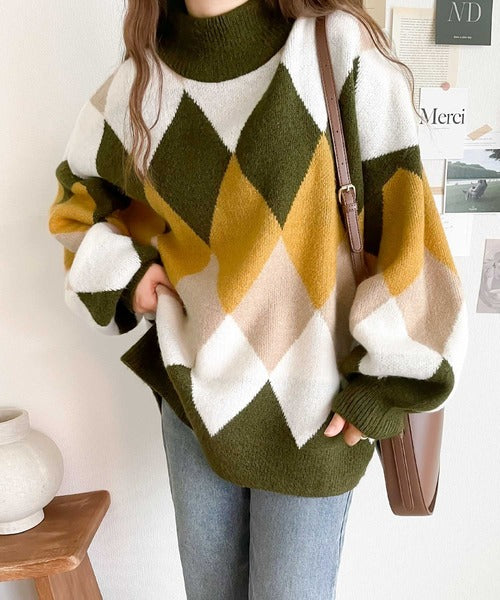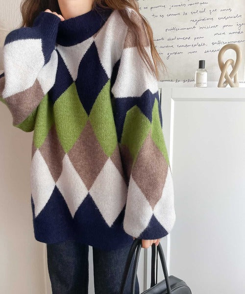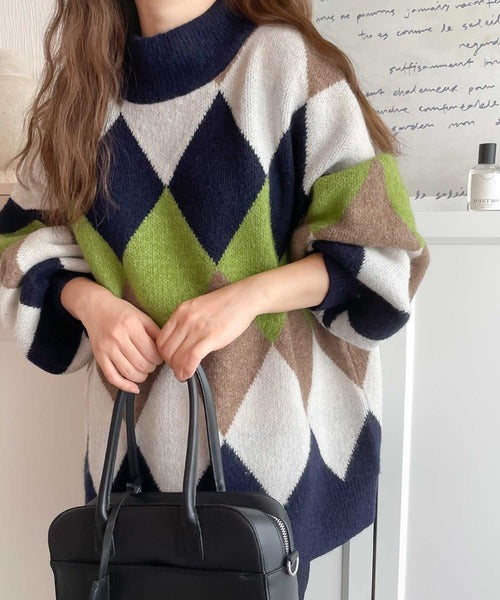 ほんのり愛らしさ香る。マルチアーガイル柄ハイネックニットプルオーバー ce0420142