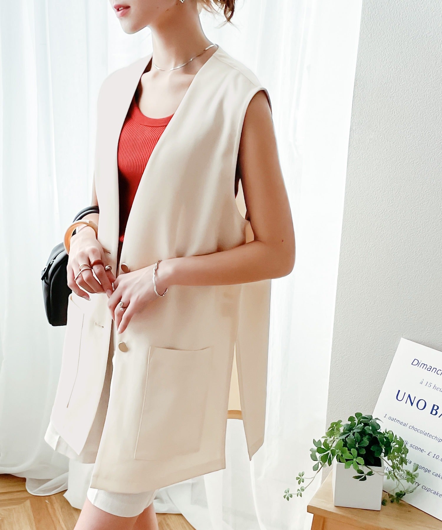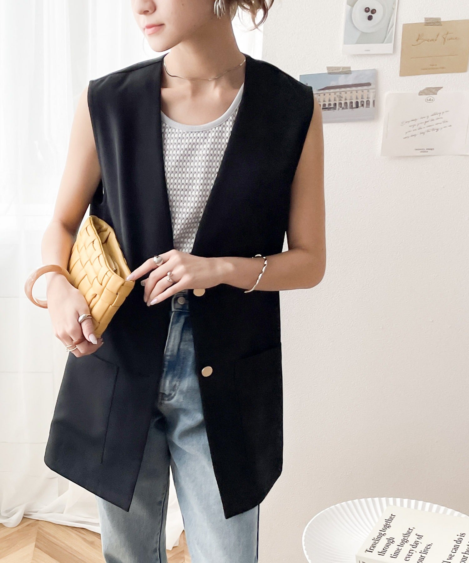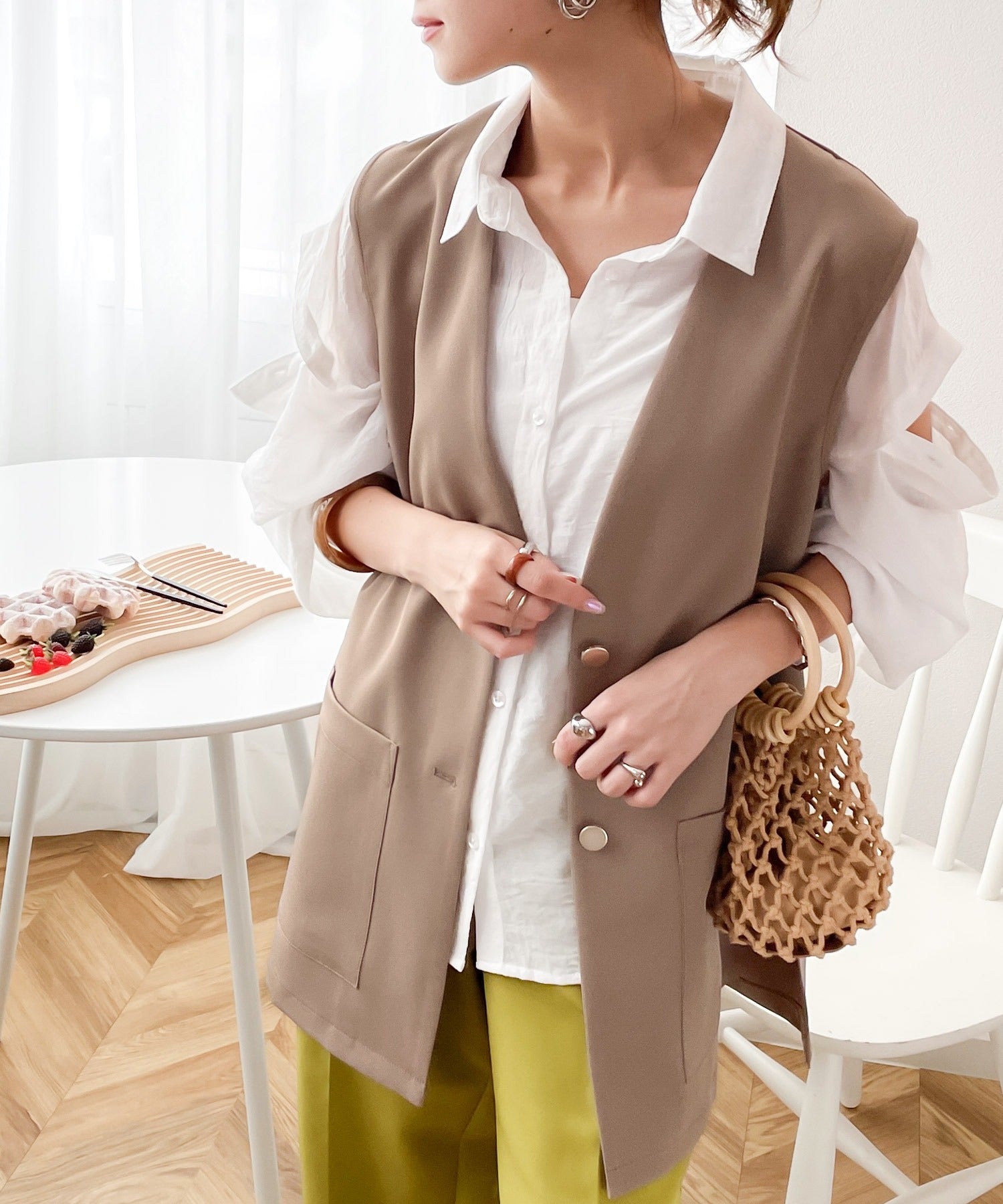 合わせるインナーによってロングシーズン楽しめるジレベスト。