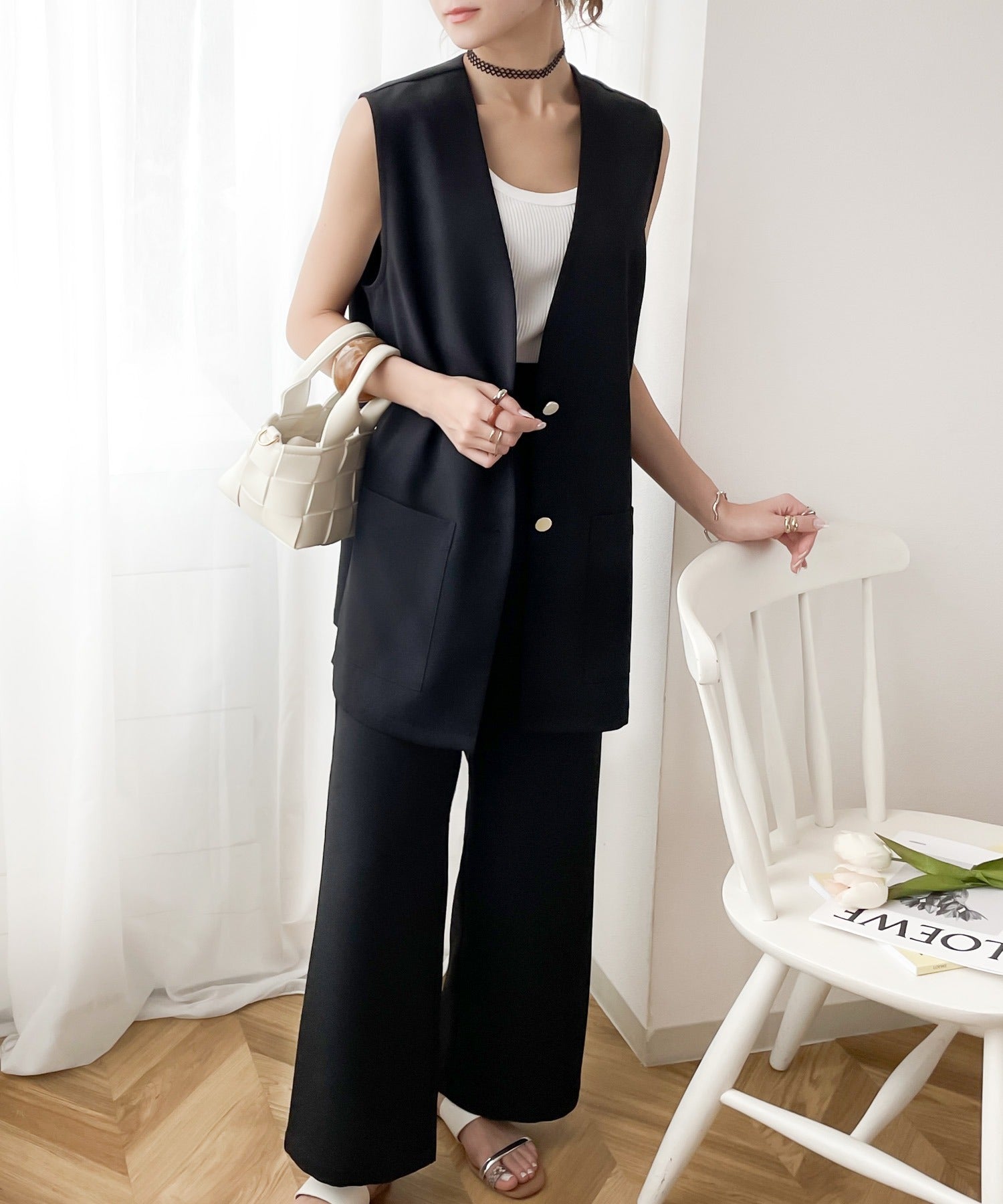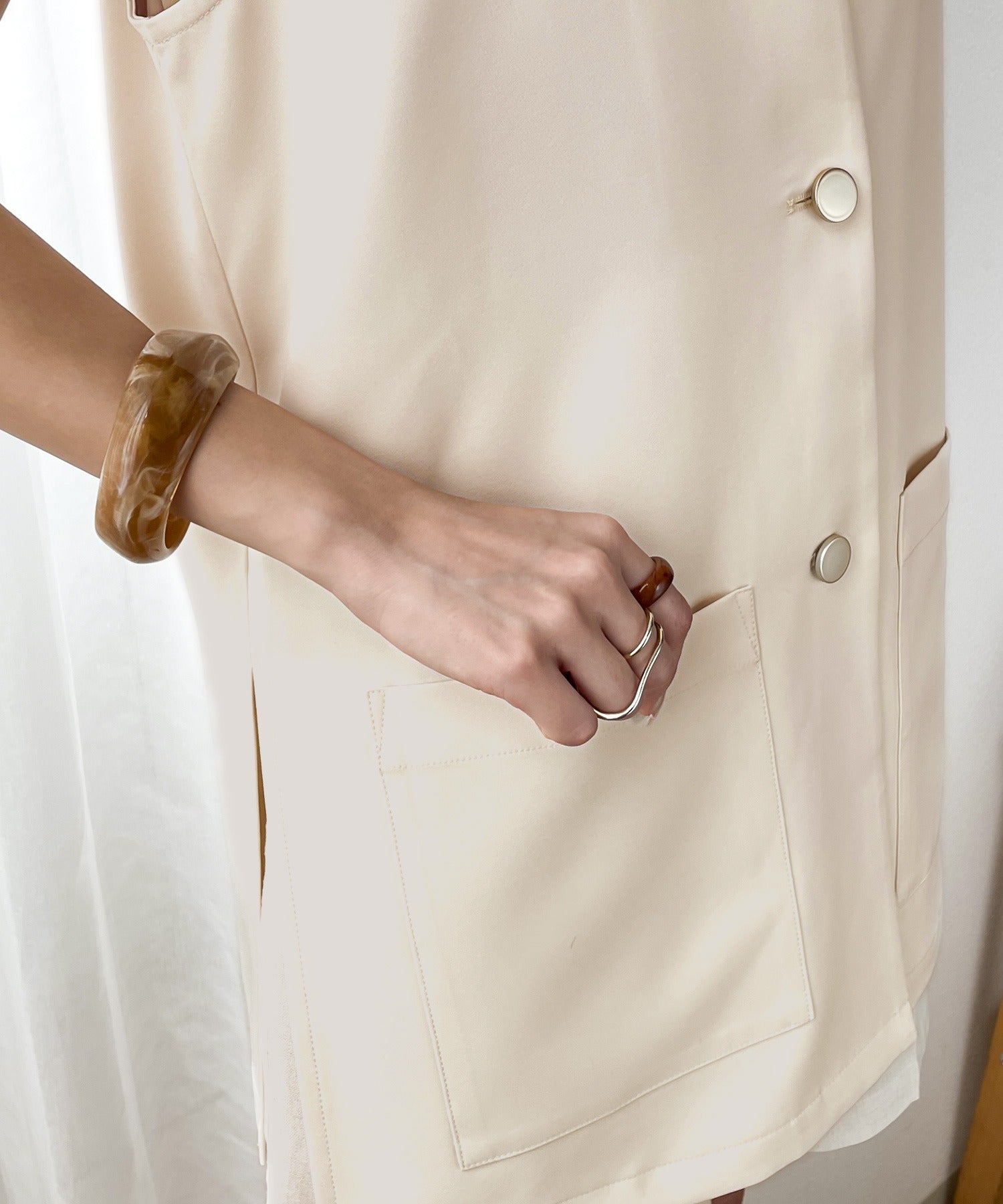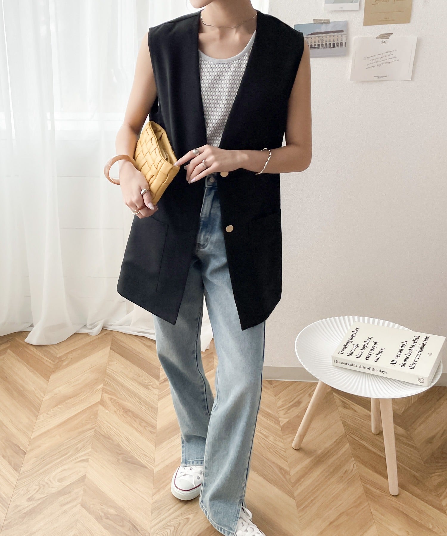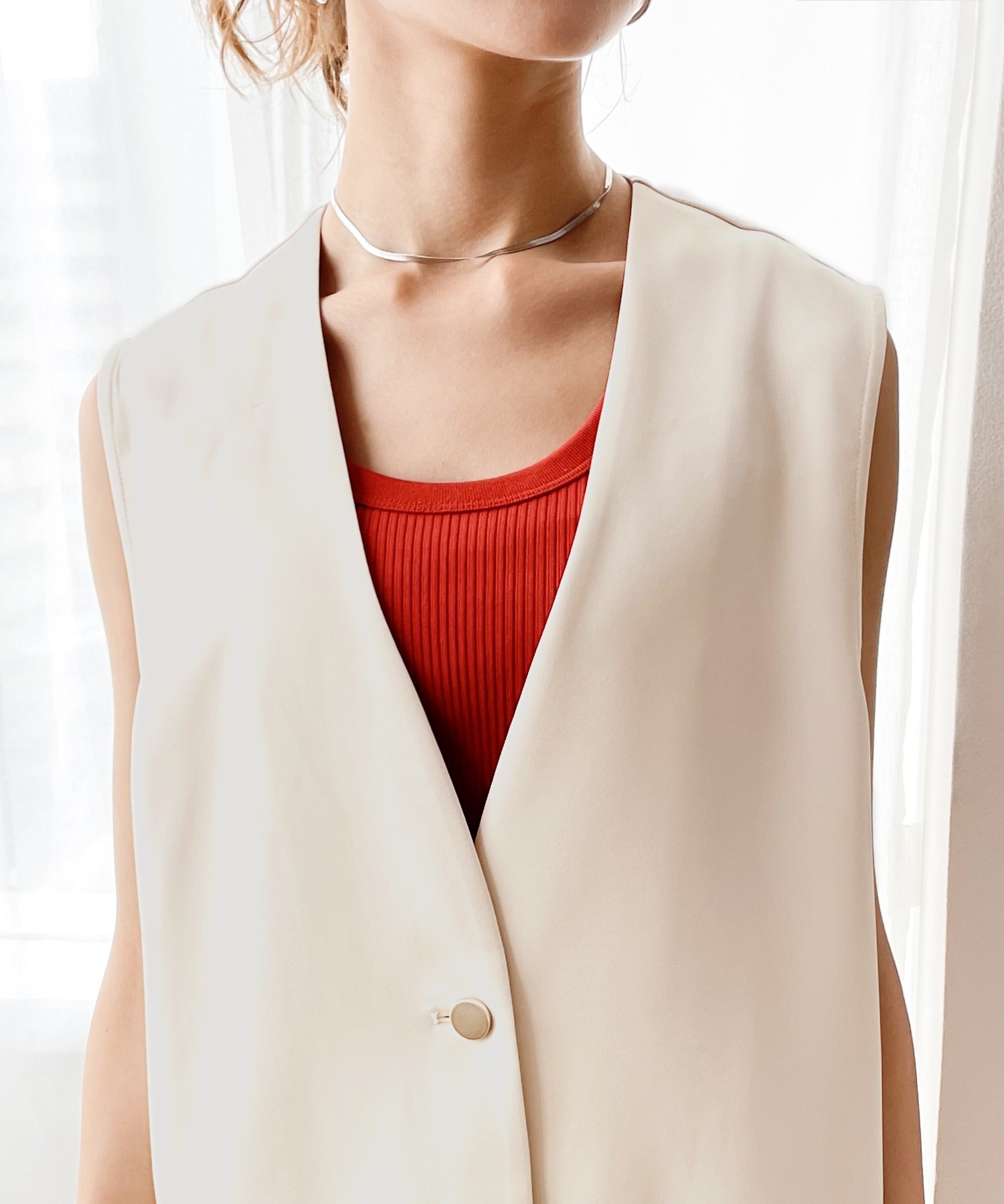 合わせるインナーによってロングシーズン楽しめるジレベスト。