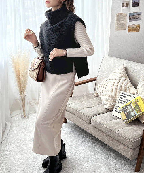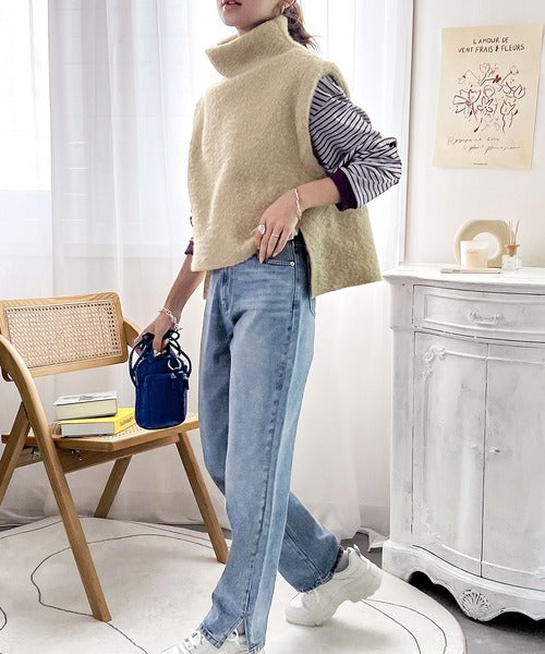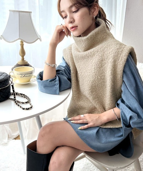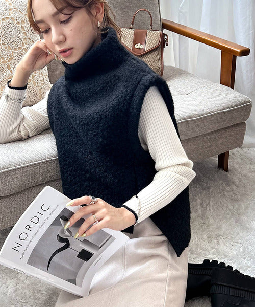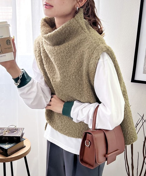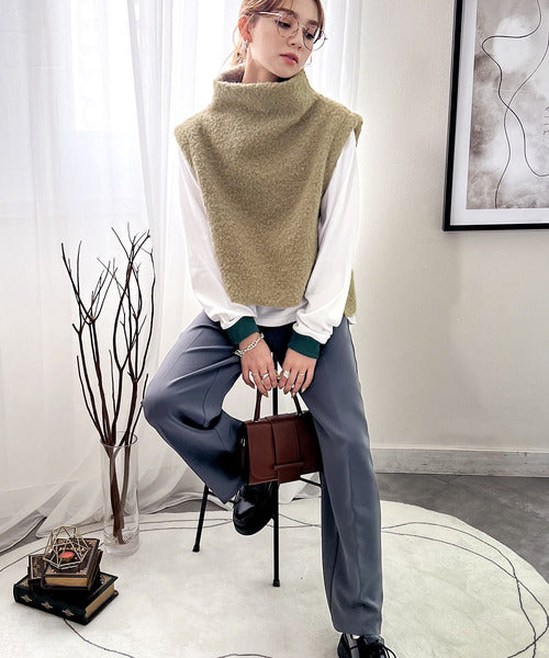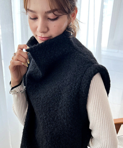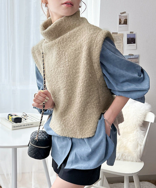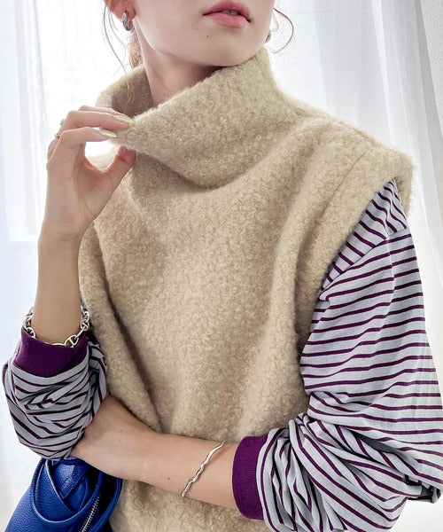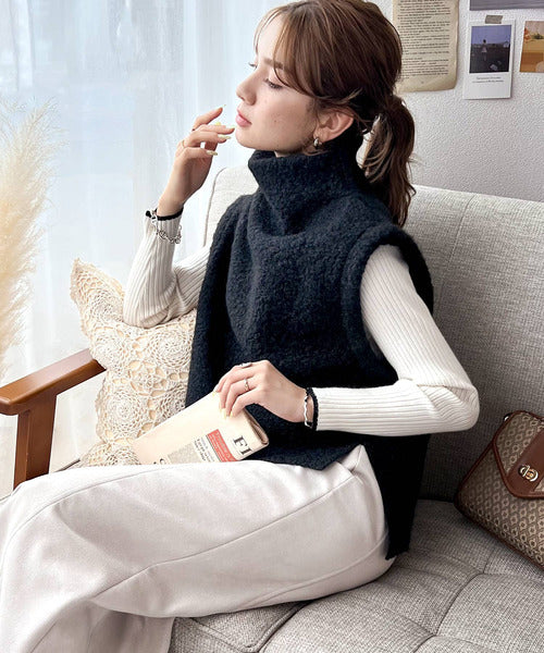 今っぽいくしゅっと感。フェイクリングウールボトルネックベスト ce0420162
