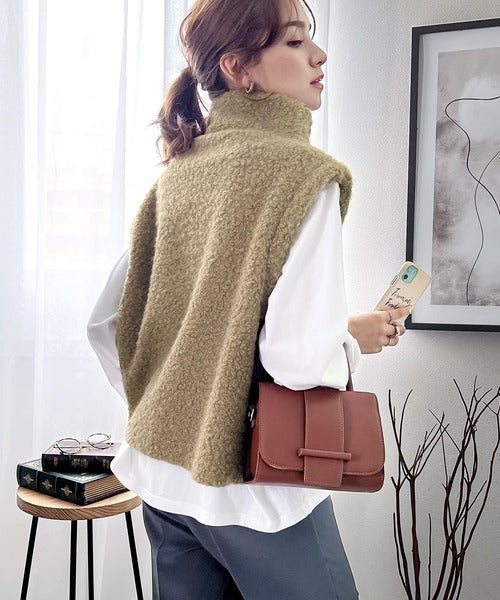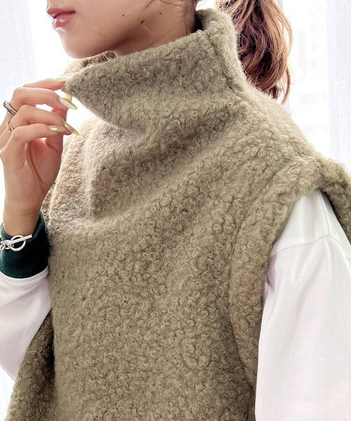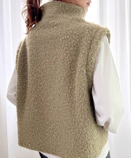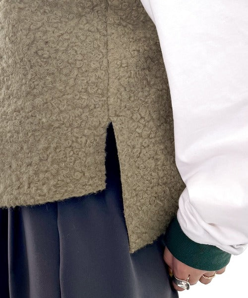 くるくるとした起毛素材でアクセントを効かせた、トレンド感あふれるウールベスト。