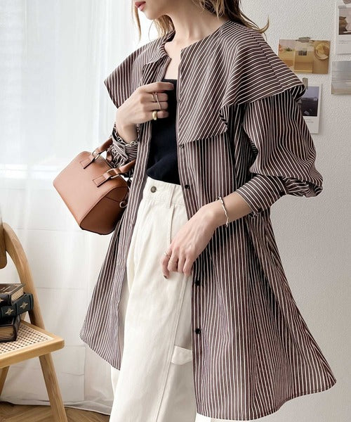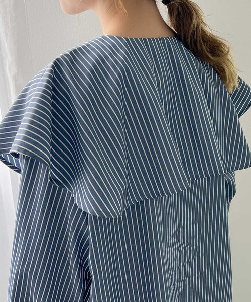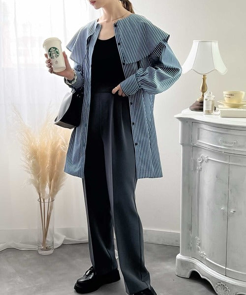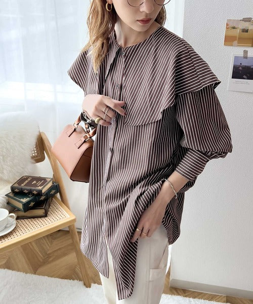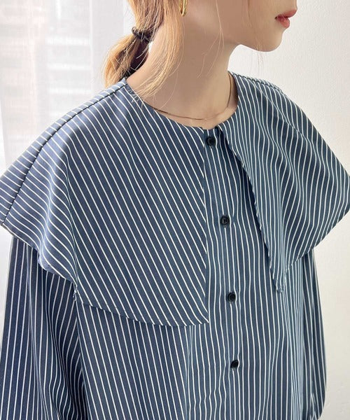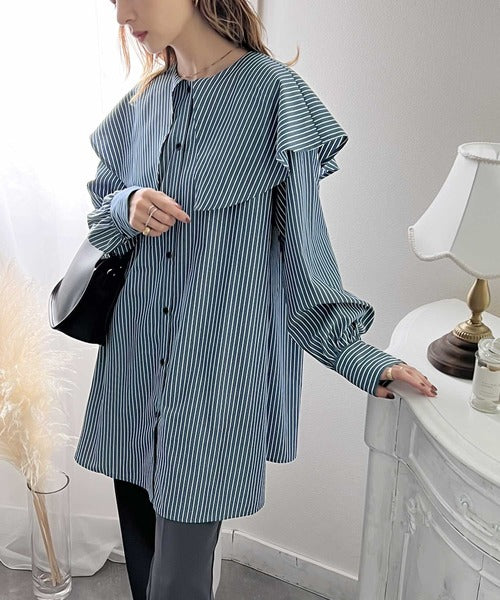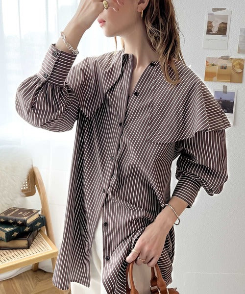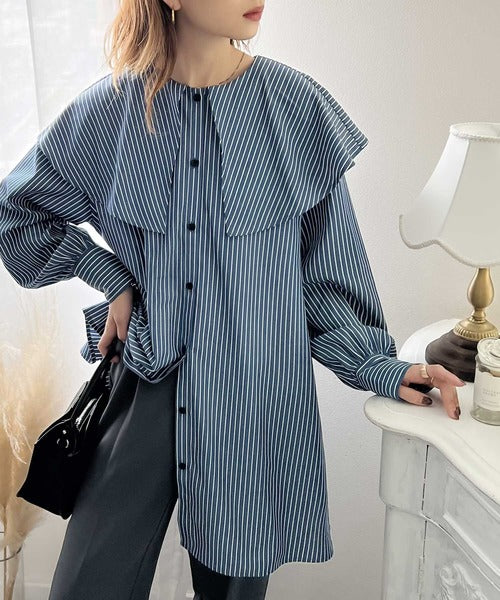 大人の”可愛い”。ビッグカラーチュニック丈ブラウス(無地&ストライプ柄) ce0420166
