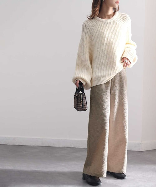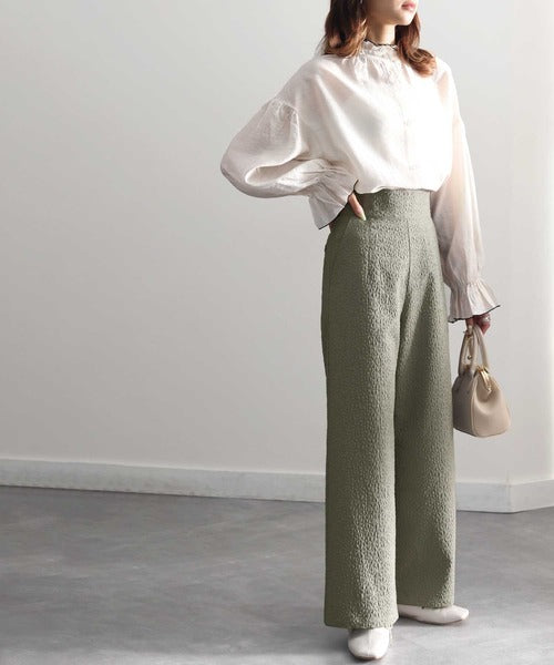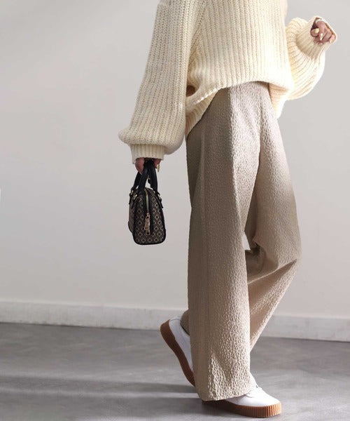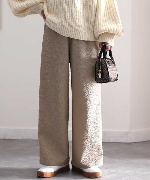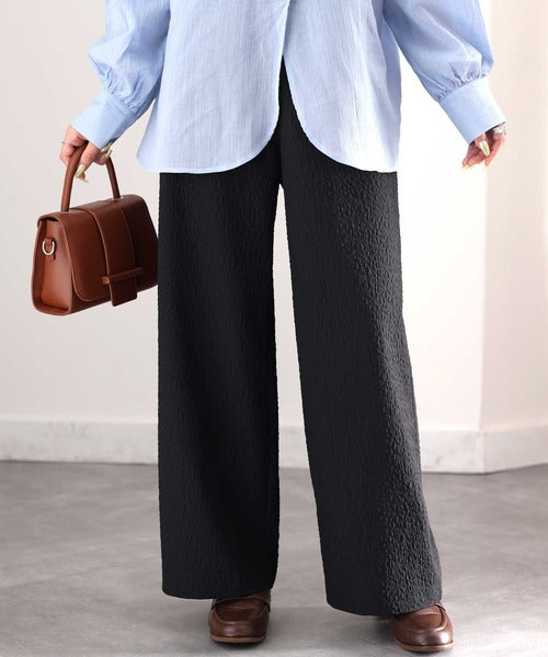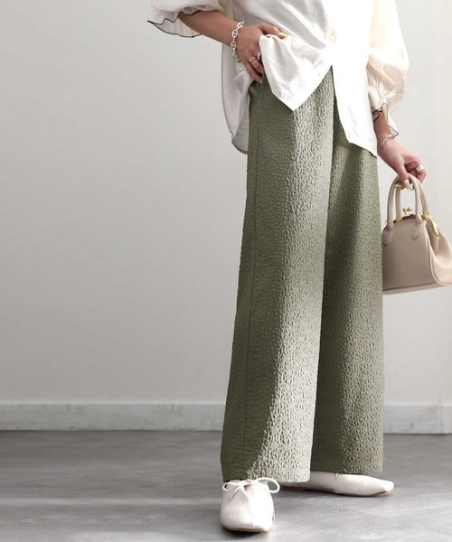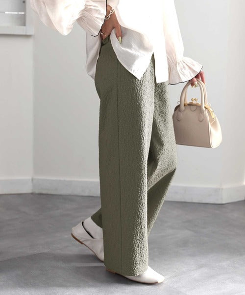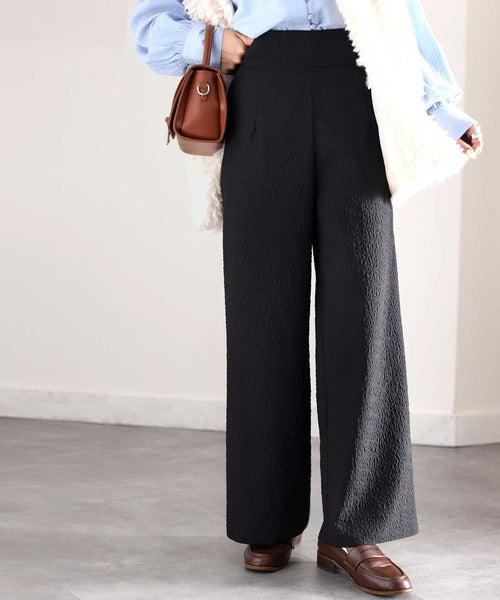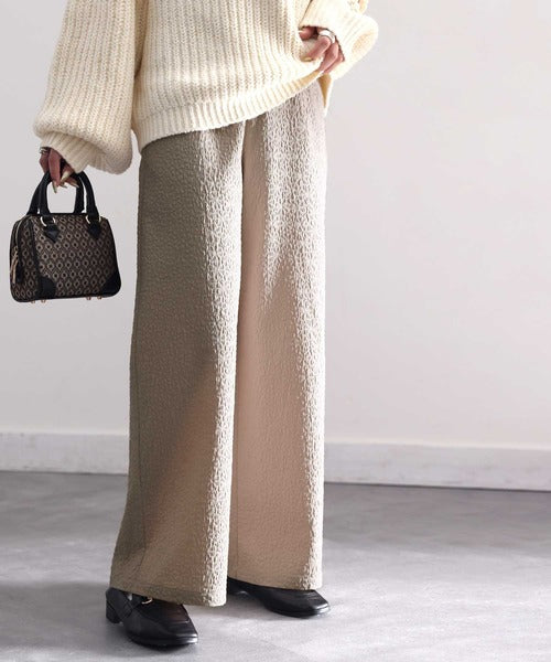 品良くスタイルUP。ぽこぽこエンボス花柄ワイドパンツ ce0420167