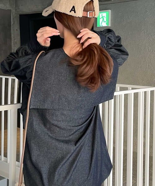 衿を外せば、ボリューム感たっぷりのぽわん袖が可愛いブラウスに。
