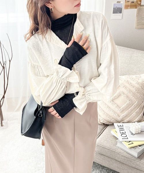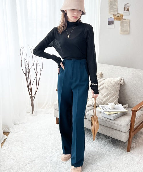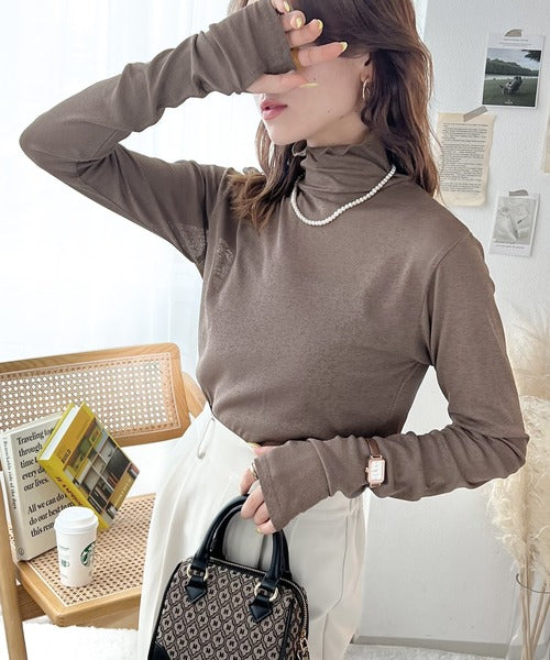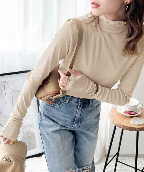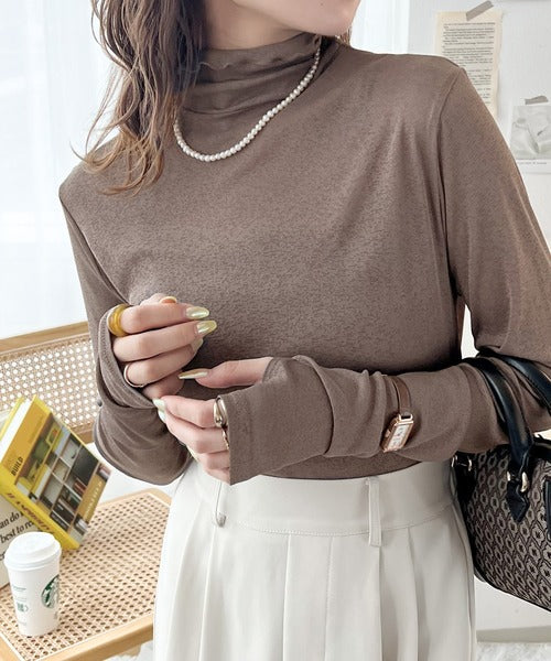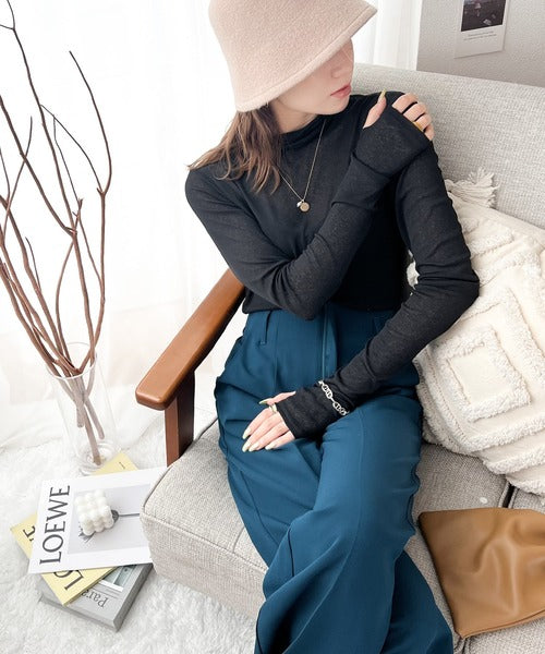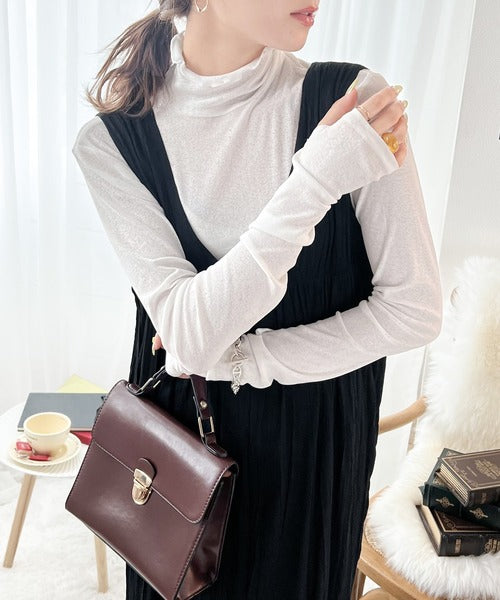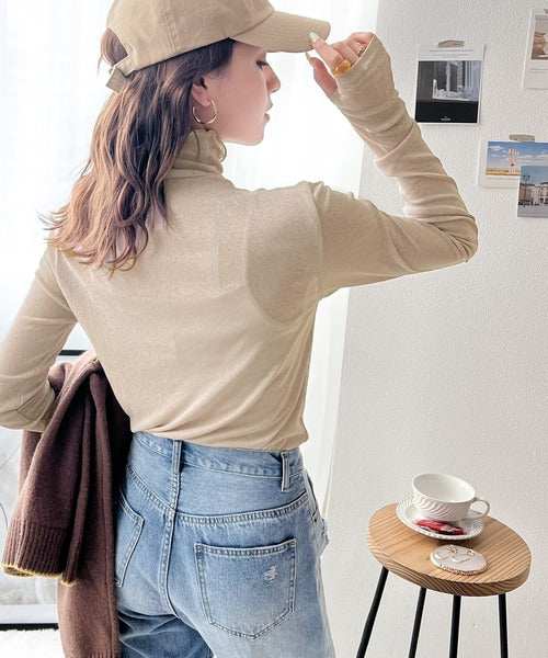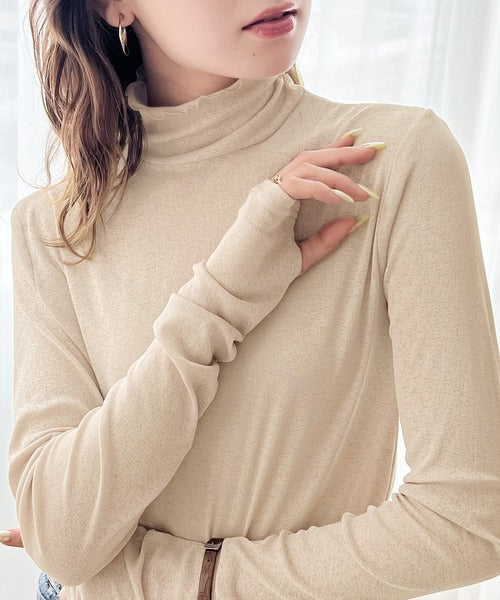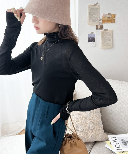 コーデにも着回し抜群!指抜きシアー素材メロウハイネックトップス ce0420175