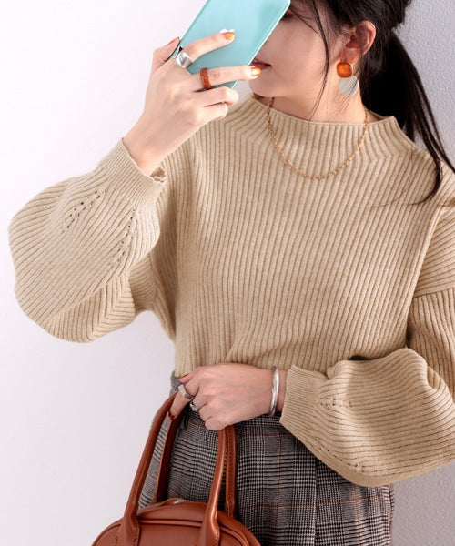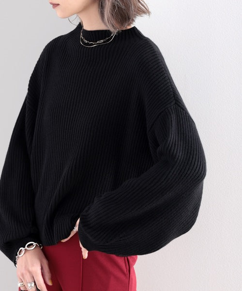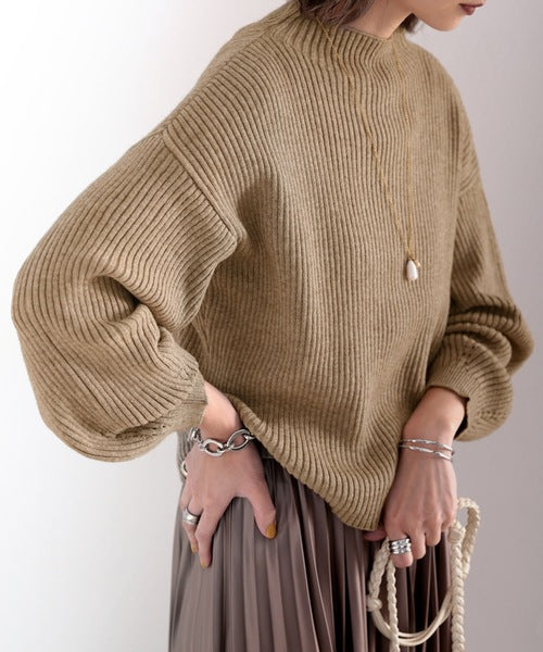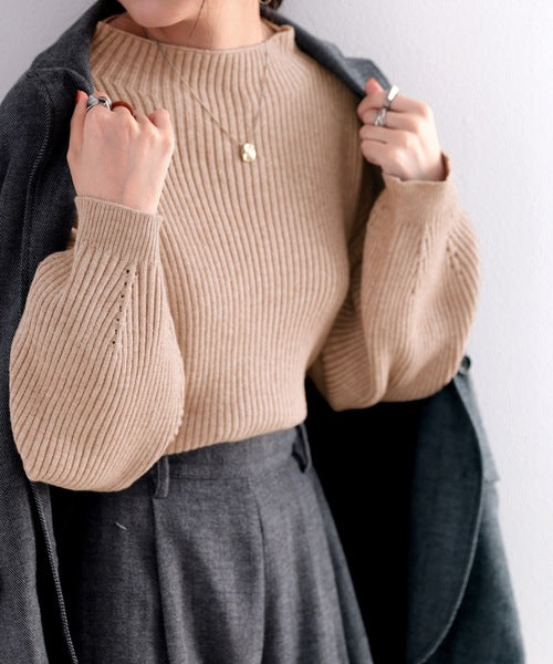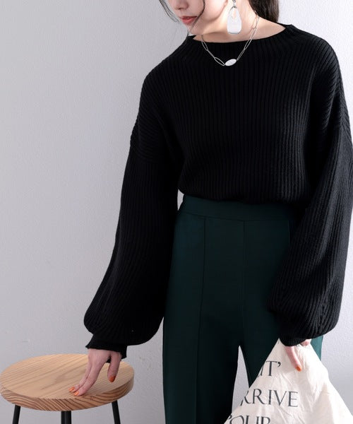 袖ぽわん。大人の定番、ボトルネックリブニット ce0590031
