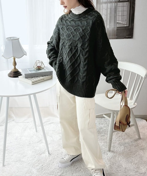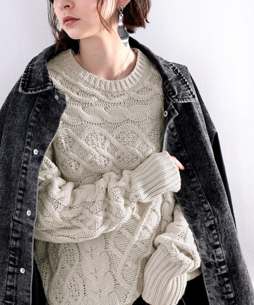 主役級アイテム。ランダムケーブルオーバーニット ce0590033