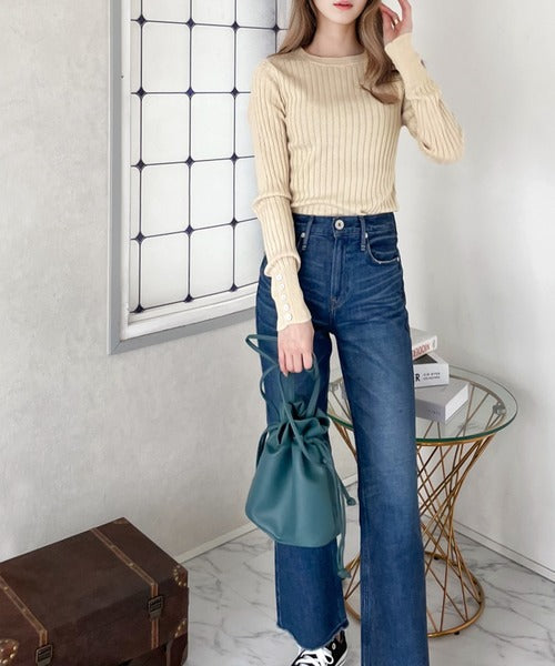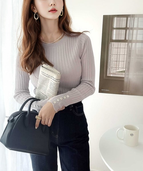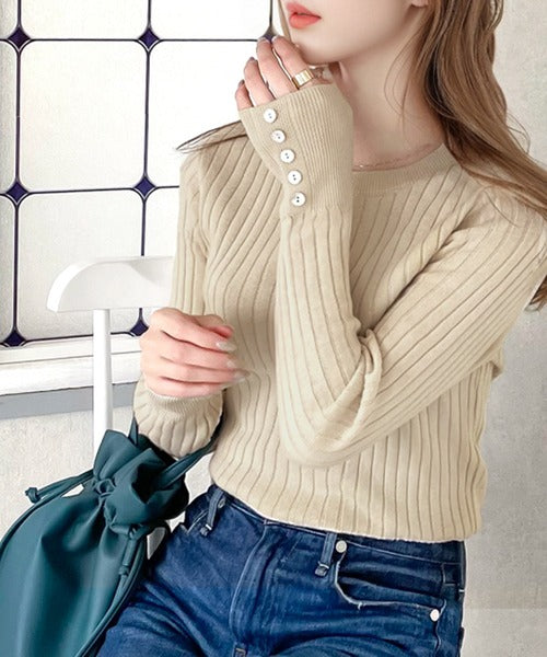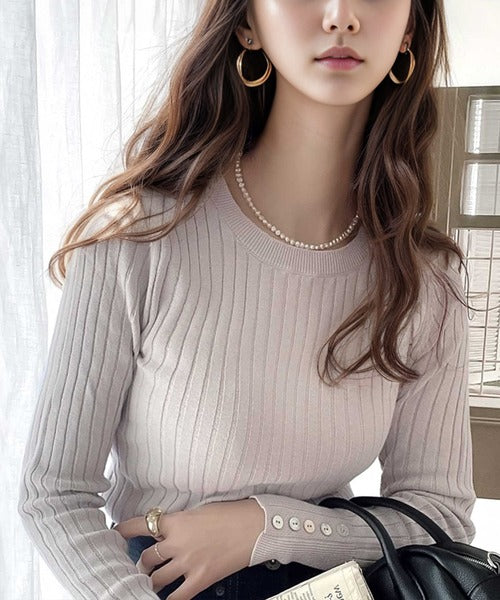 綿100%柔らか。優秀リブニットトップス ce0590034
