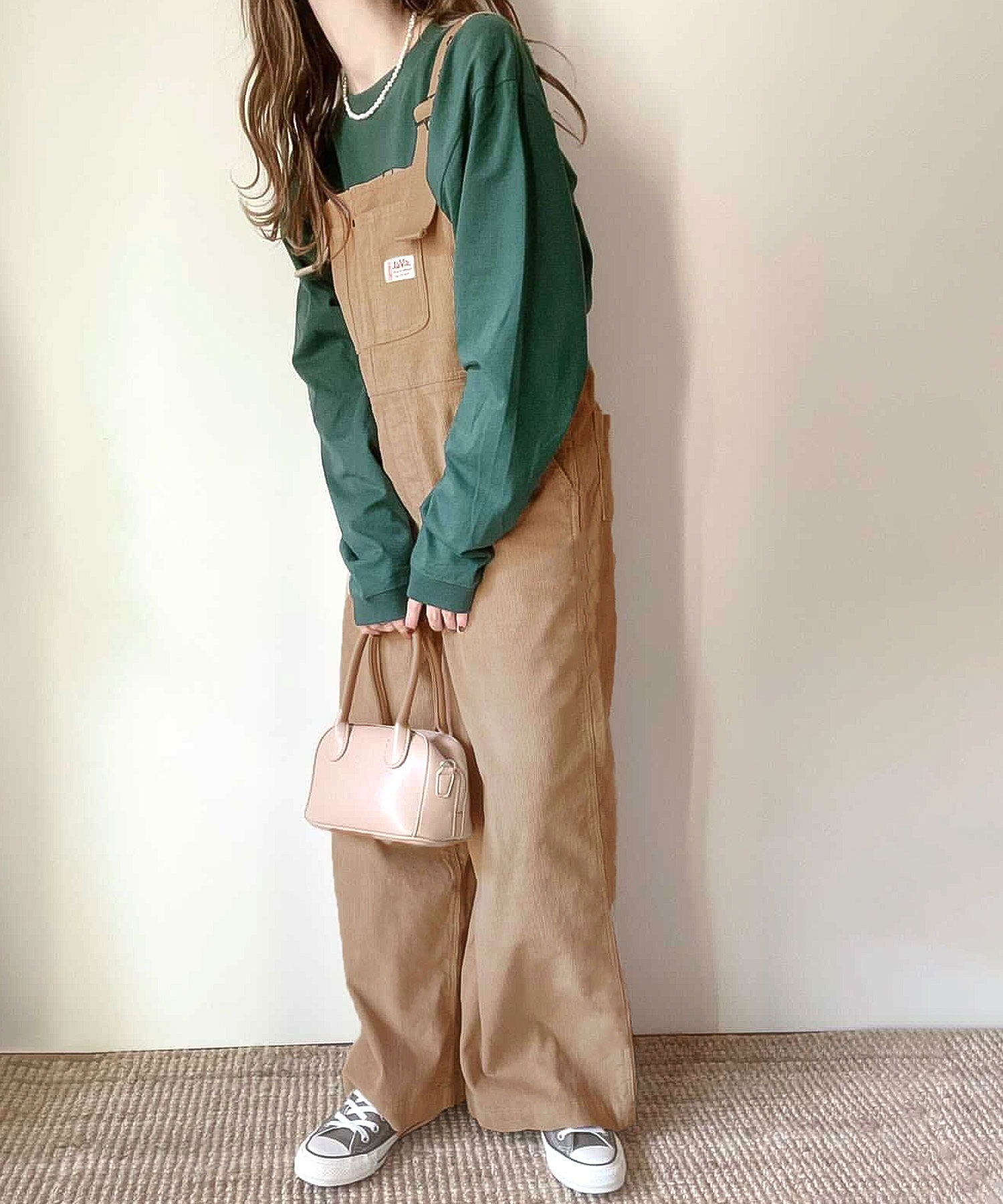 彼のサロペットを借りてビッグシルエットで着るのも可愛い◎