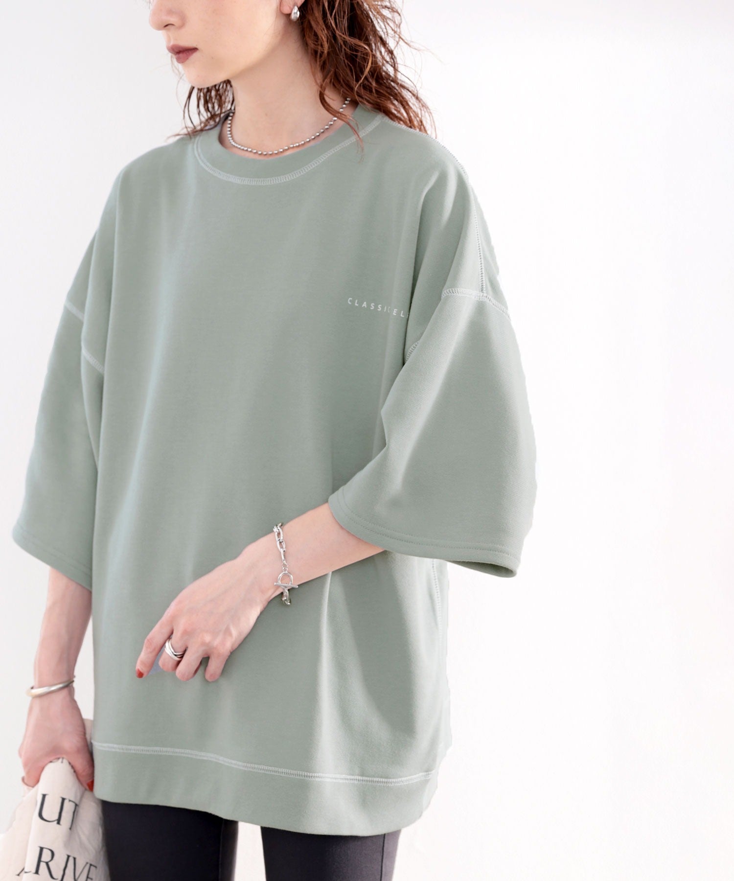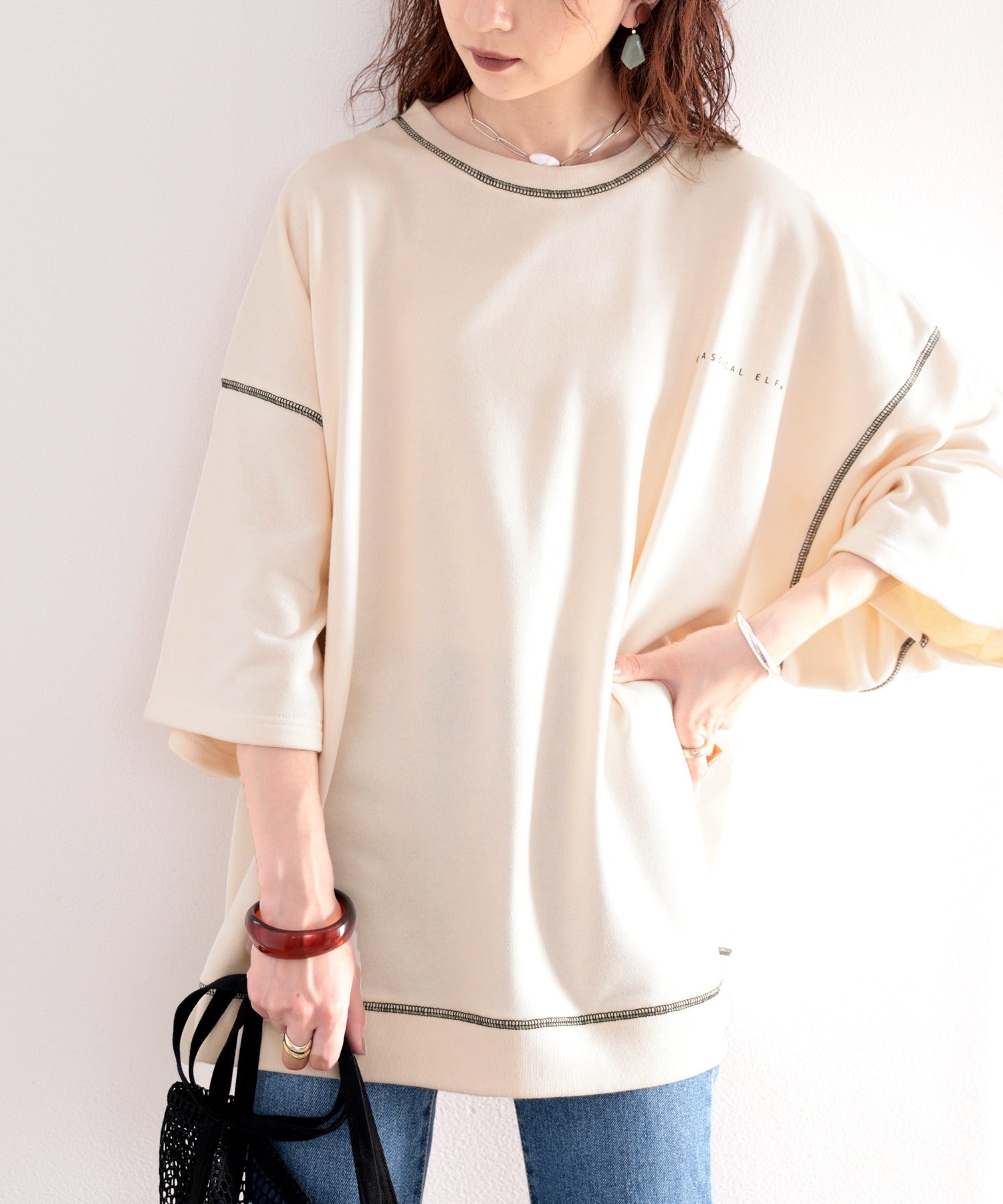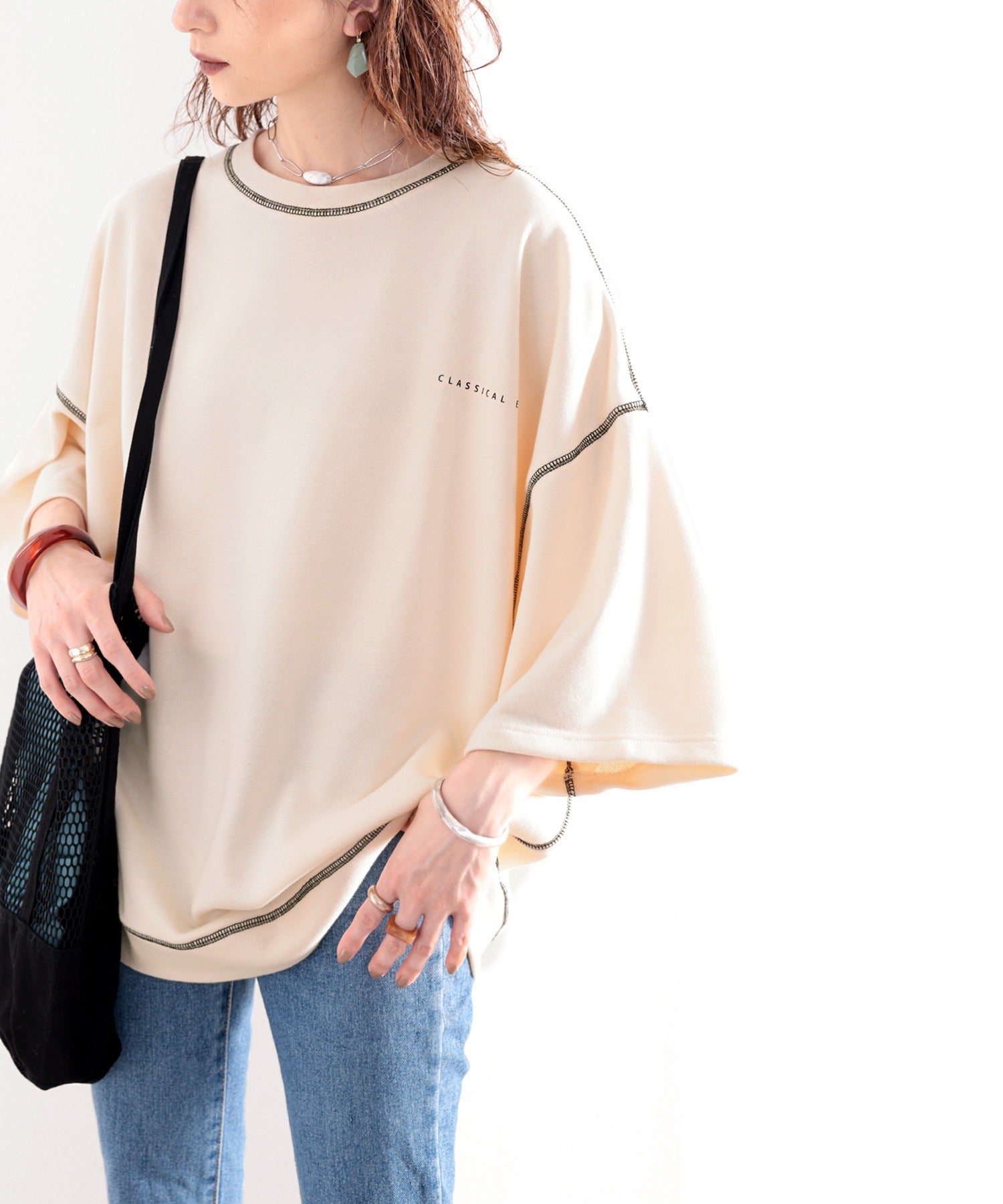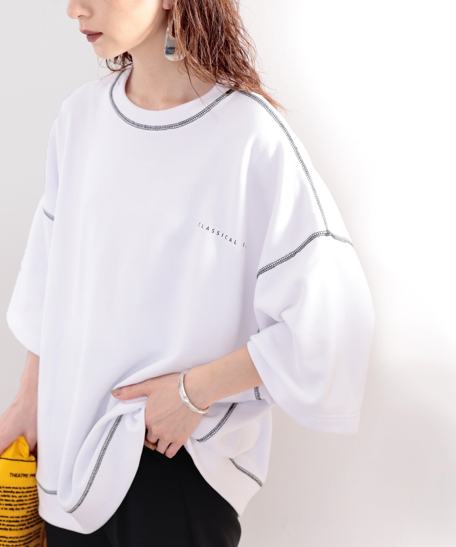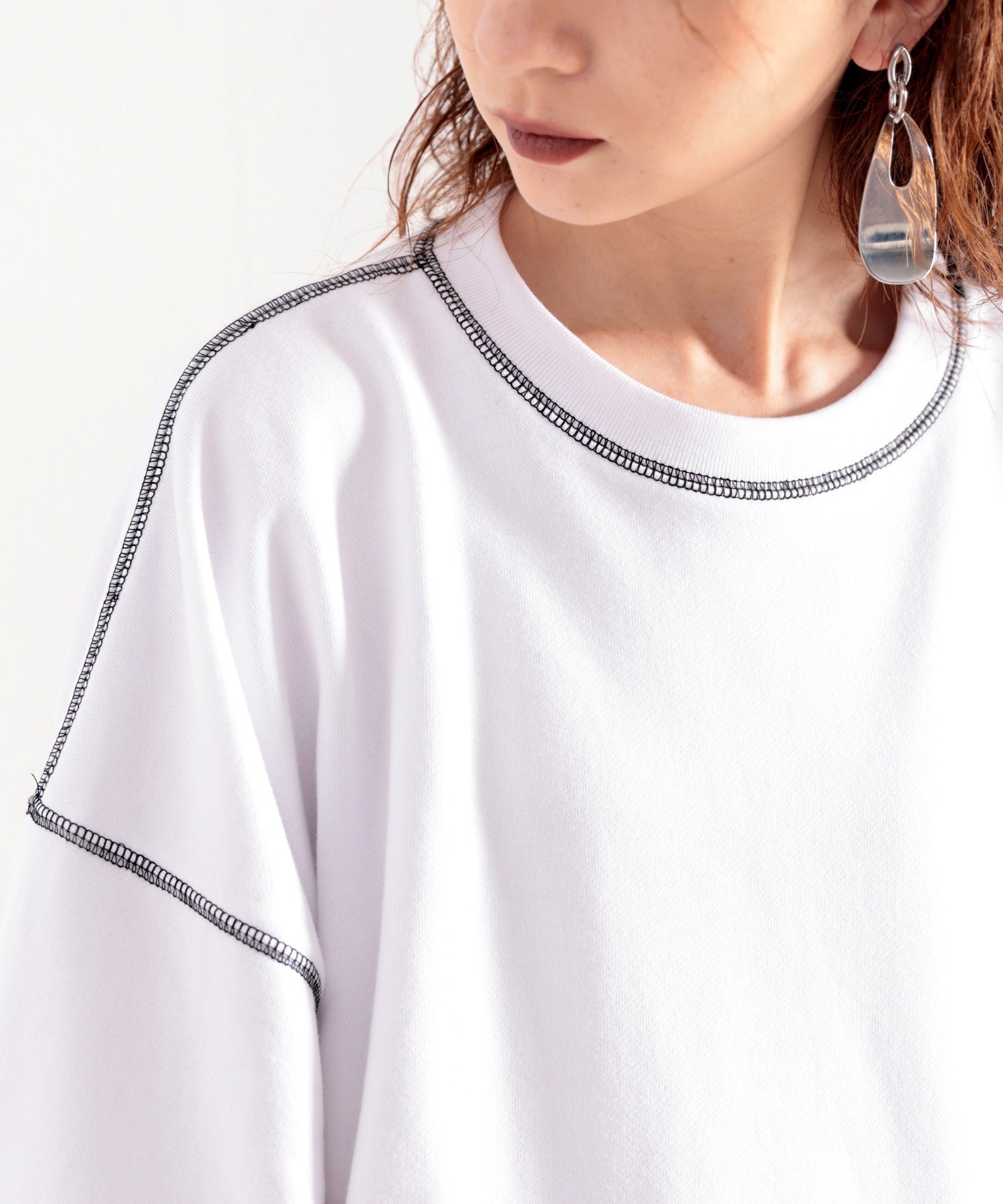 配色ステッチが目を惹く、カジュアルでお洒落な五分袖のスウェットです。