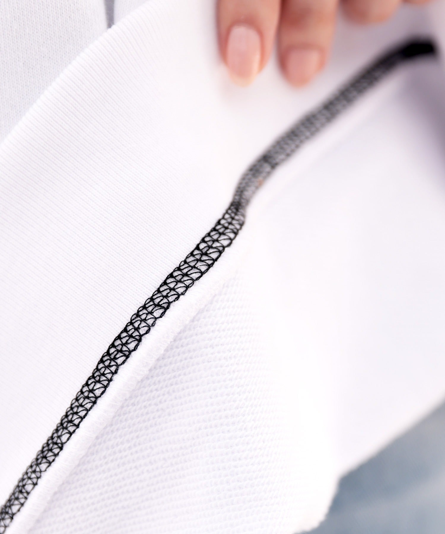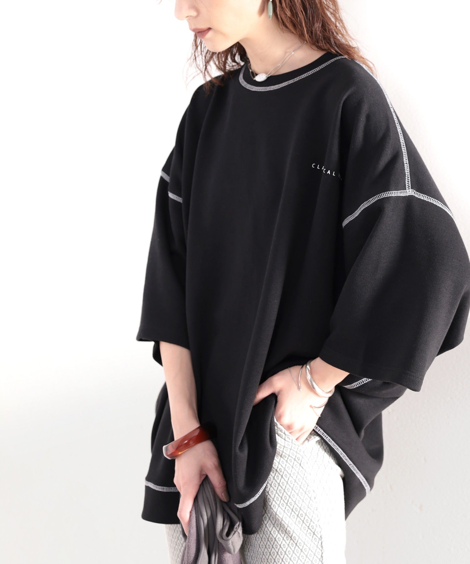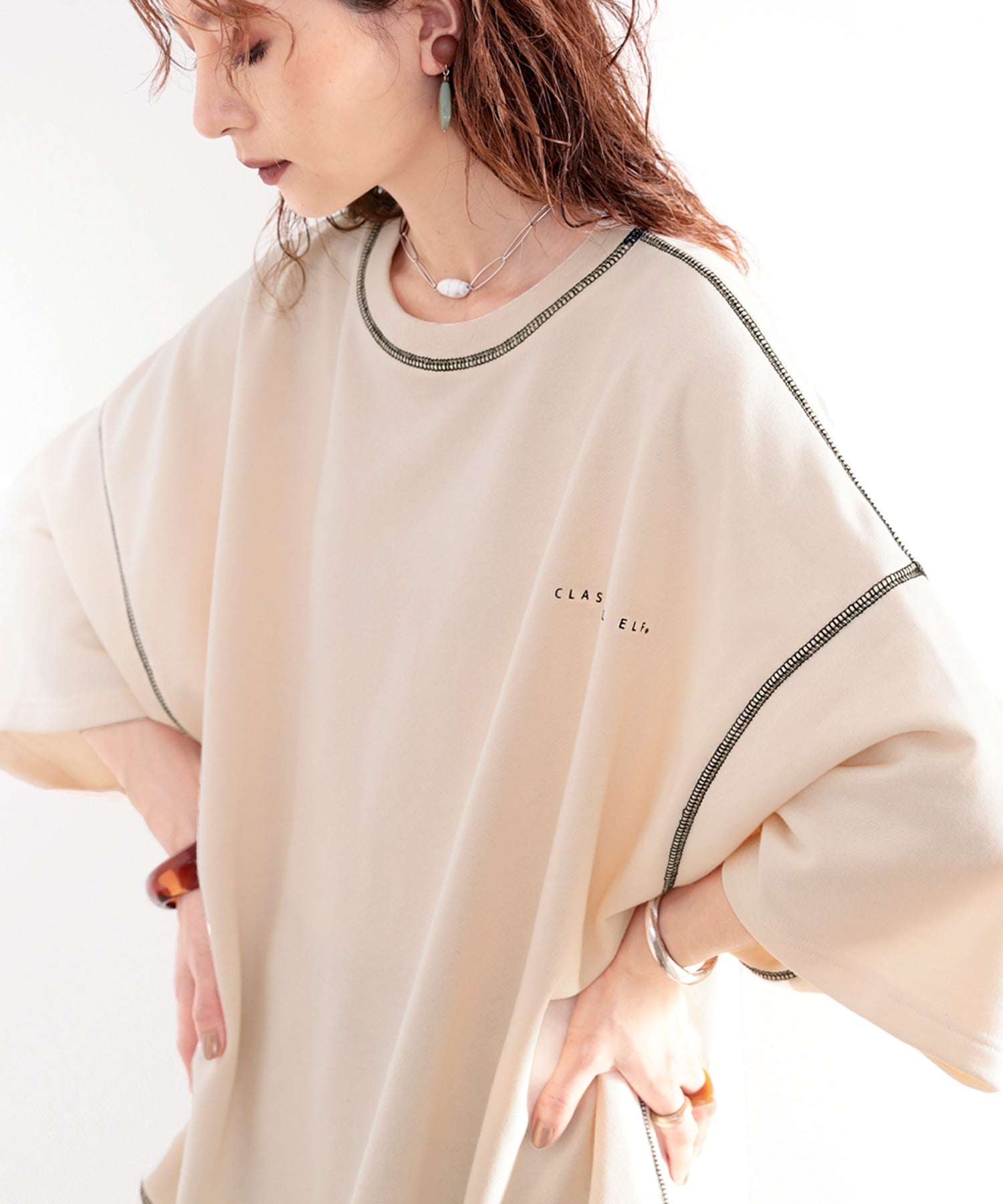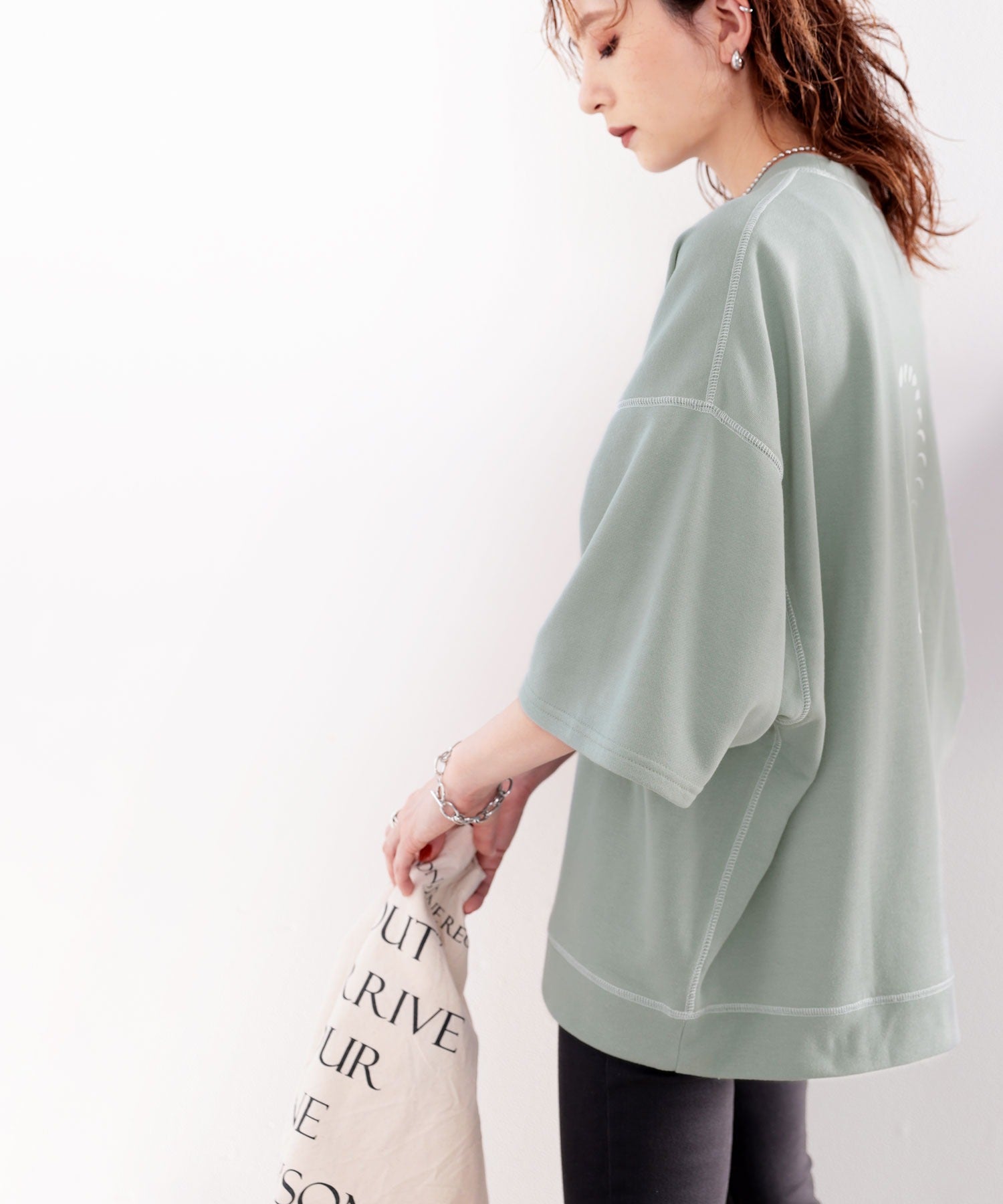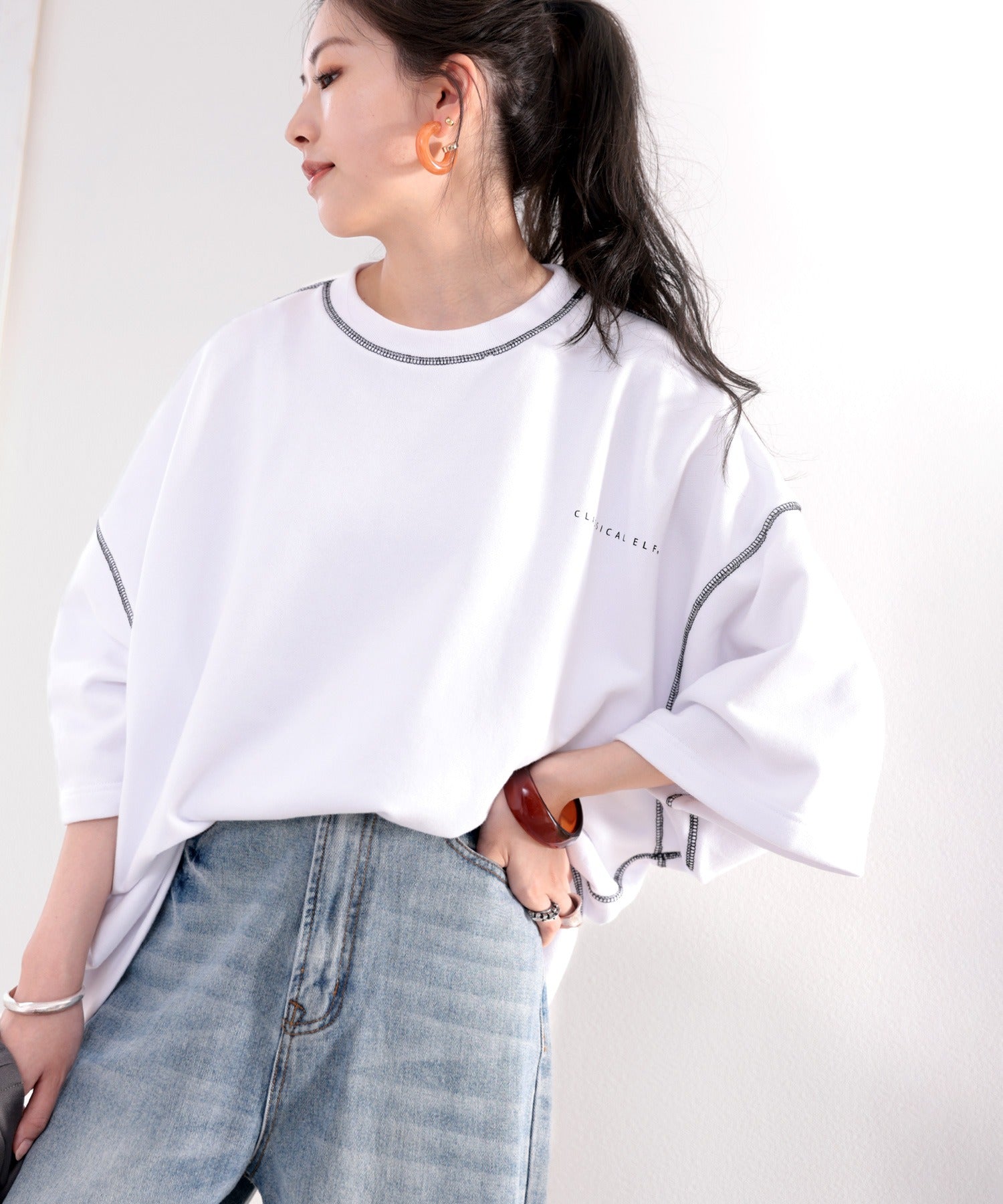 配色ステッチが目を惹く、カジュアルでお洒落な五分袖のスウェットです。