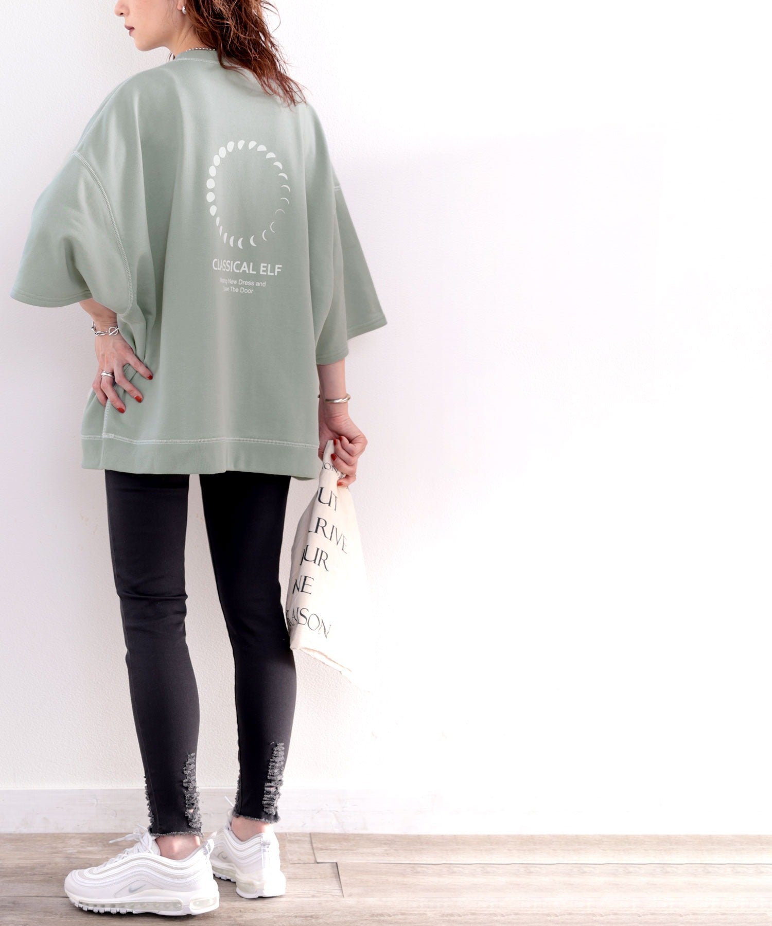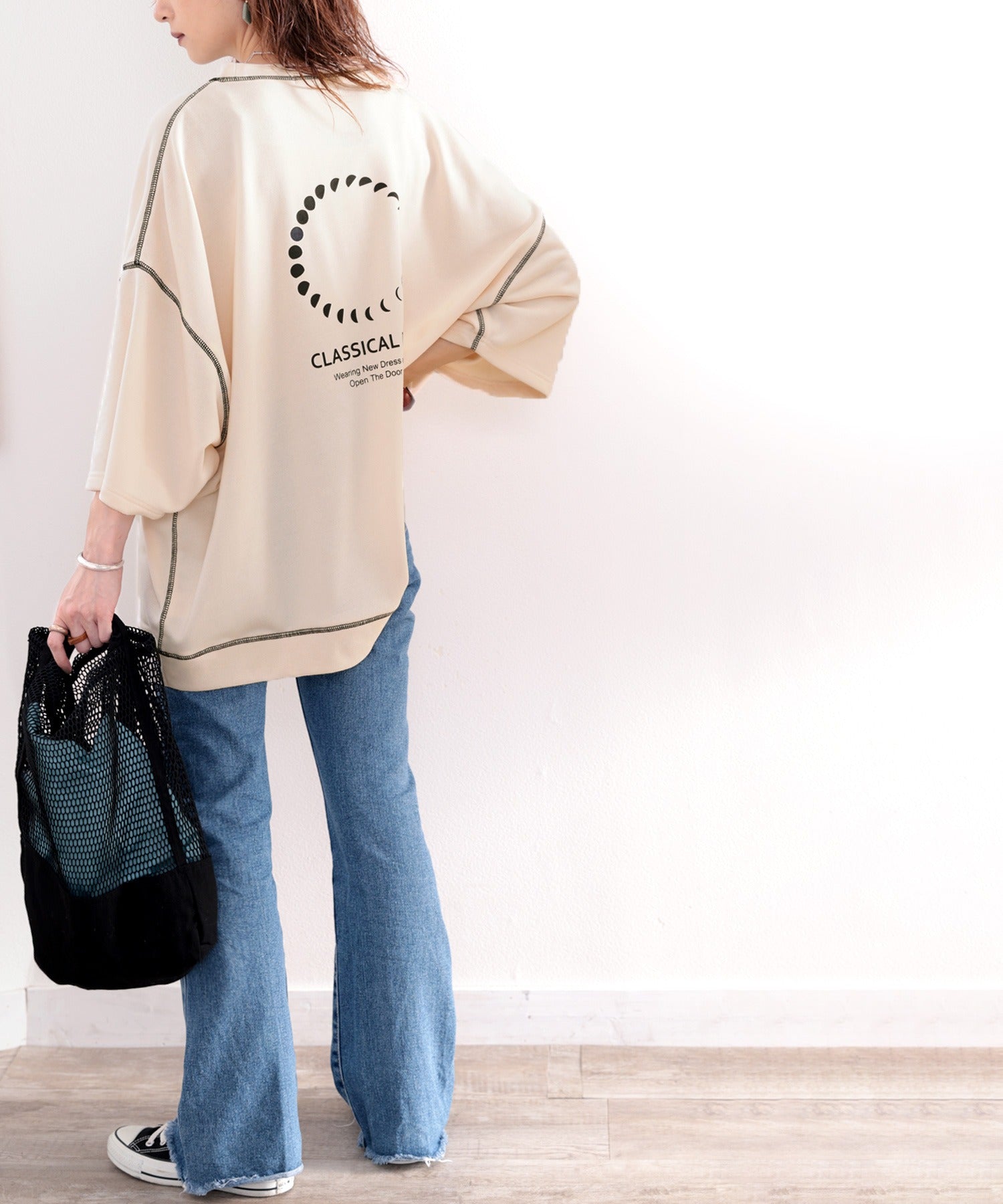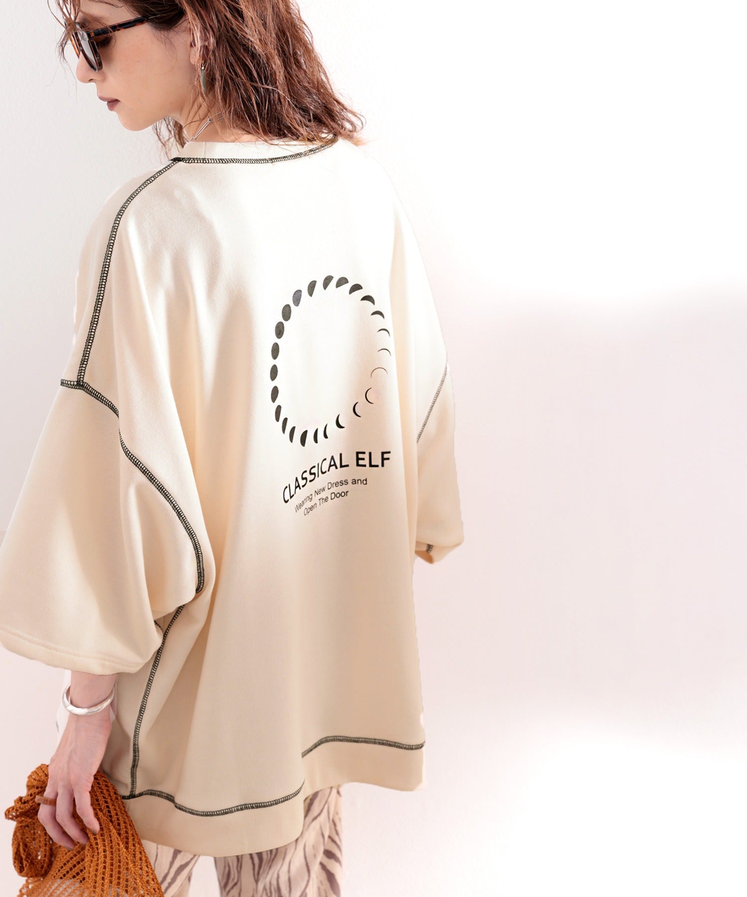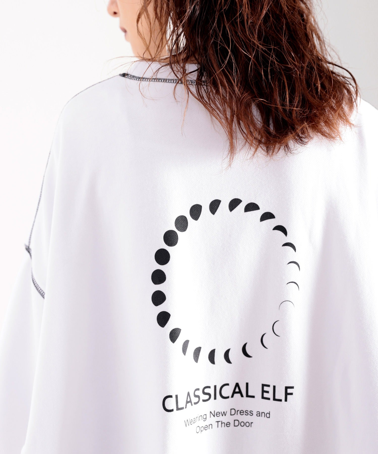 背中に月グラフィック + classicalelfオリジナルプリントと