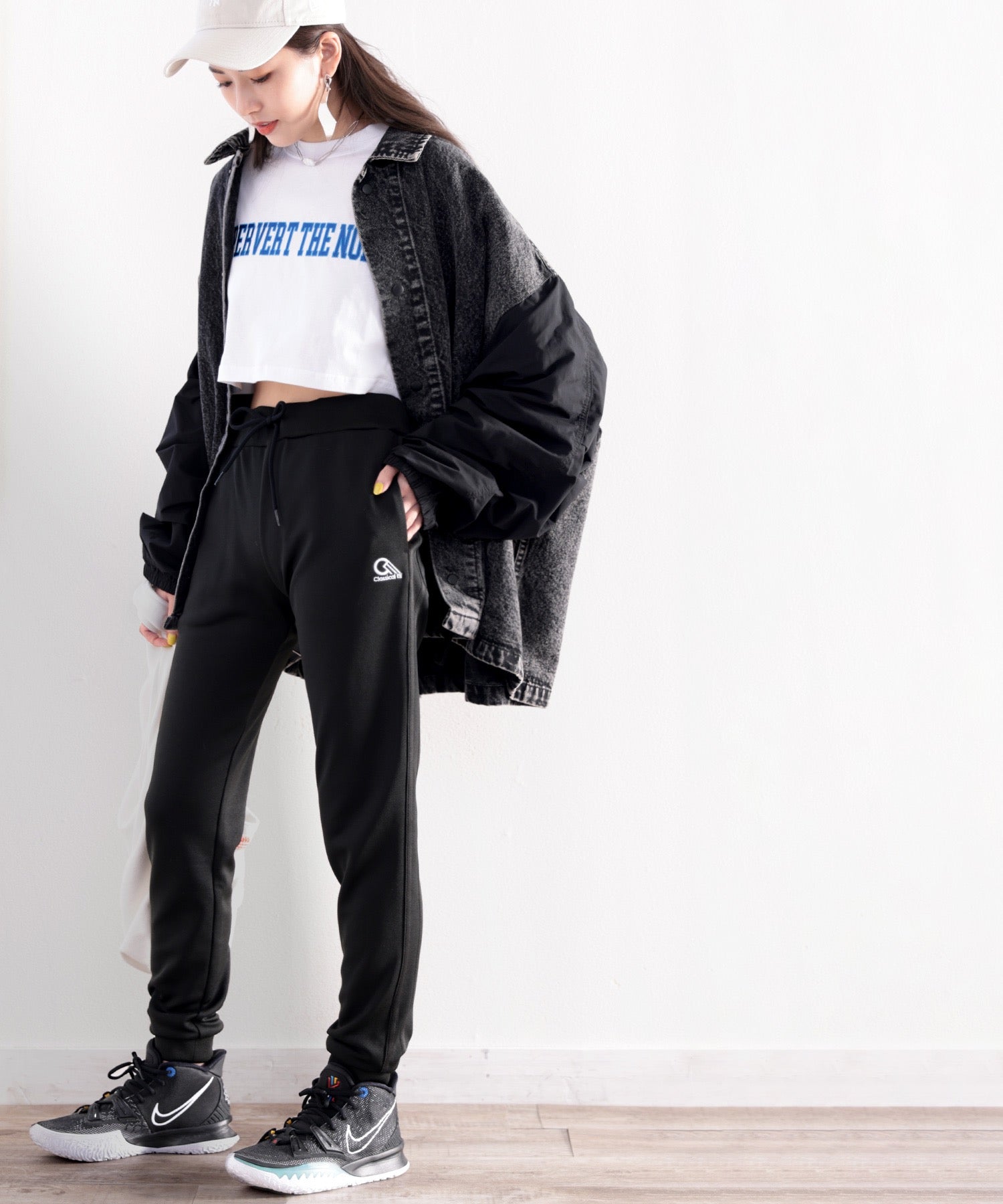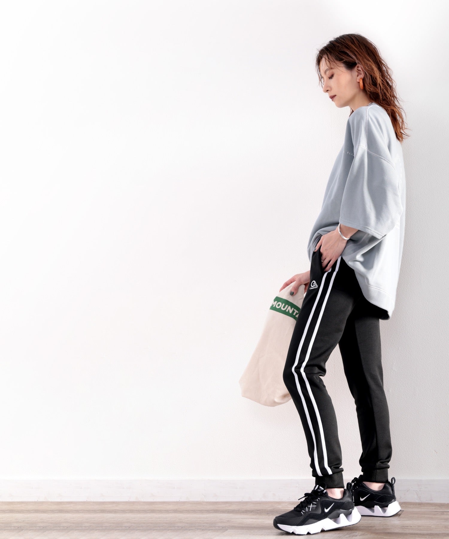 ビッグシルエットトップスと合わせてダボッと大きめシルエットで決めるのもカッコ可愛い。