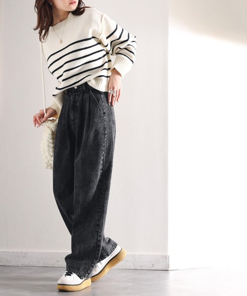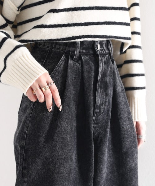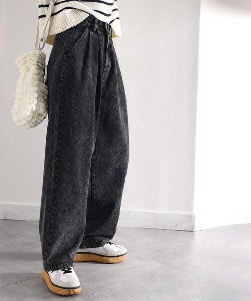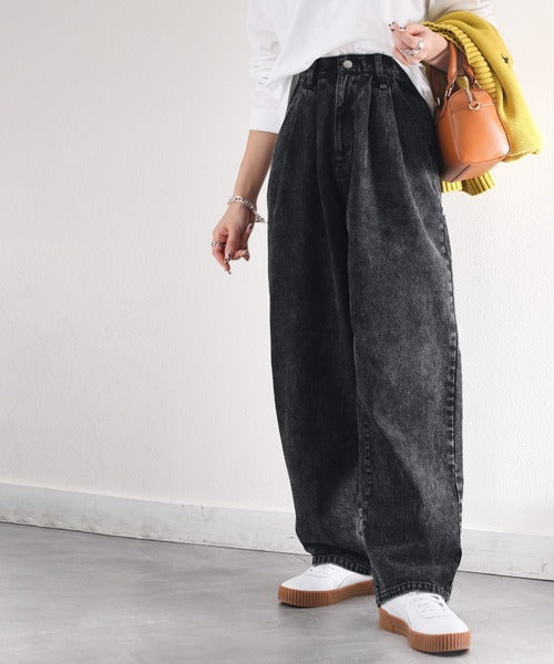 シンプルなデザインながら存在感抜群のワイドテーパードデニム。
