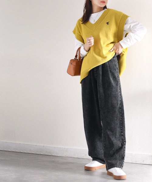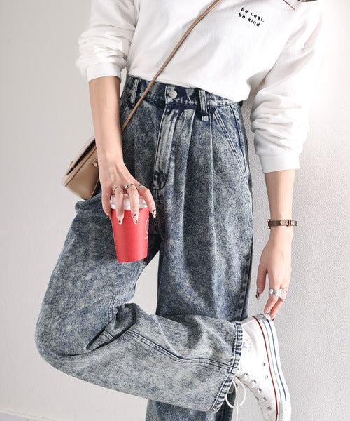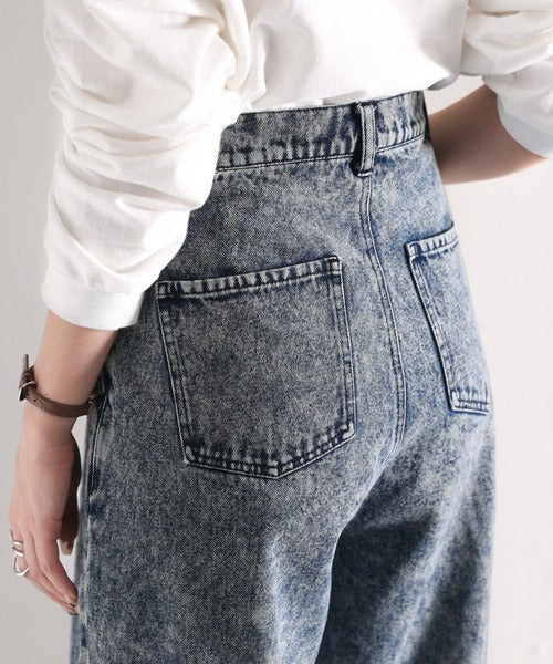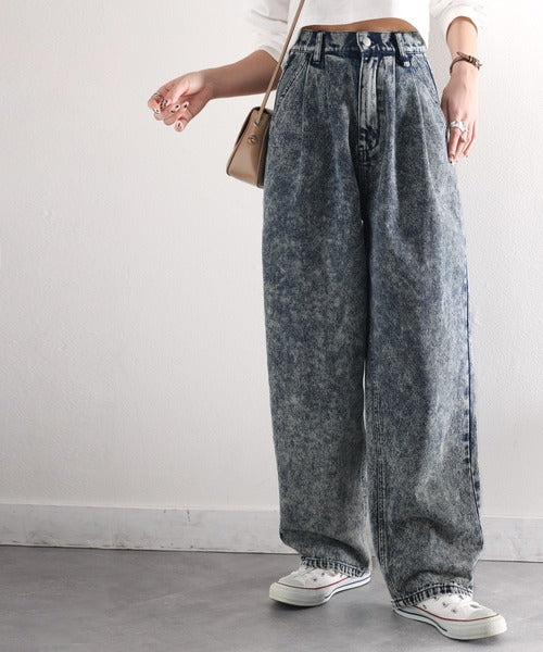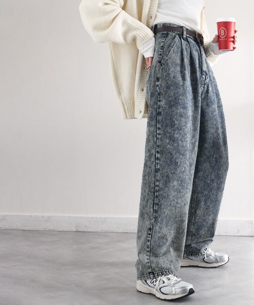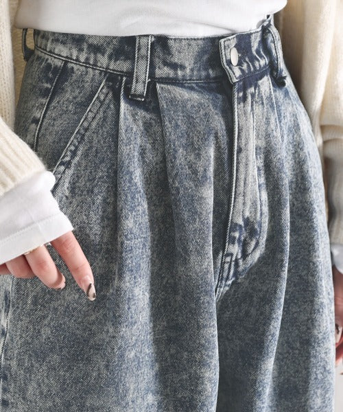 ずるっとメンズっぽ。綿100%ケミカル加工ヴィンテージライクテーパードワイドデニム ce0780069