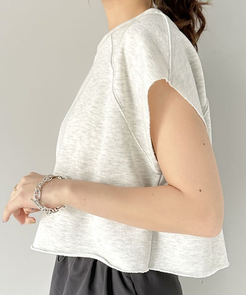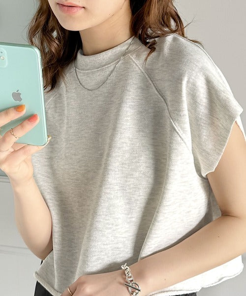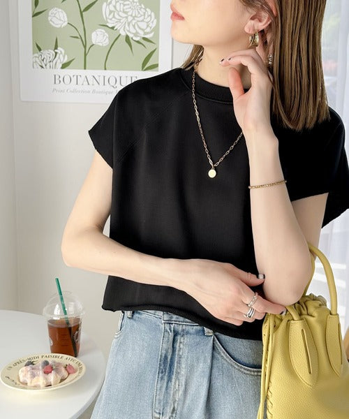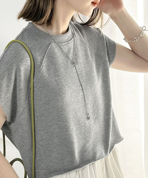 スウェット素材もフレンチスリーブでこなれた印象に◎