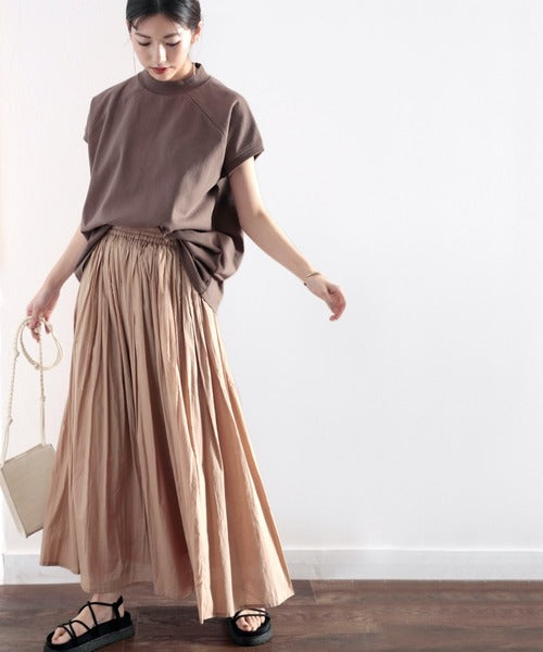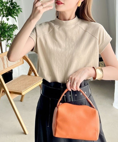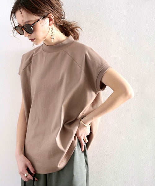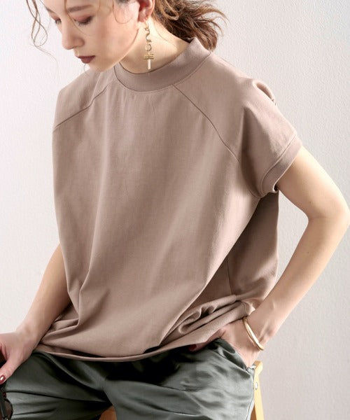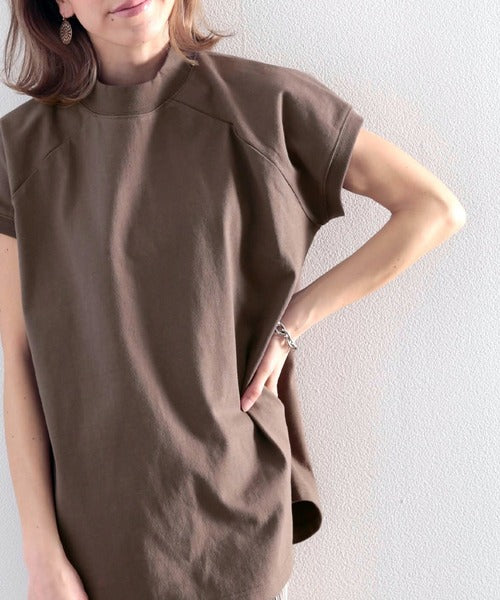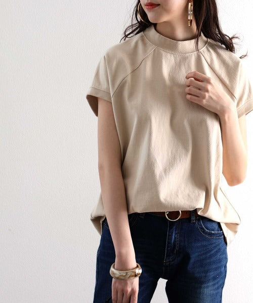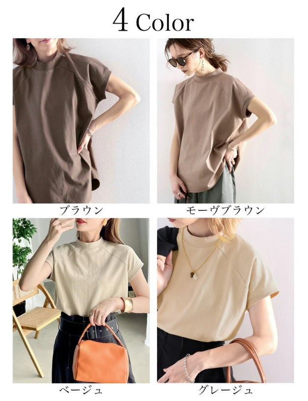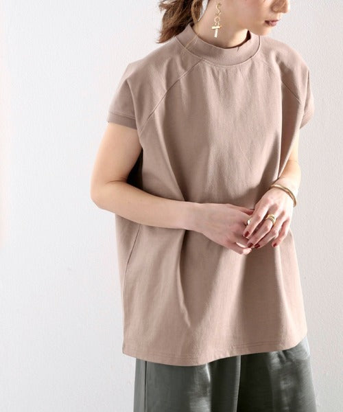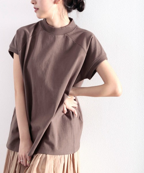 季節の変わり目のインナーとしてもモックネックでさりげないおしゃれを楽しめる。