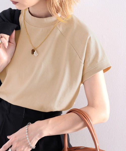 綿100%USAコットン、大人のモックネックラグランTシャツ。 ce0785015