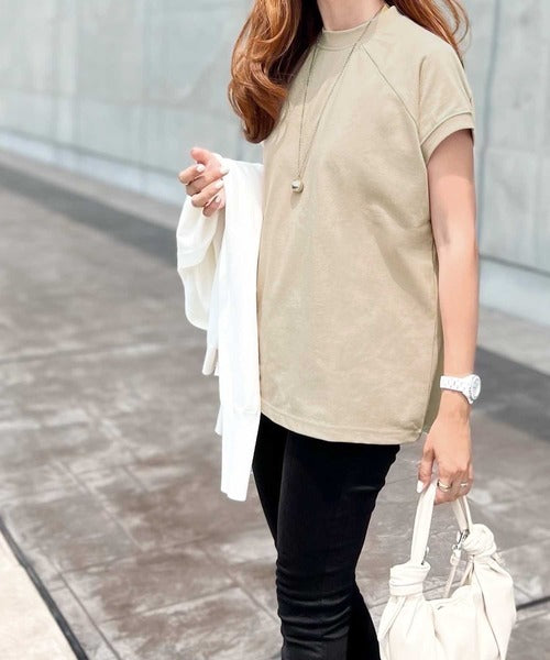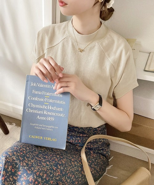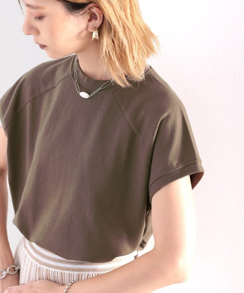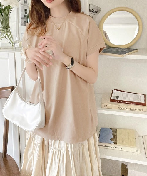 首元から袖にかけて斜めに切替の入ったラグランスリーブは