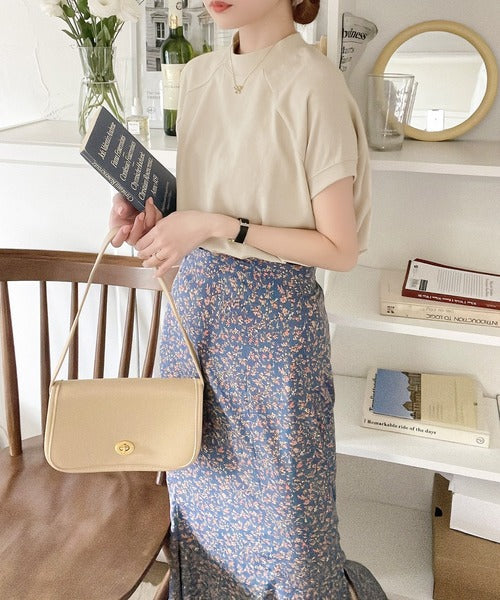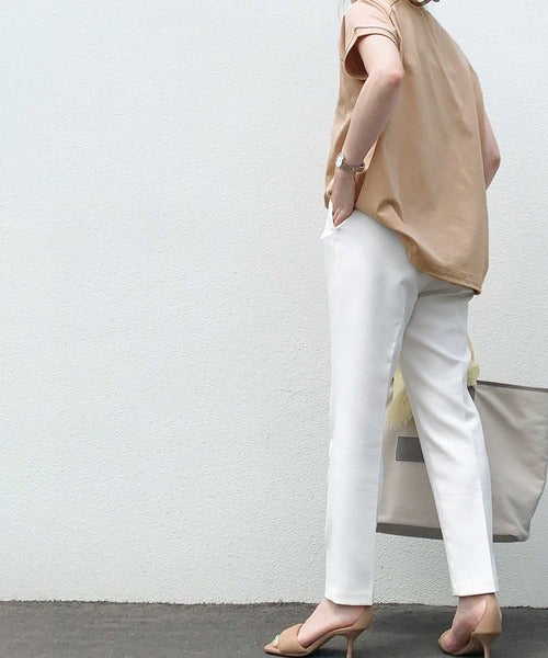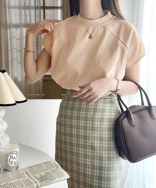 肩に入った切替ラインとフレンチスリーブの丈感で、二の腕もすっきり華奢見え。
