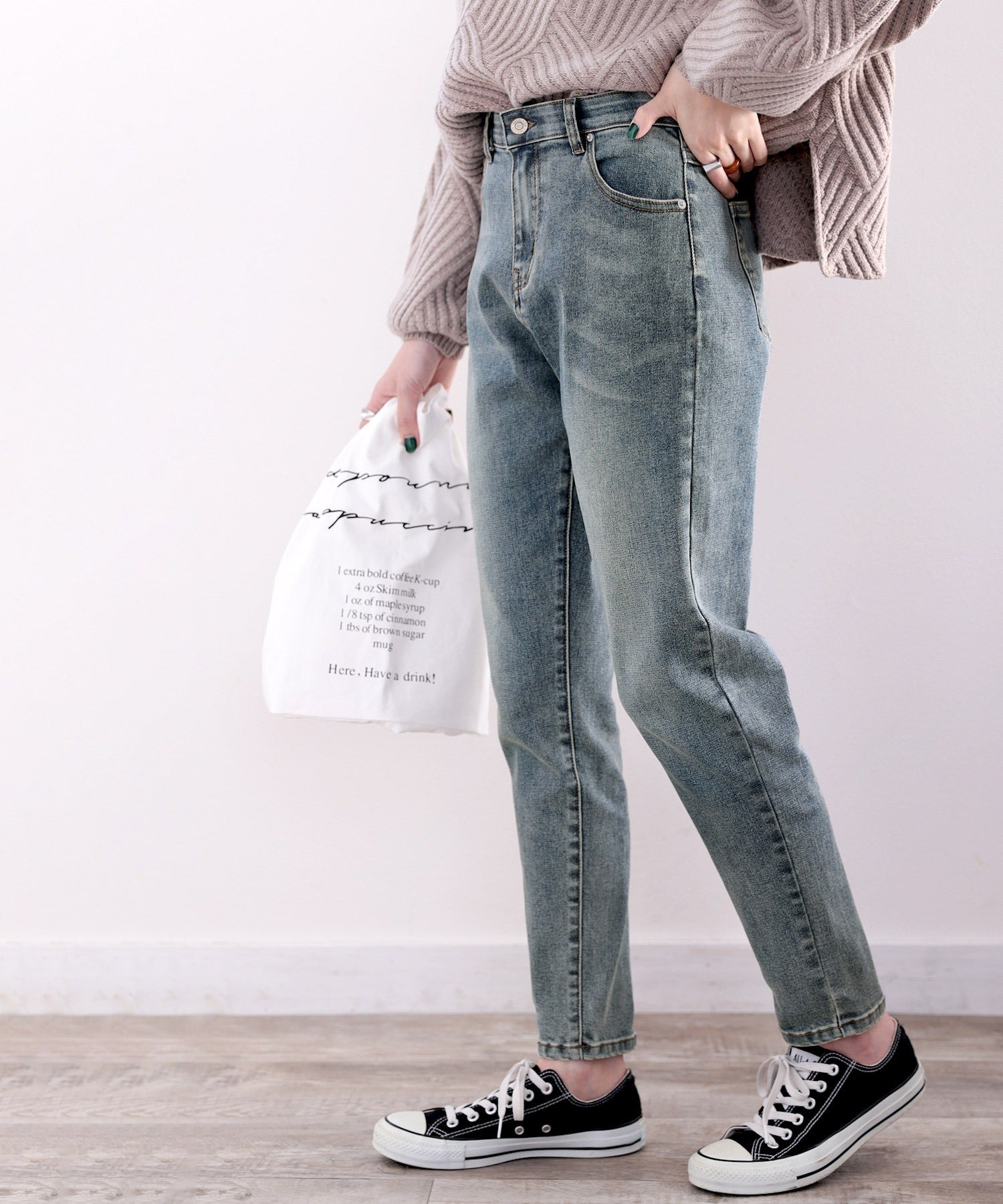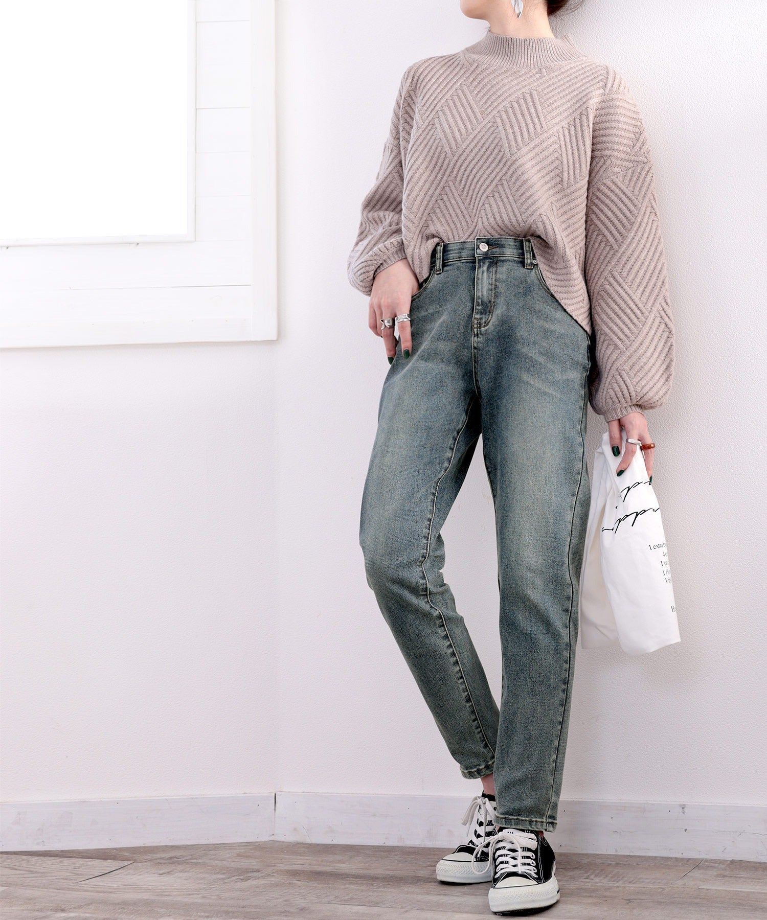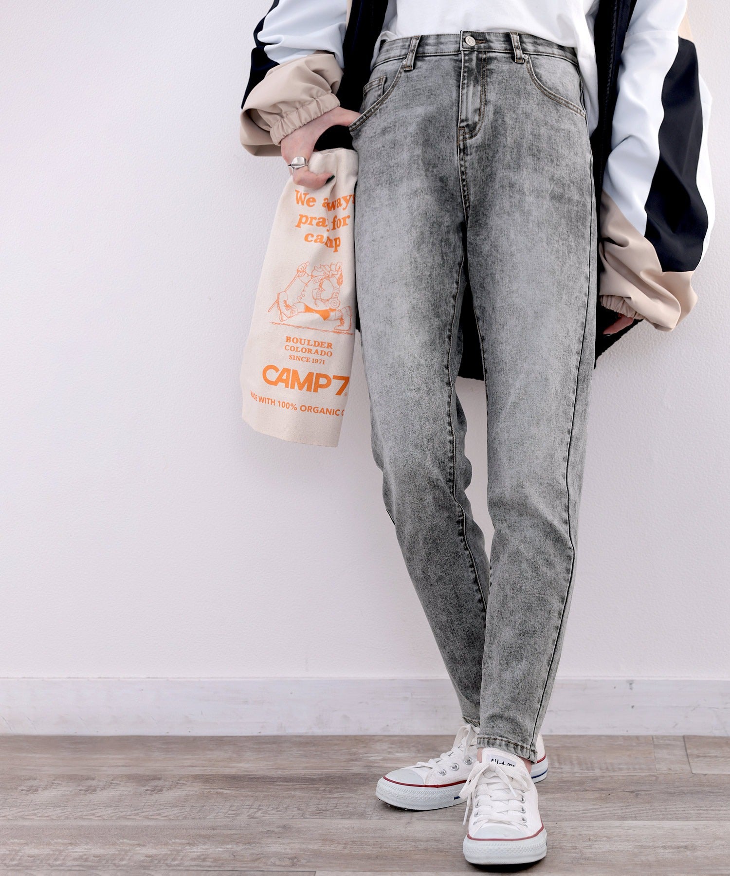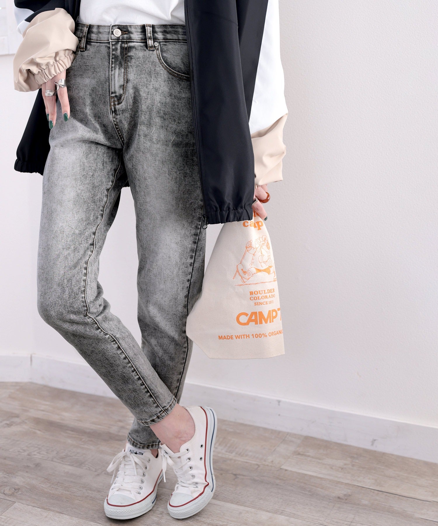 実はウエストゴムなんです!ゆるっと美脚、ストレッチケミカルテーパードデニムパンツ ce0900002