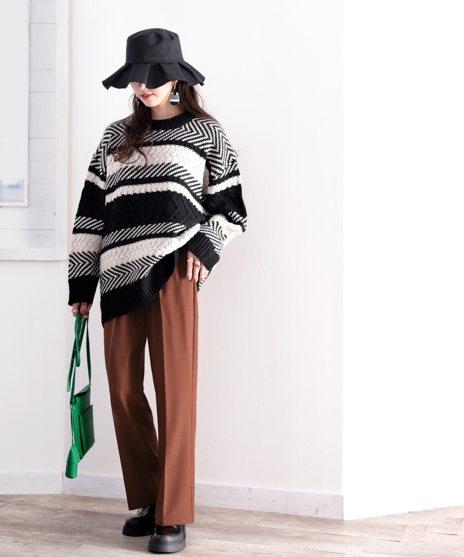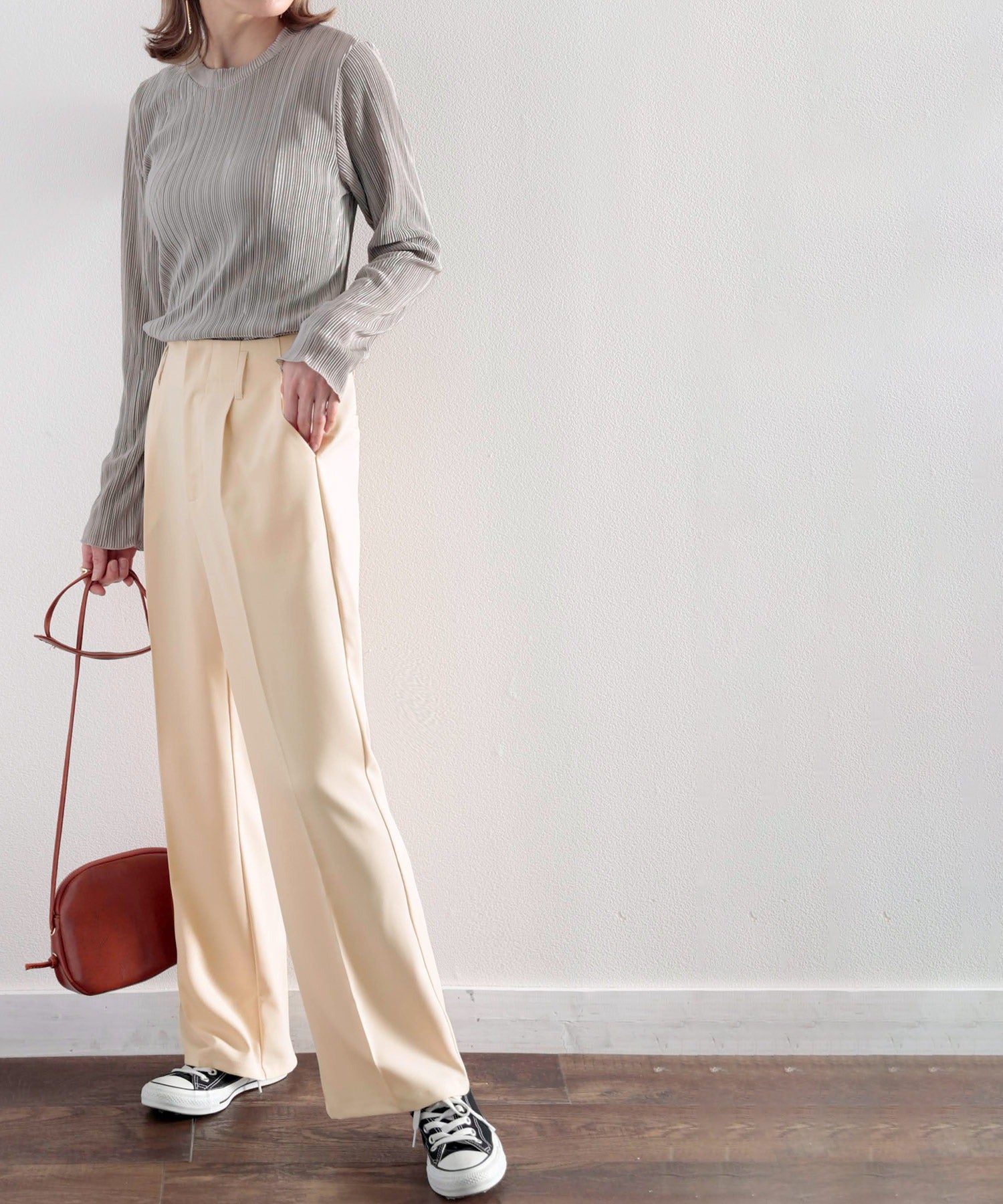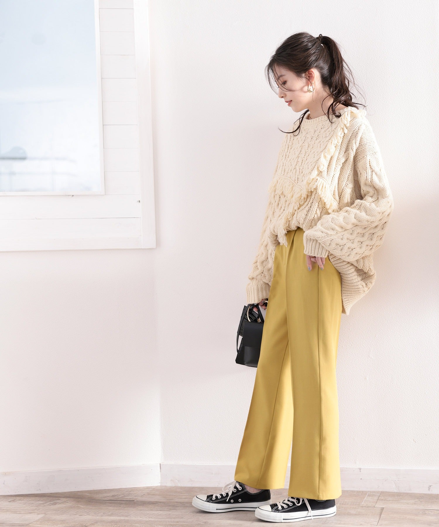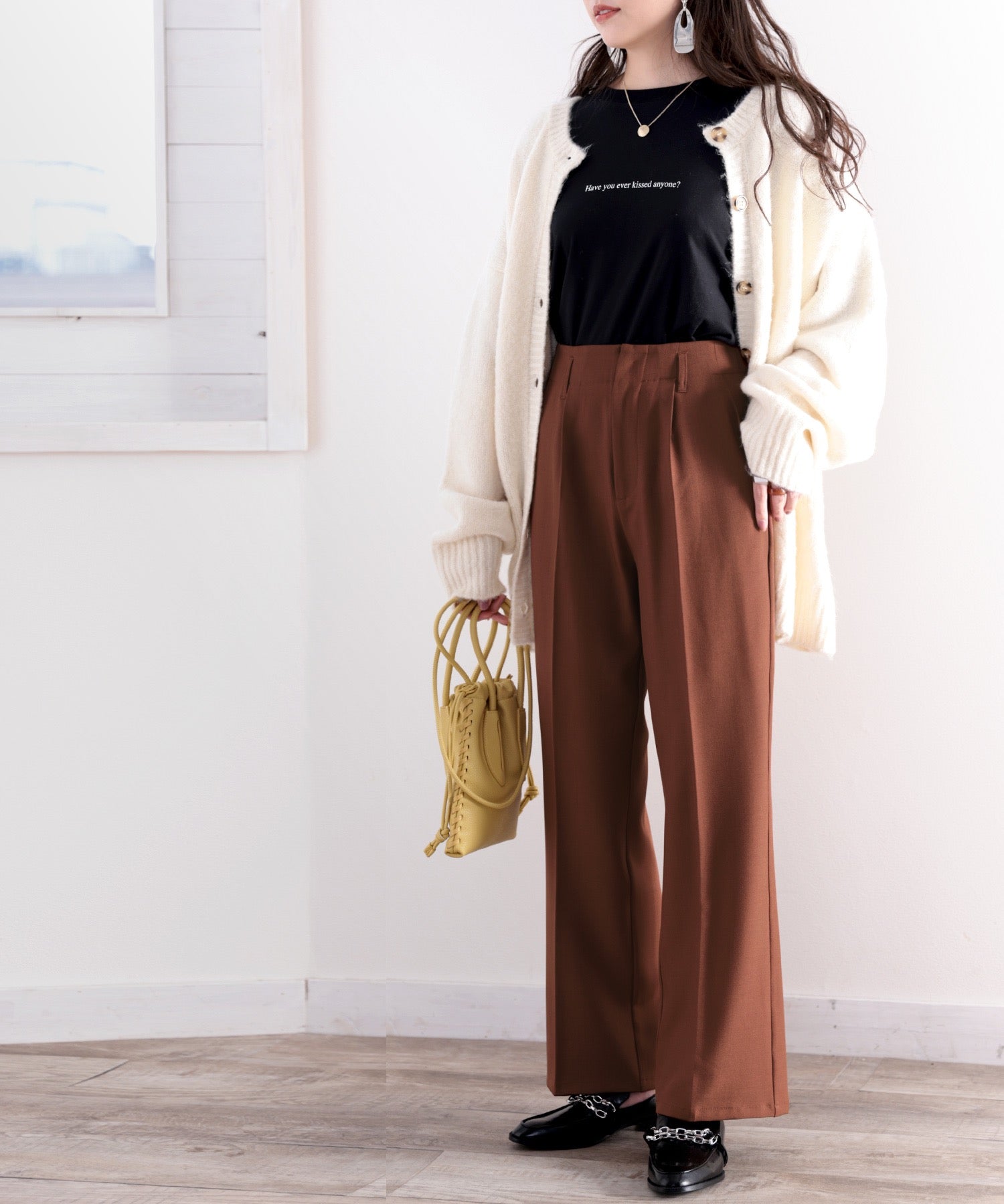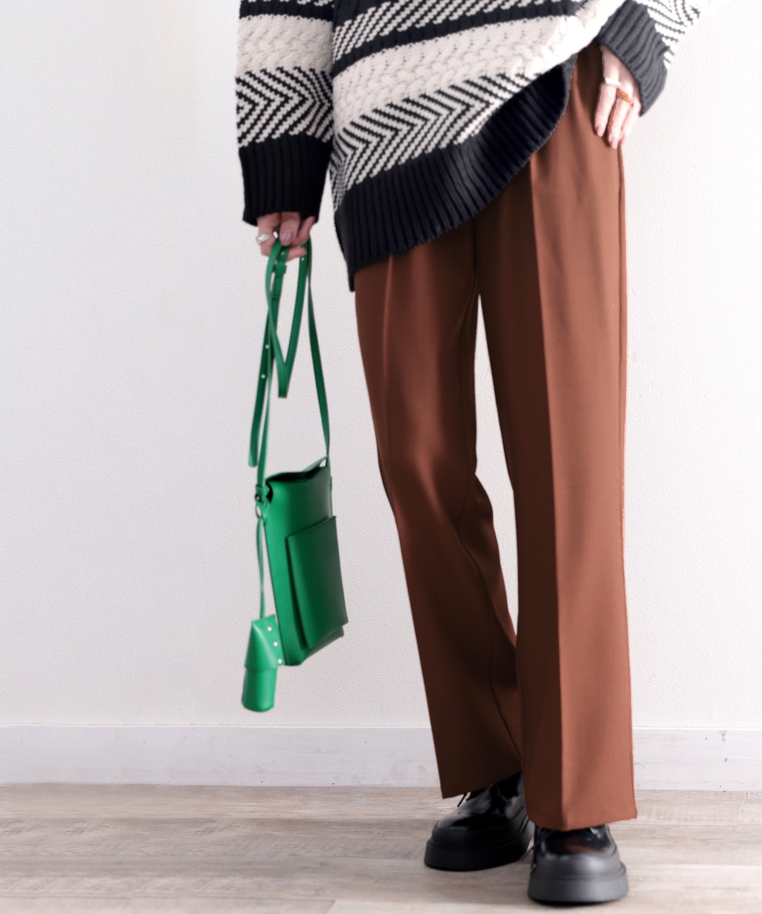 ゆったりニットやカジュアルなアイテムと合わせても綺麗にスタイリング出来ます。