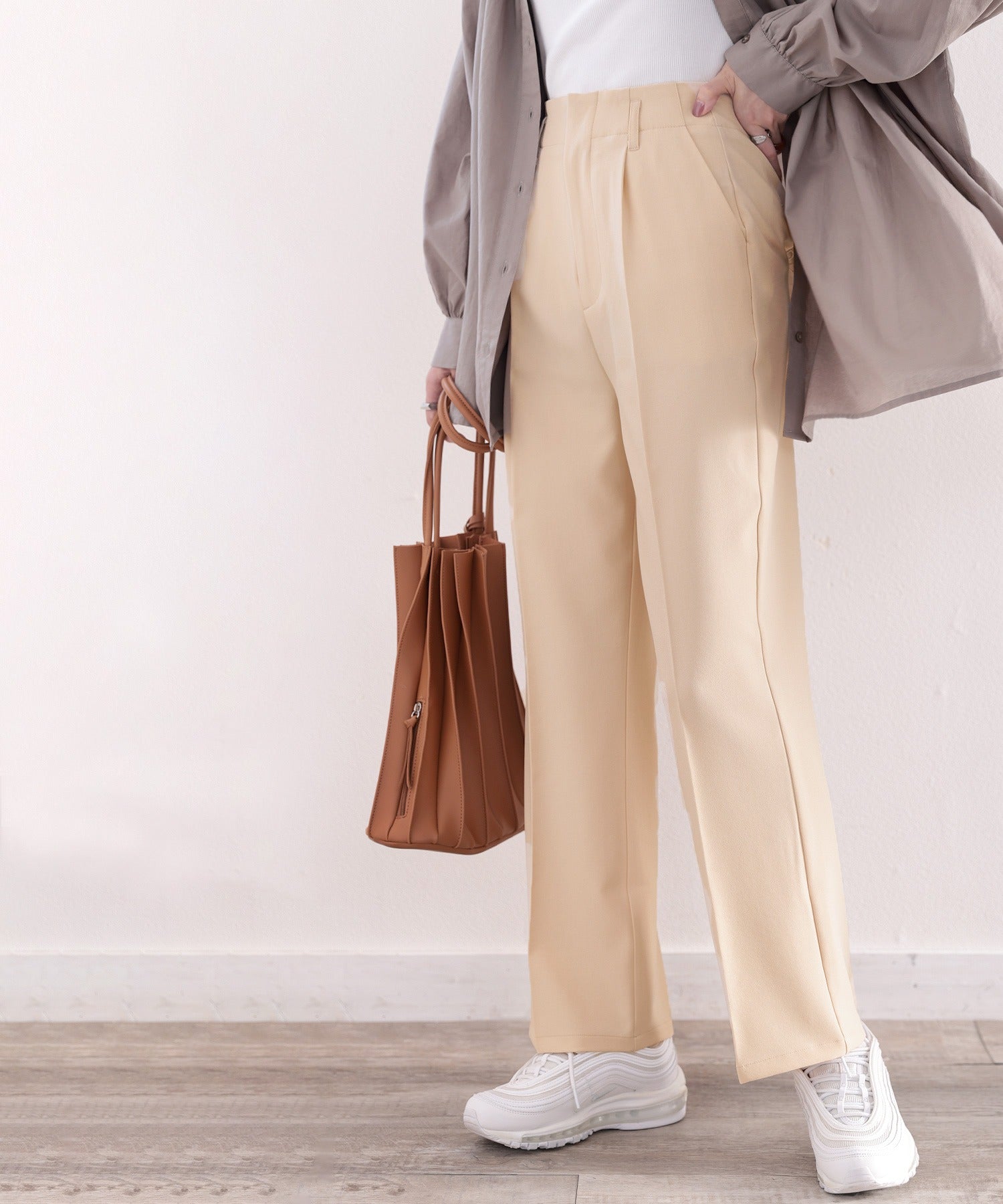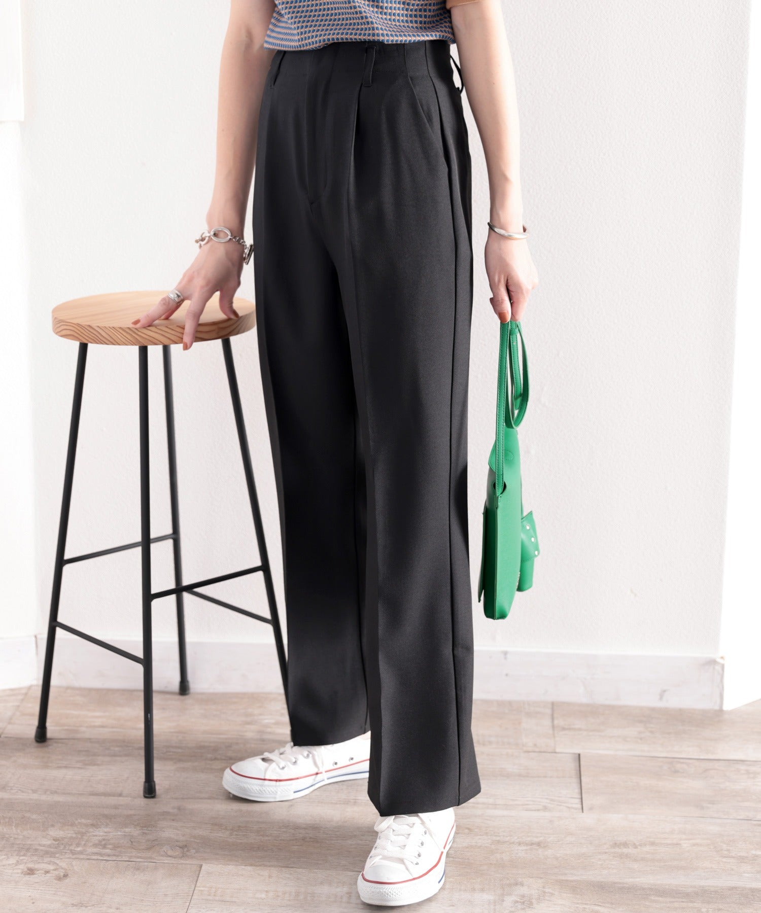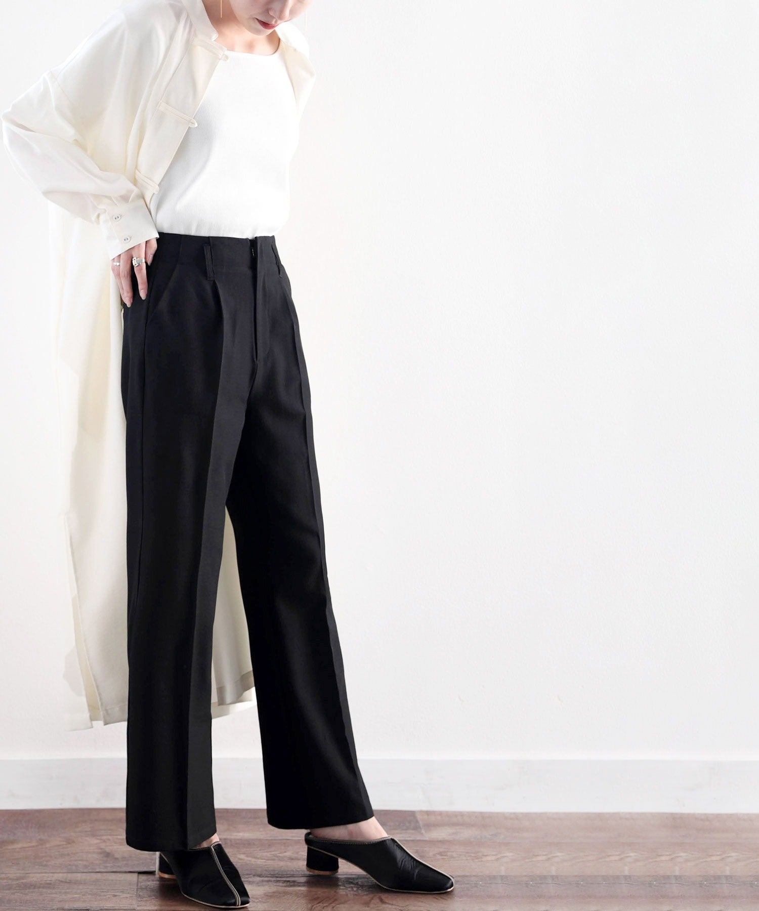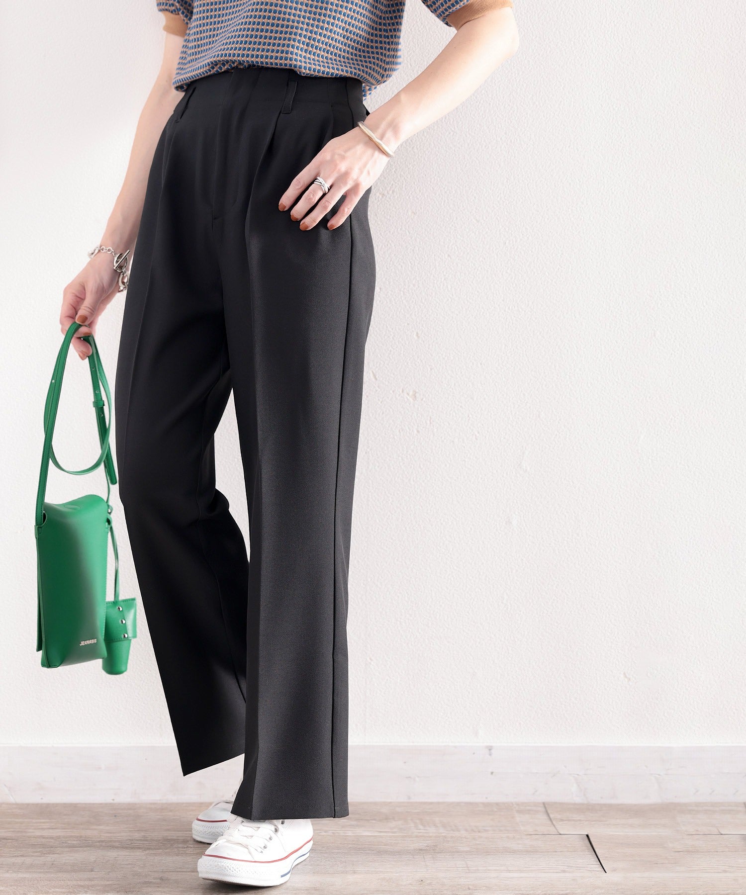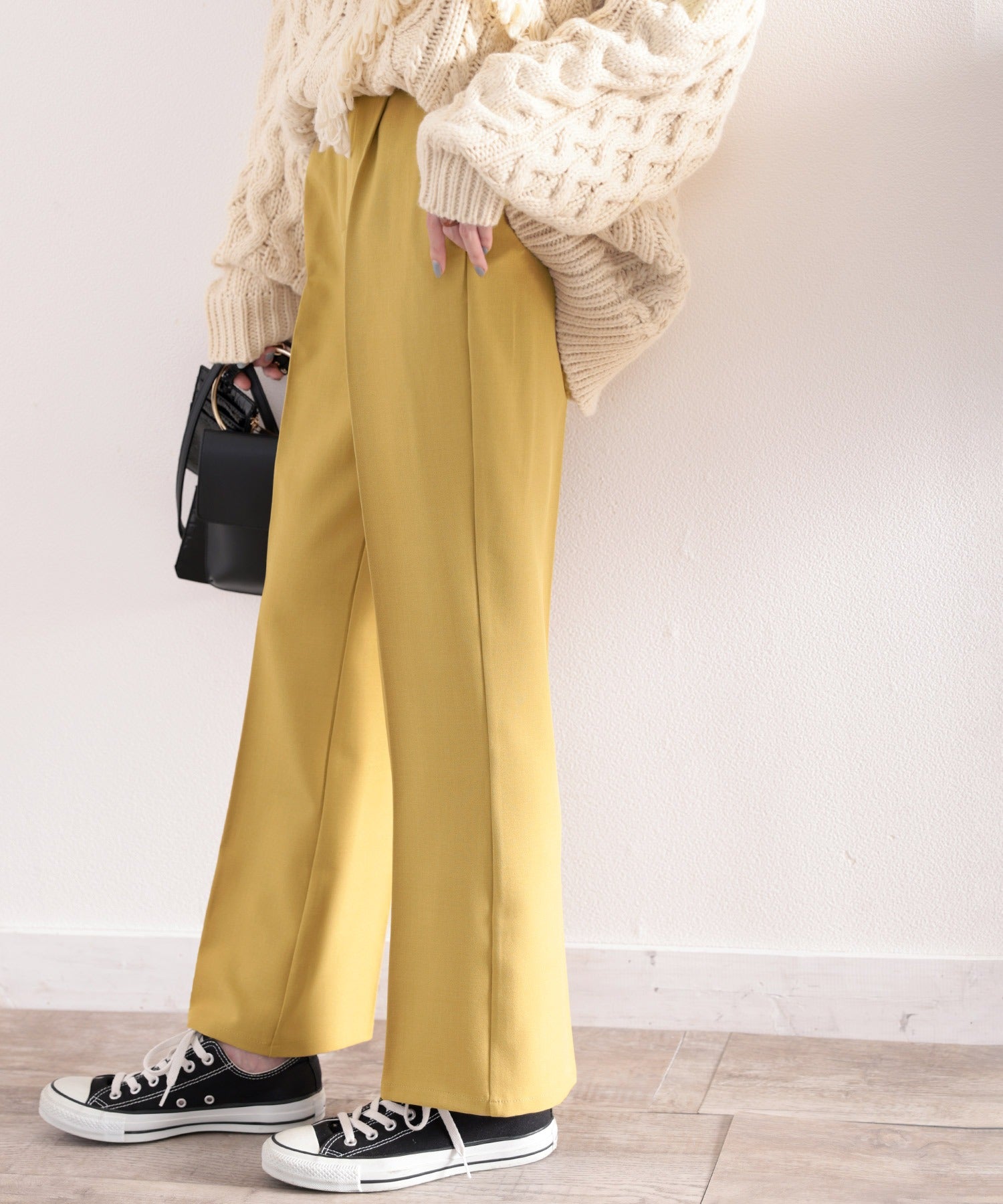 リネンライク センタープレス 無地 フレアパンツ スラックス(フルレングス) ce0940003
