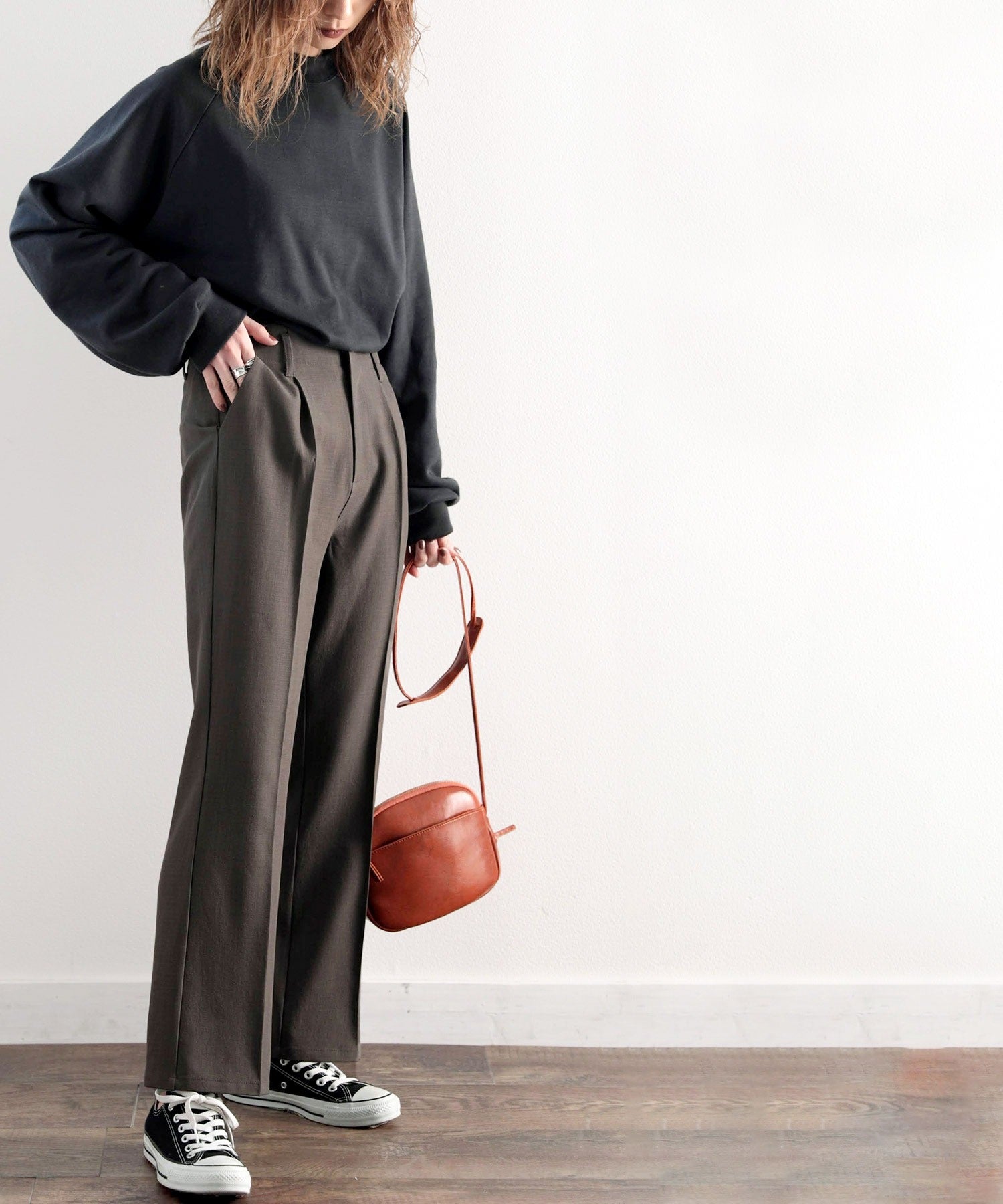 美シルエット&センタープレスで細見せ効果のある、優秀なワイドボトムスラックスです。