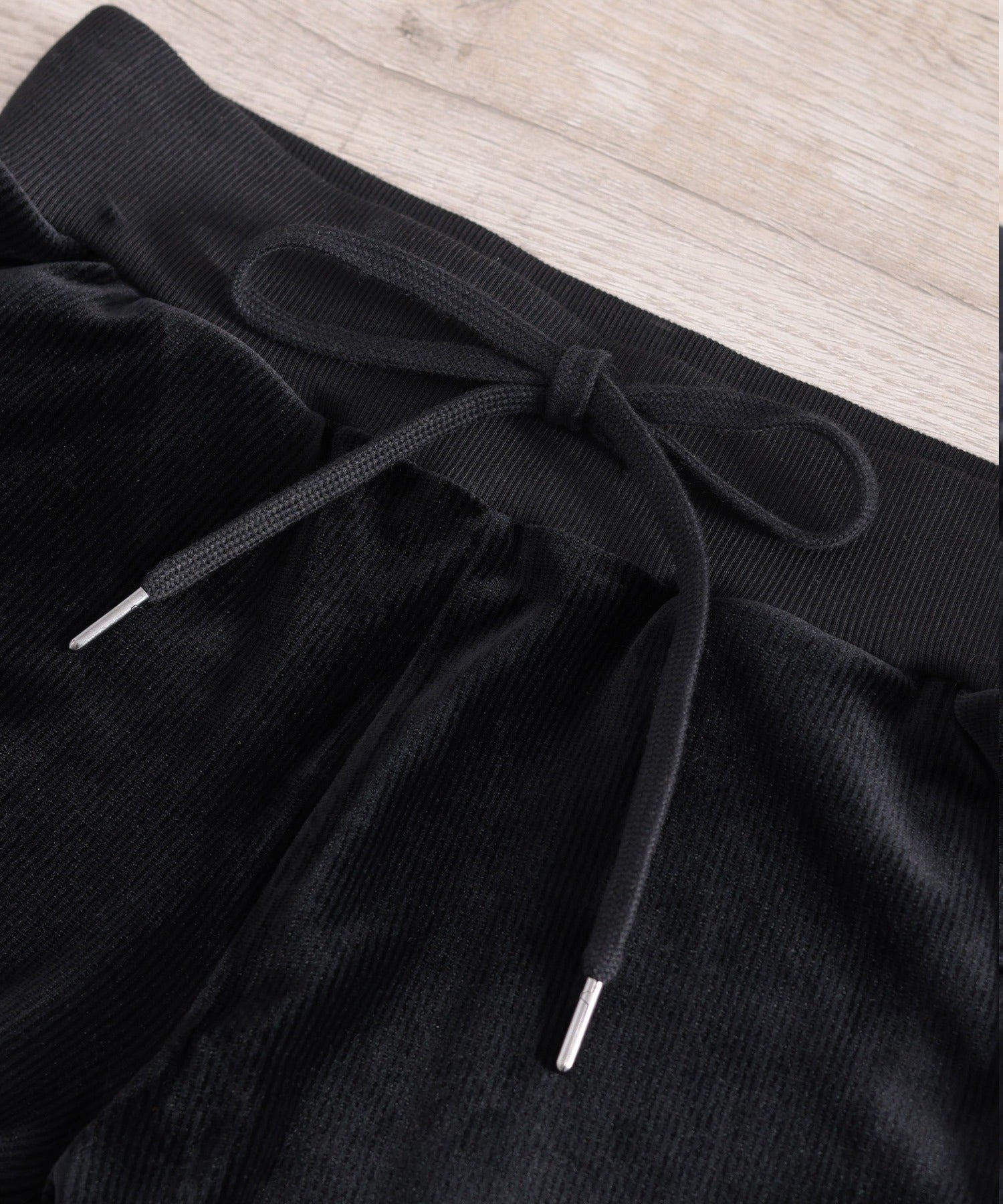 ストレッチのある細コールのベロア素材で滑らかな着心地がくせになりそう。